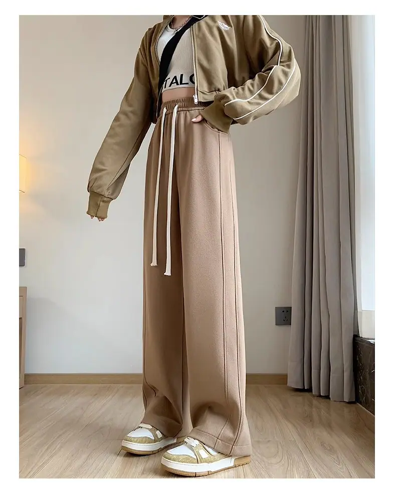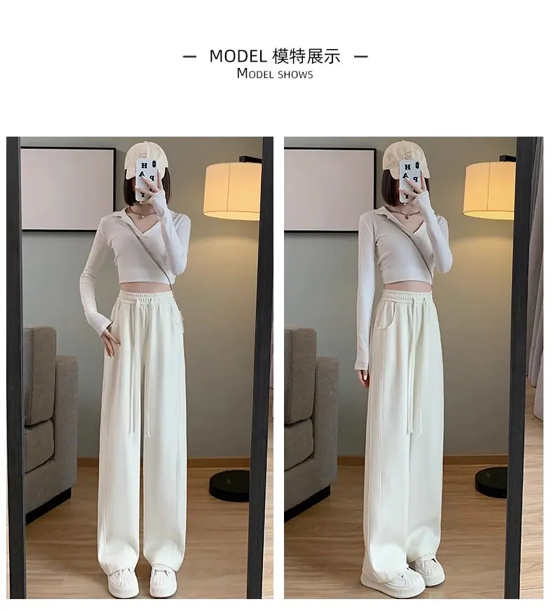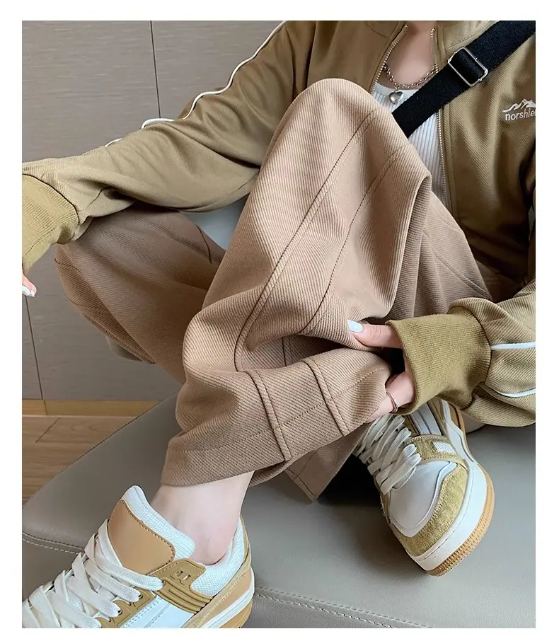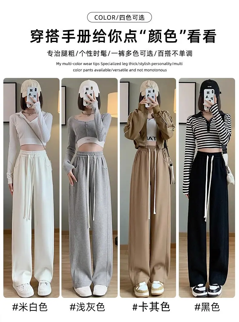 Pantalones Deportivos Grises para Mujer Primavera y Otoño Delgados Cintura Alta Sueltos Rectos Tipo Banana para Correr Pierna Ancha Casual