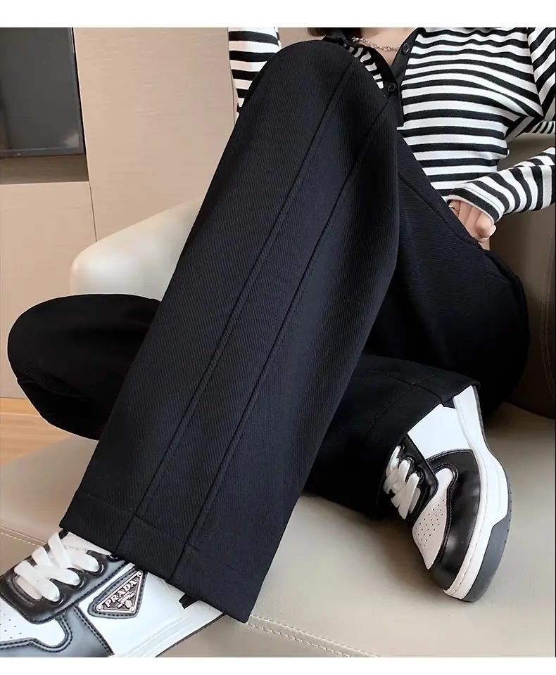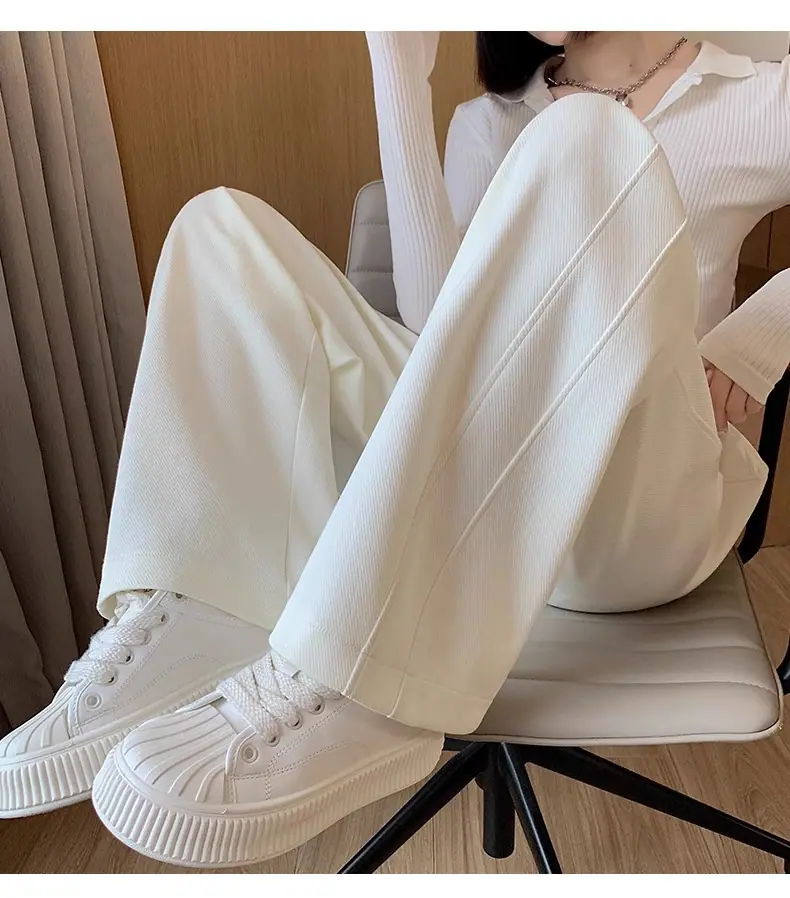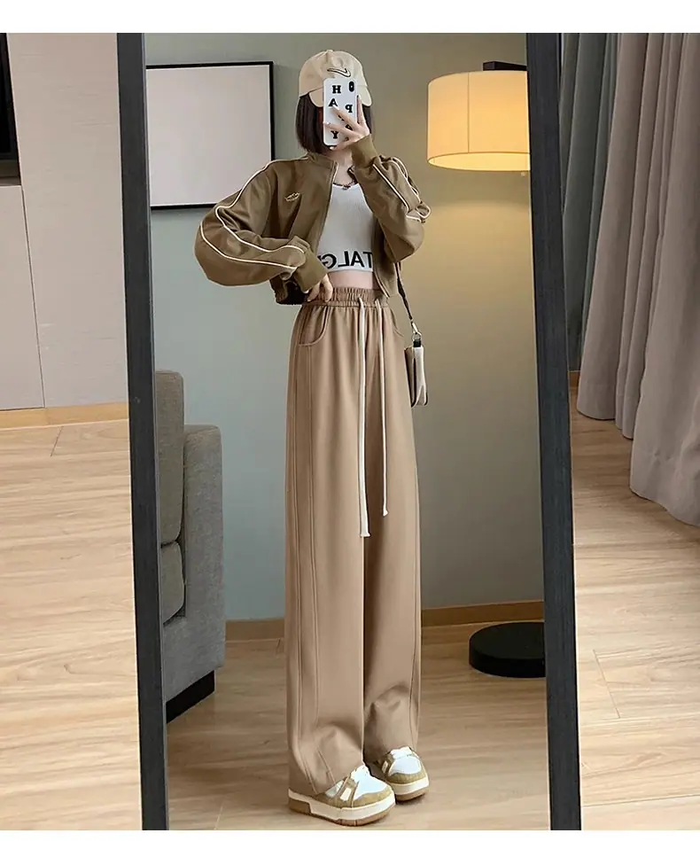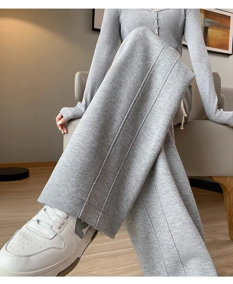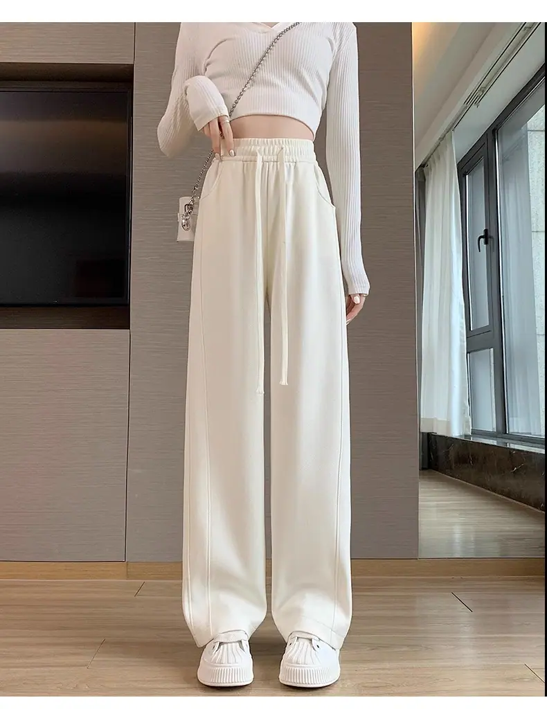 Pantalones Deportivos Grises para Mujer Primavera y Otoño Delgados Cintura Alta Sueltos Rectos Tipo Banana para Correr Pierna Ancha Casual