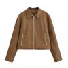 Otoño e Invierno 2025 Nueva Moda Callejera Europea y Americana para Mujer Chaqueta con Cremallera y Solapa de Gamuza W09 11617