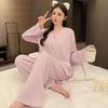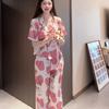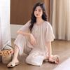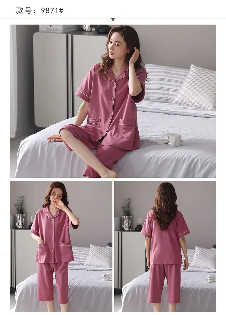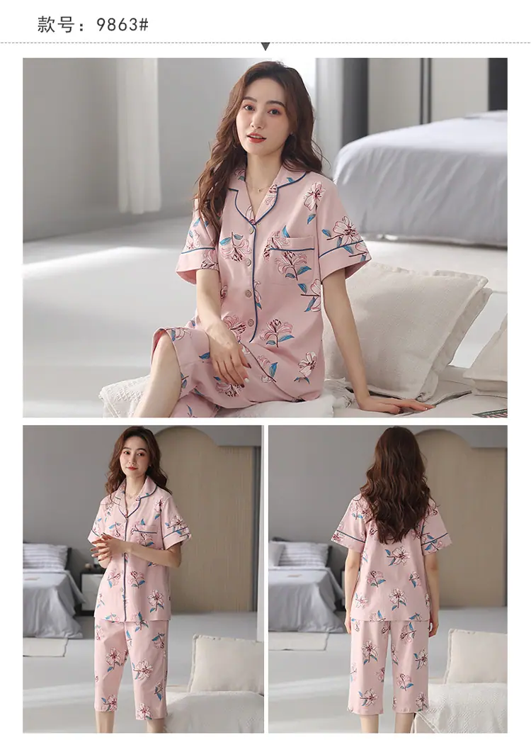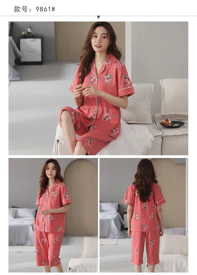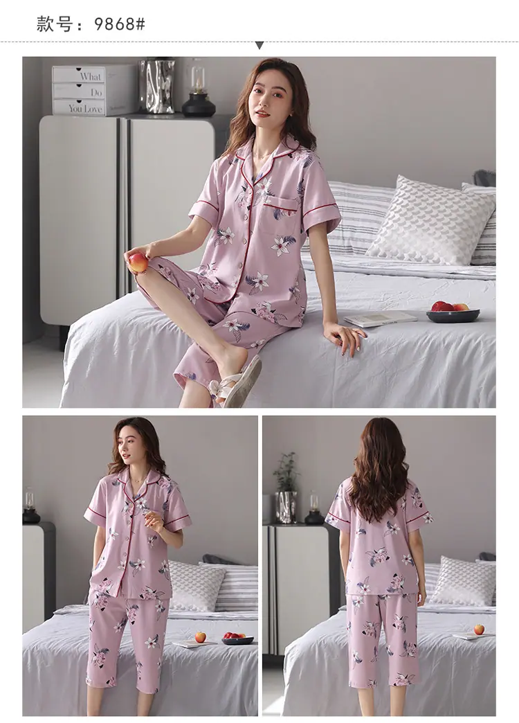 [6 Estilos] Pijamas Mujer Verano Manga Corta Pantalón Capri Señoras de Mediana Edad Ropa de Señora Cárdigan Solapa Ropa para Estar en Casa