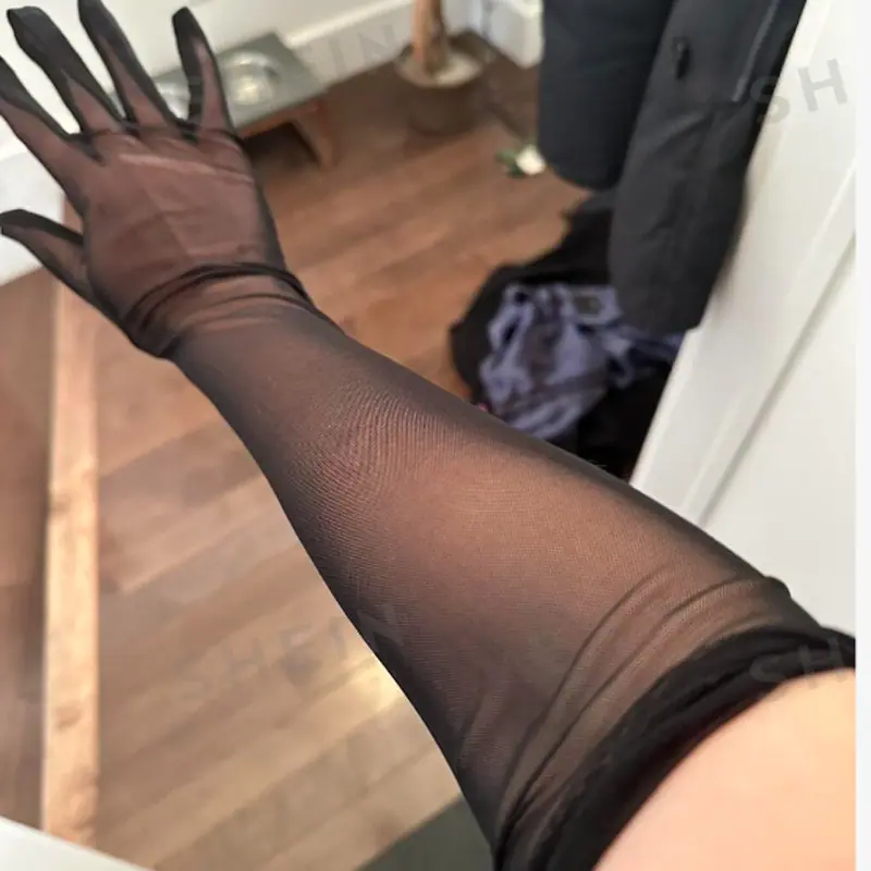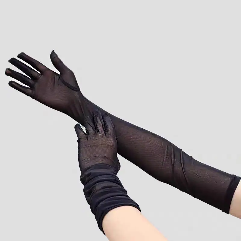 Guantes largos de red elástica negra vestido de novia sexy medias de seda antifaz accesorios material ultradelgado estilo Hepburn