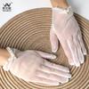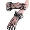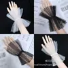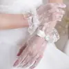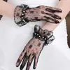 Guantes Delgados de Encaje Floral Blanco y Negro con Lazo de Malla y Perlas Accesorios para Vestido de Novia Guantes Cortos