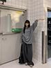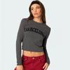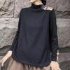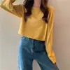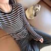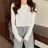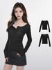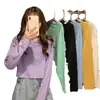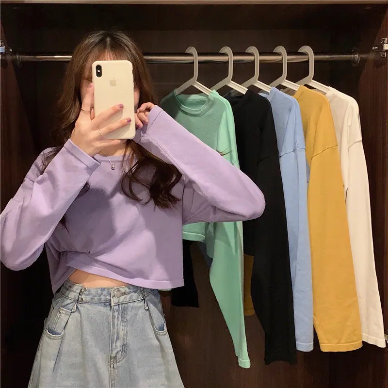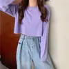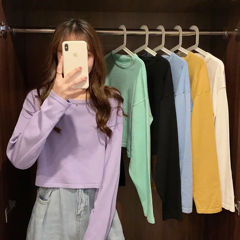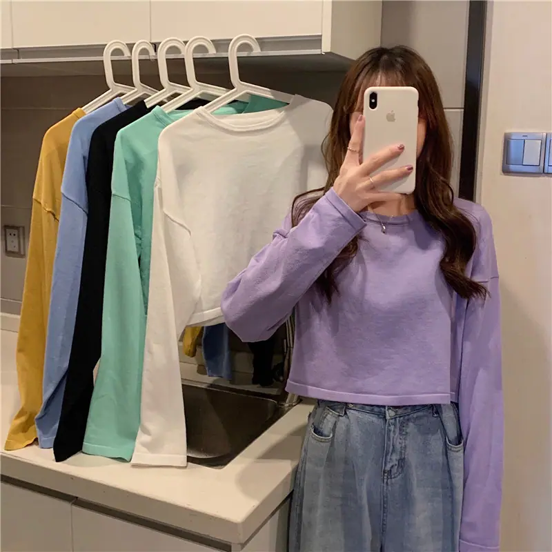 Camiseta Corta de Hombro Azul para Mujer Manga Larga Primavera y Otoño Estilo Americano Retro Suelta Algodón Spice Girl Top Básico Interior