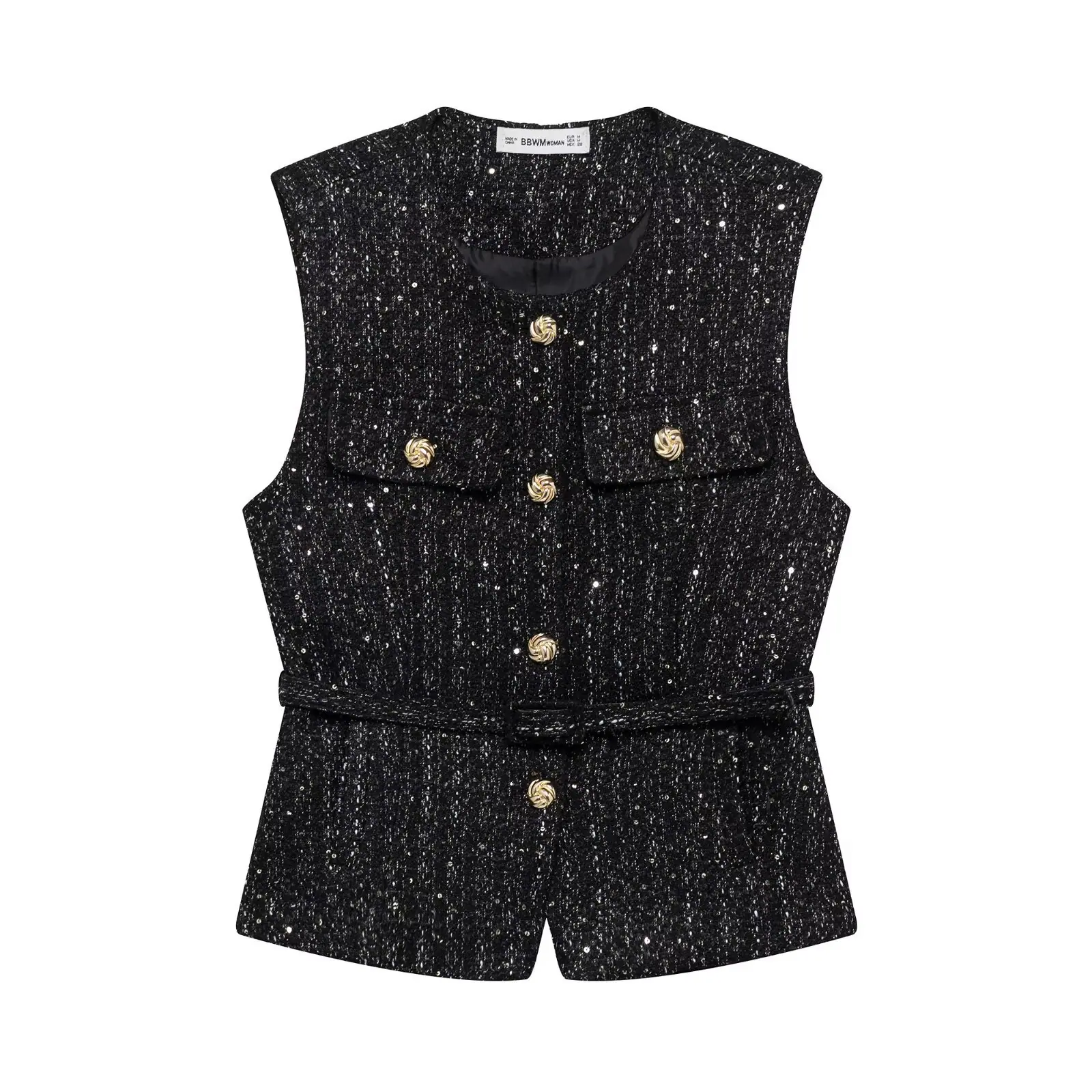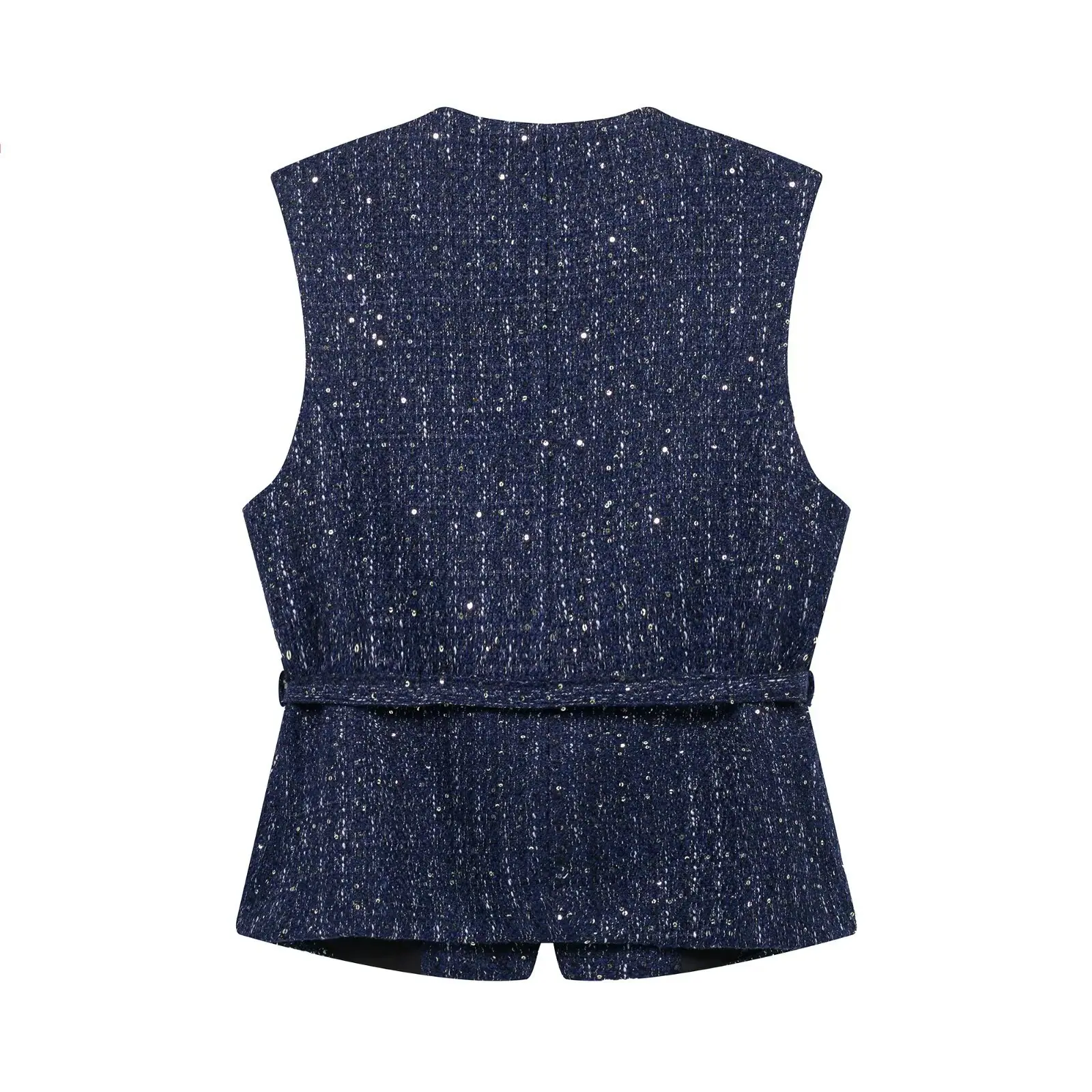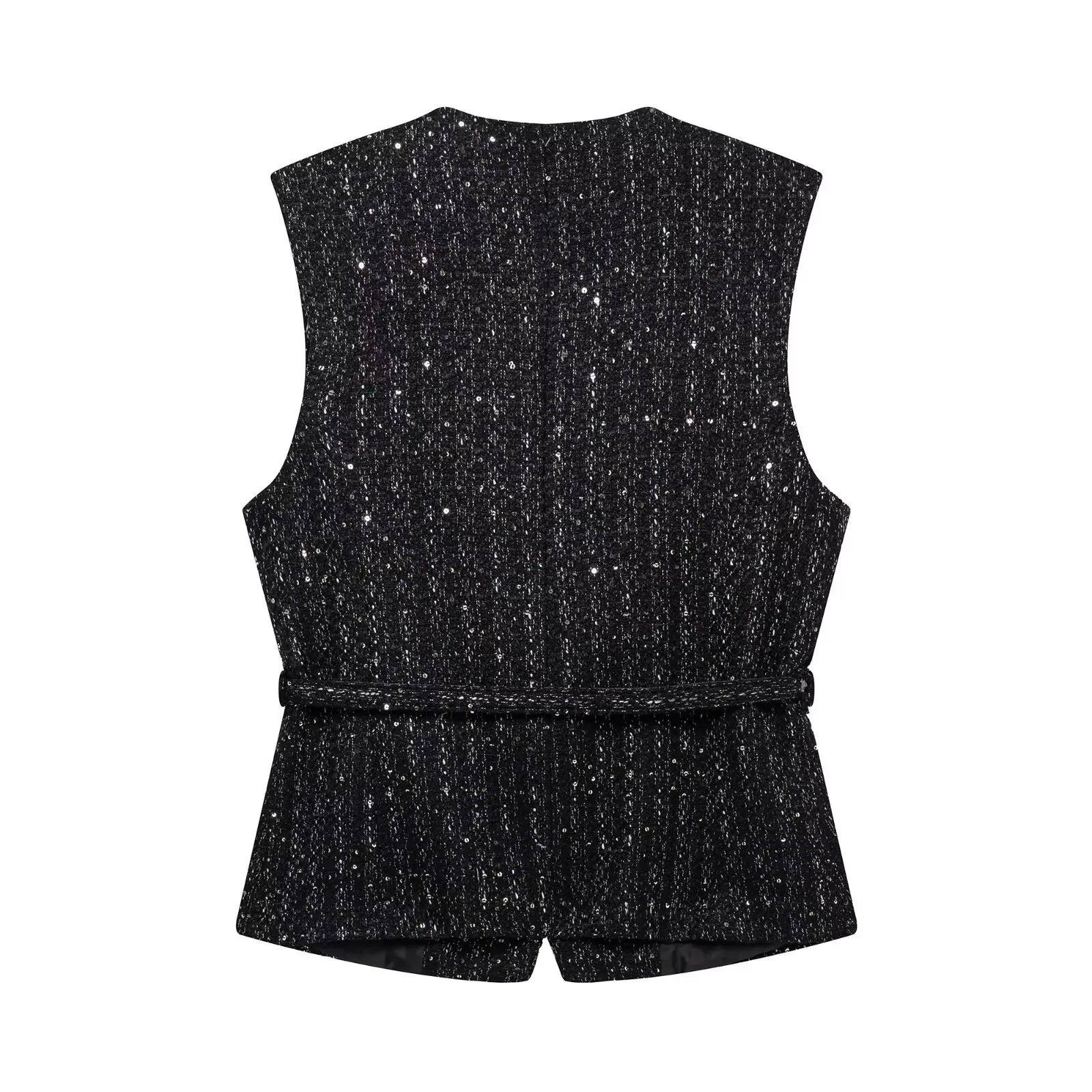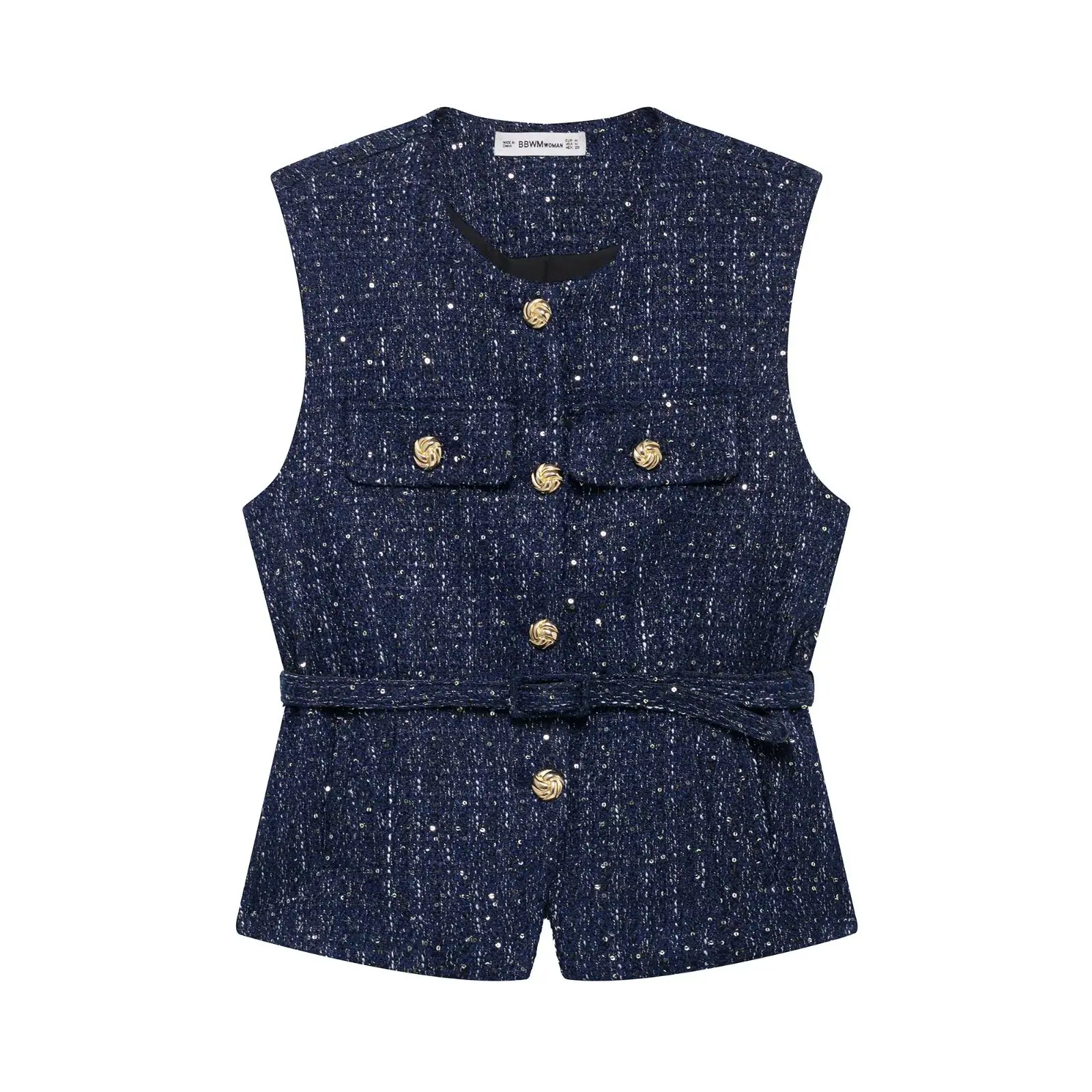 Otoño 2025 Nuevo Europeo y Americano Transfronterizo Moda Urbana para Mujer con Cinturón Chaleco Texturizado Adelgazante w03 6490