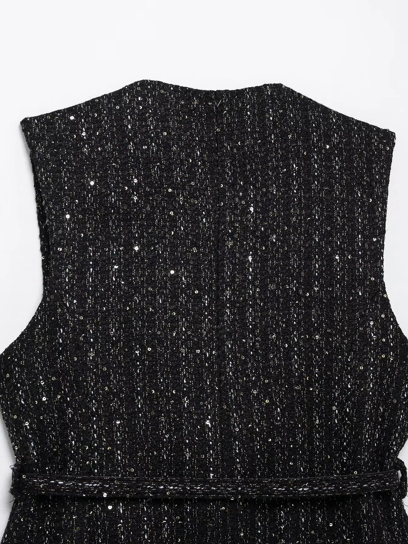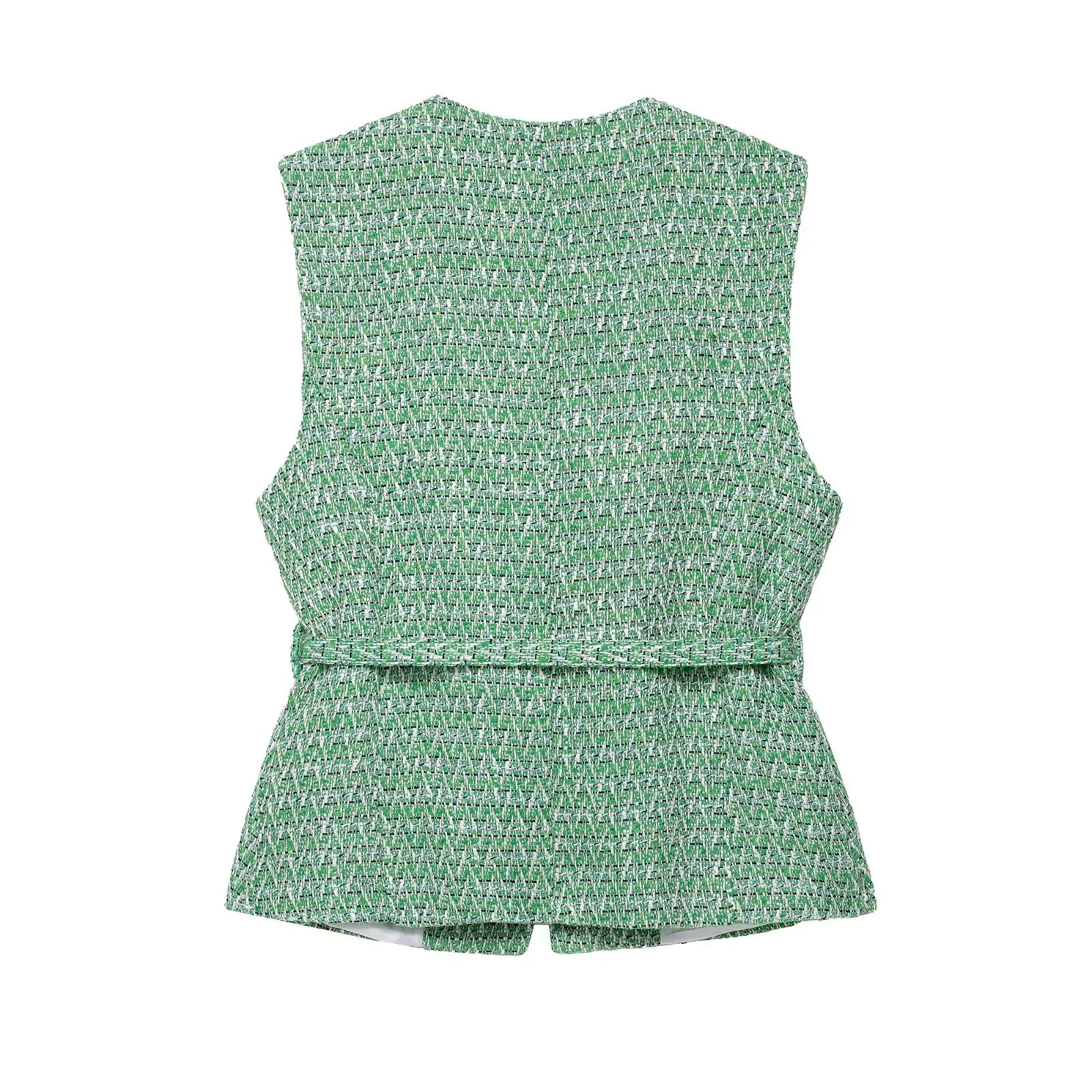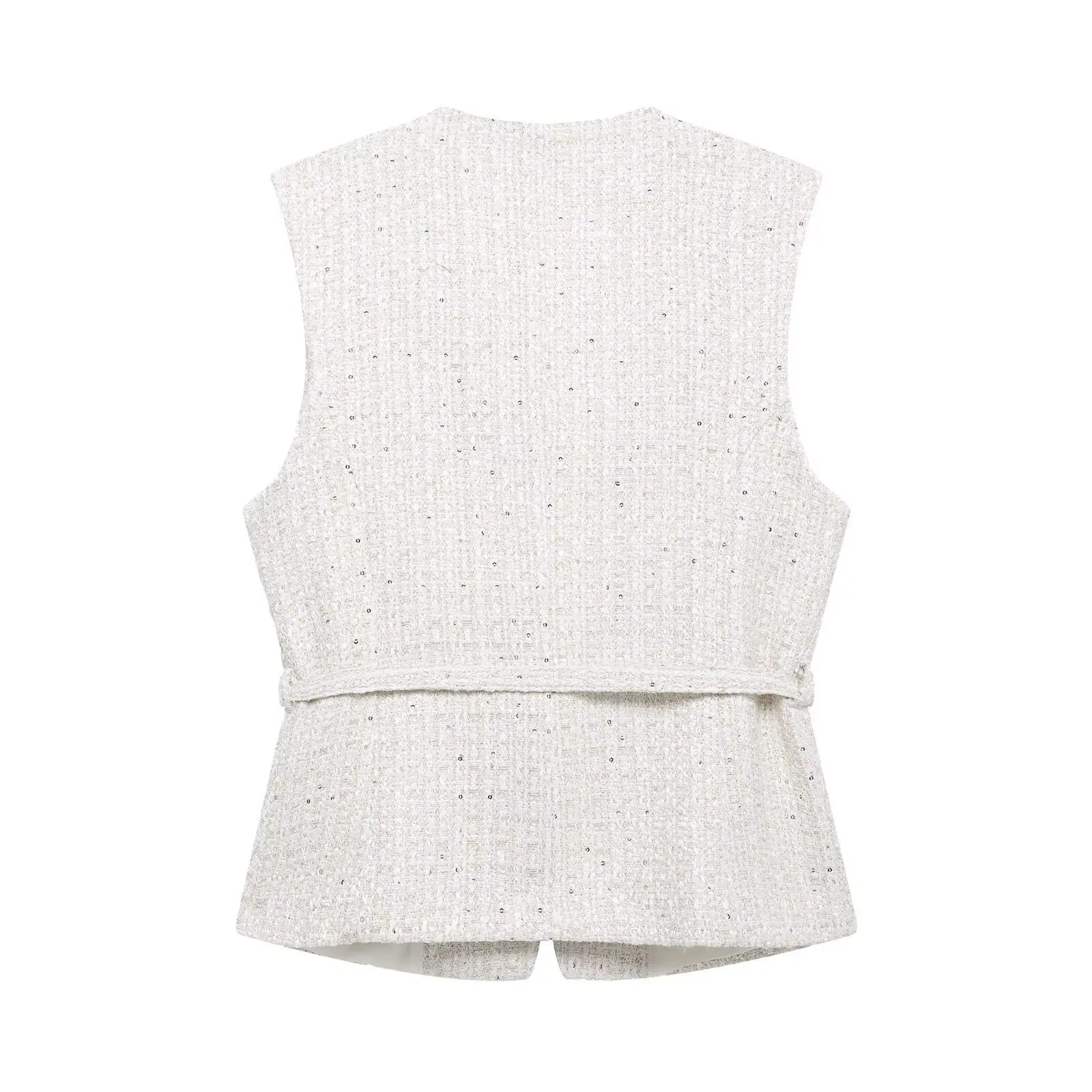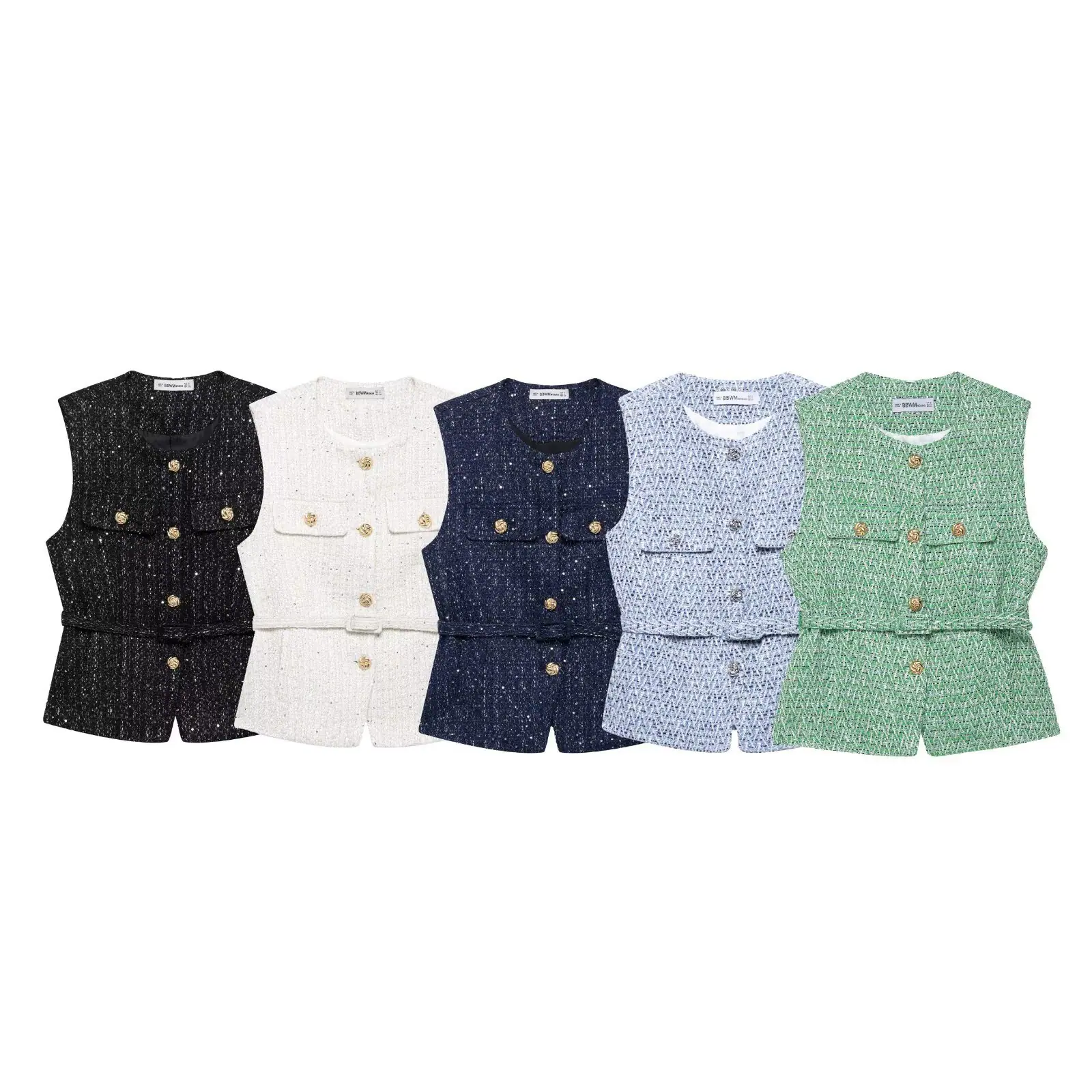 Otoño 2025 Nuevo Europeo y Americano Transfronterizo Moda Urbana para Mujer con Cinturón Chaleco Texturizado Adelgazante w03 6490