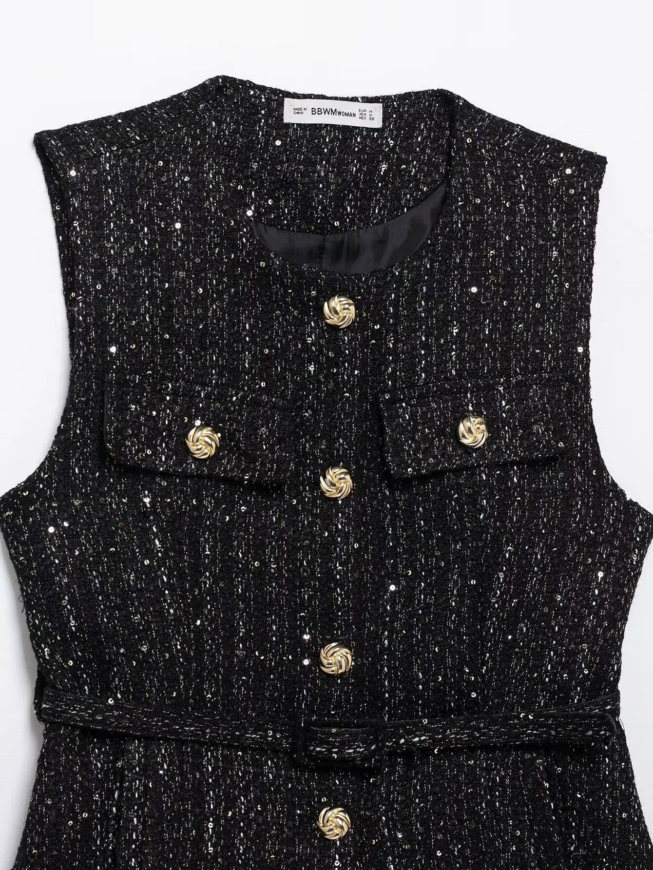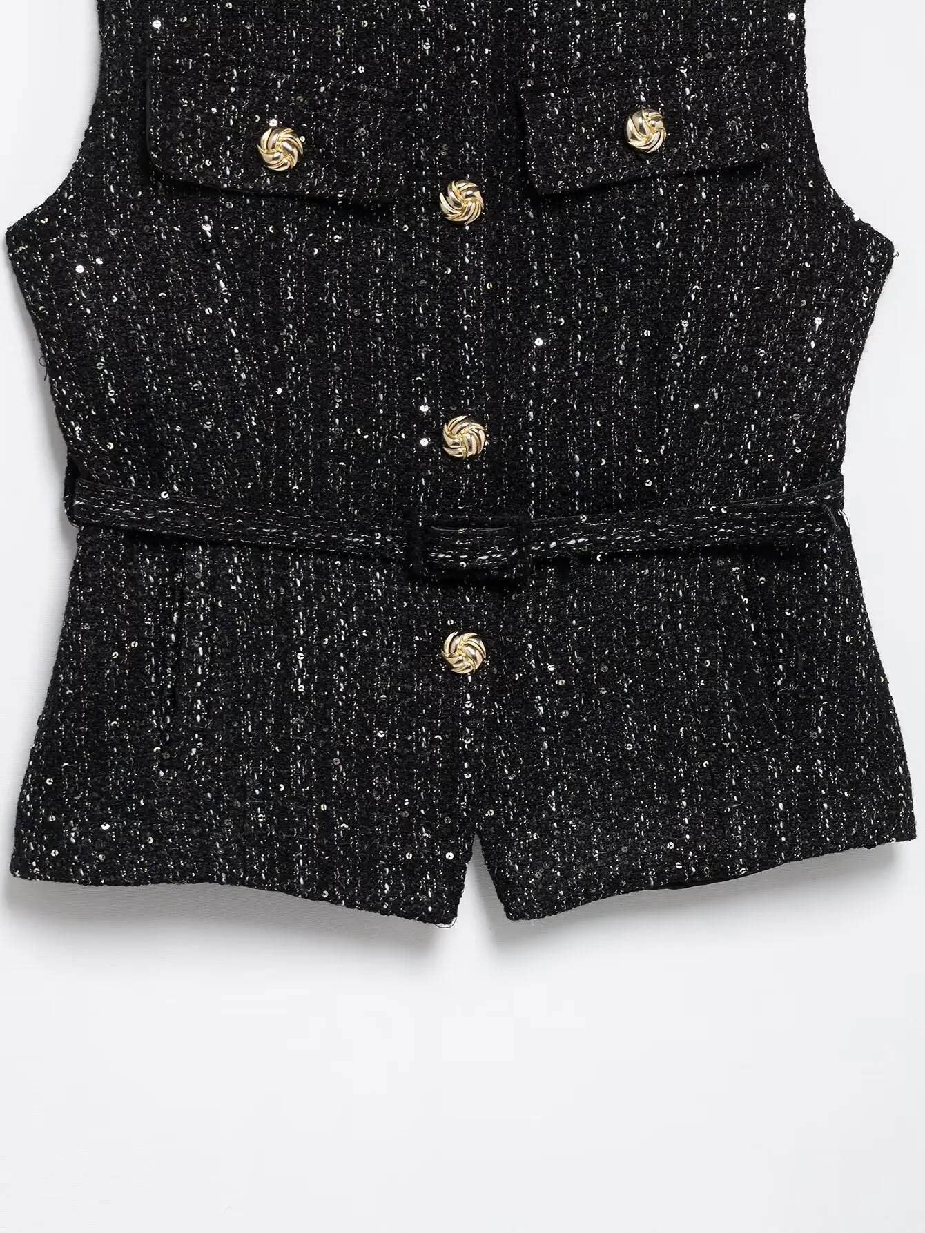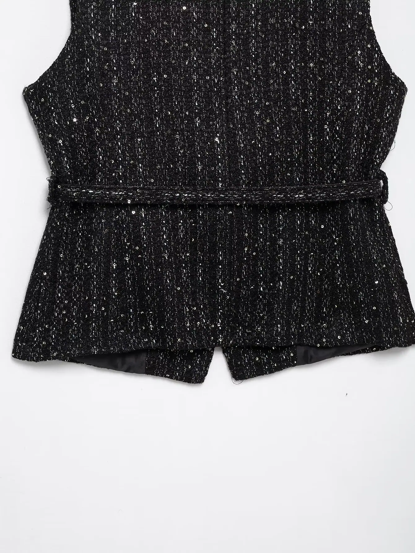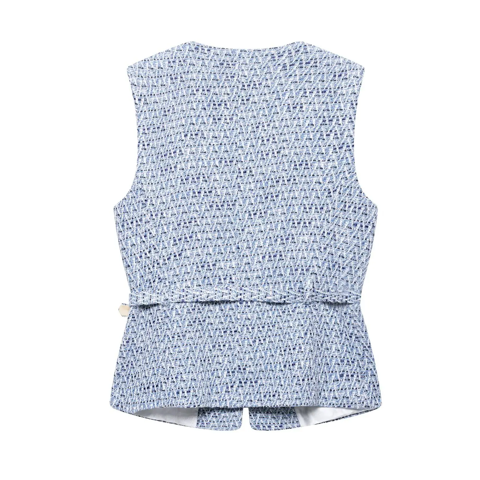 Otoño 2025 Nuevo Europeo y Americano Transfronterizo Moda Urbana para Mujer con Cinturón Chaleco Texturizado Adelgazante w03 6490