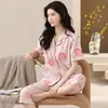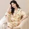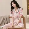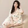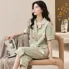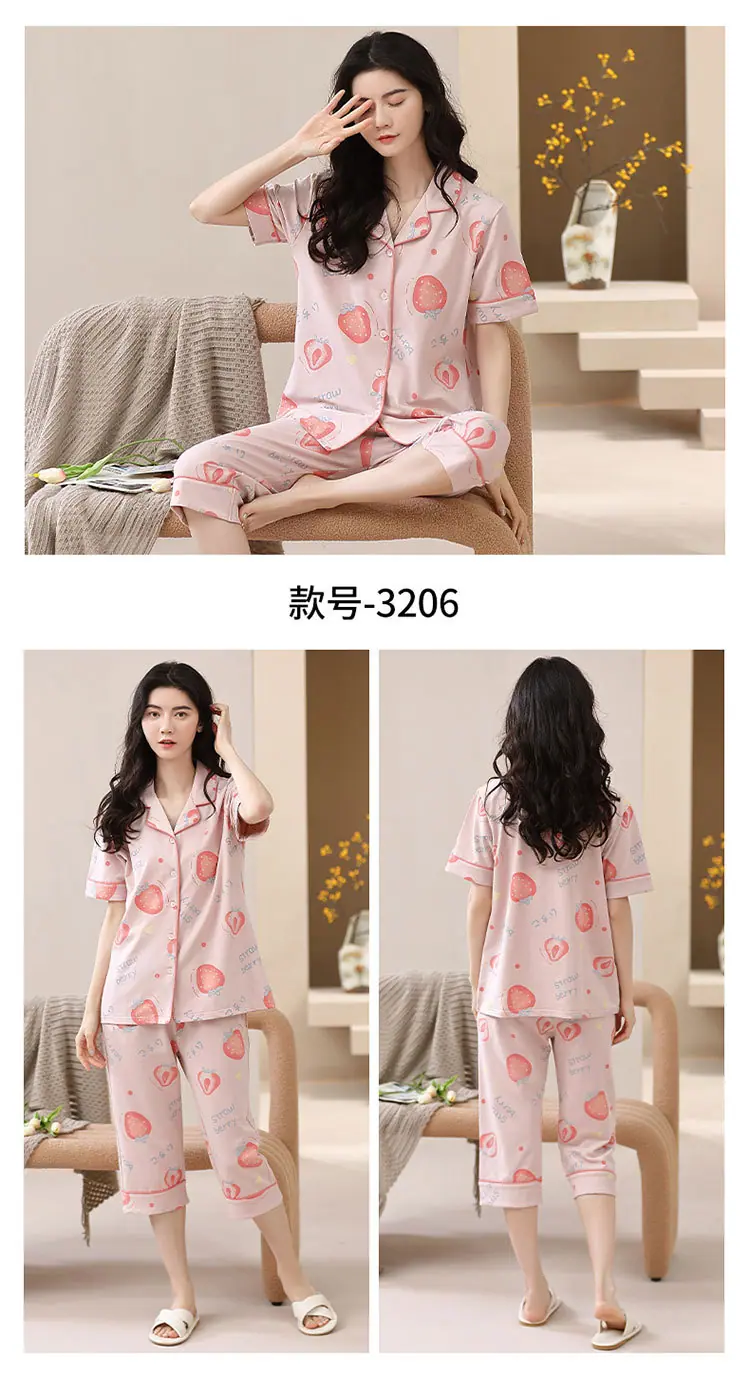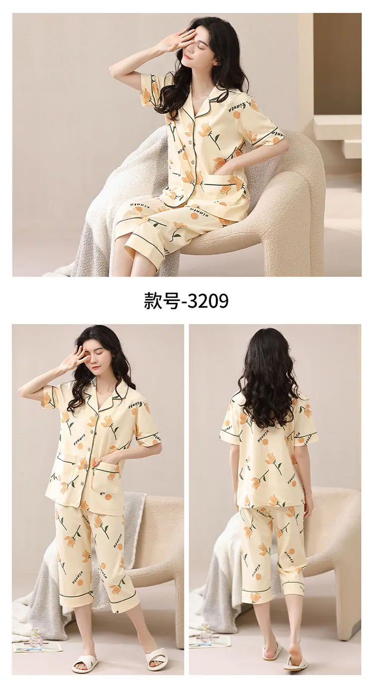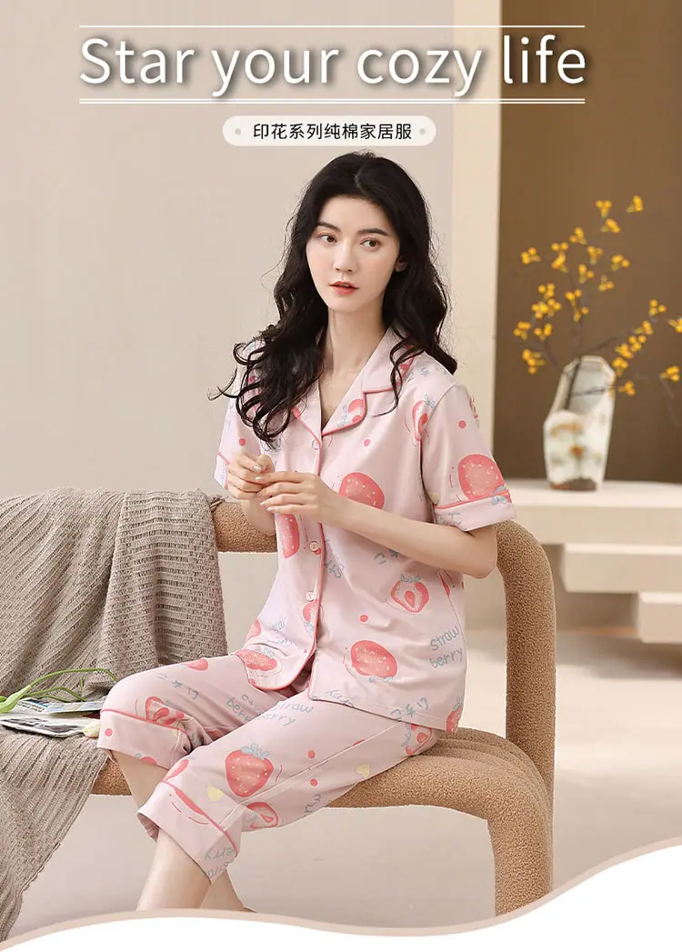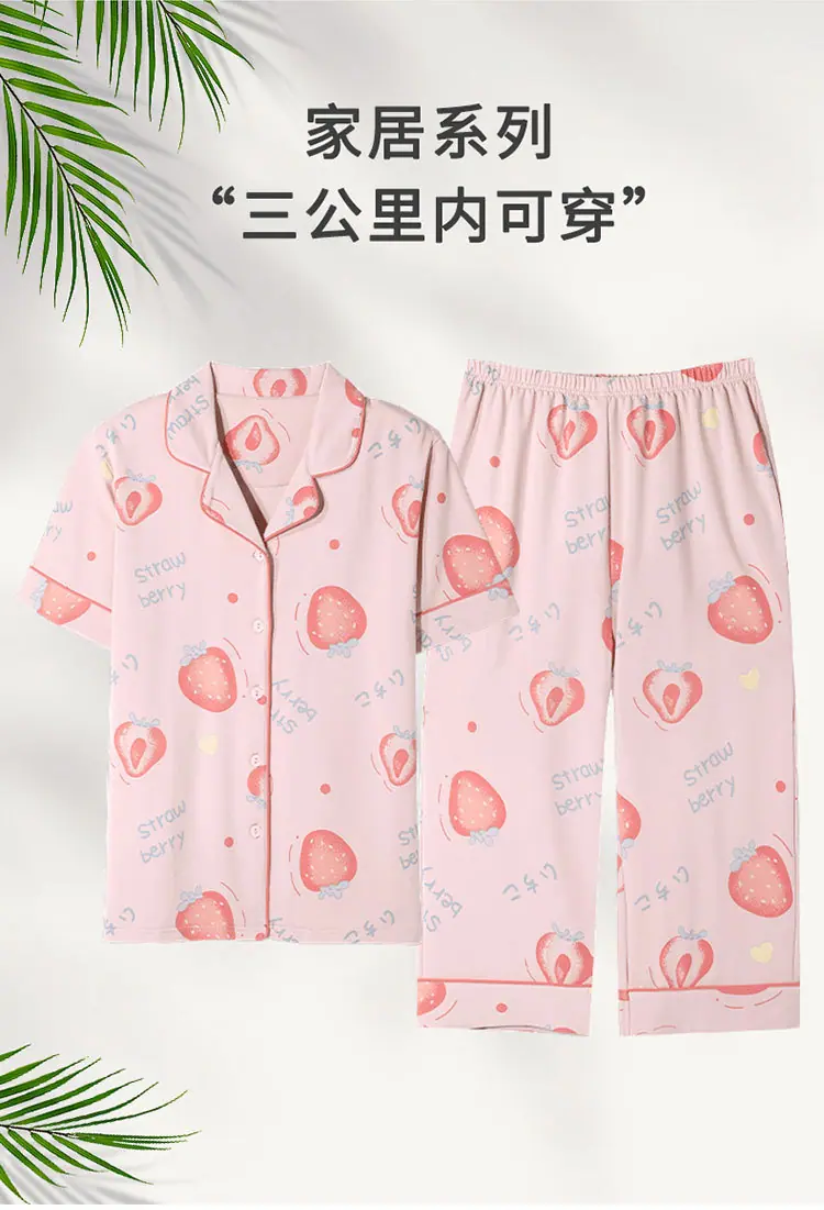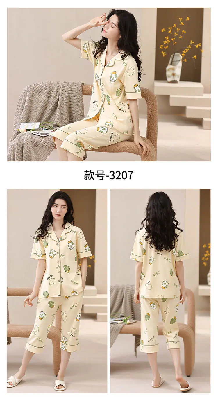 Pijama de algodón para mujer verano nuevo manga corta Nuevo pantalón capri delgado para exterior ropa de casa traje de verano