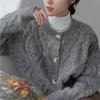 Otoño e Invierno Engrosado Nuevo Versátil Corto Abrigo Retro Cardigan de Punto Trenzado Chaqueta para Mujer C Gris Oscuro Talla Única