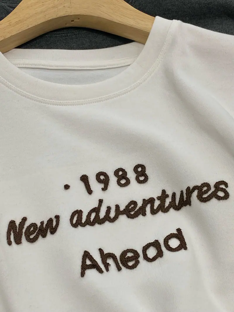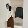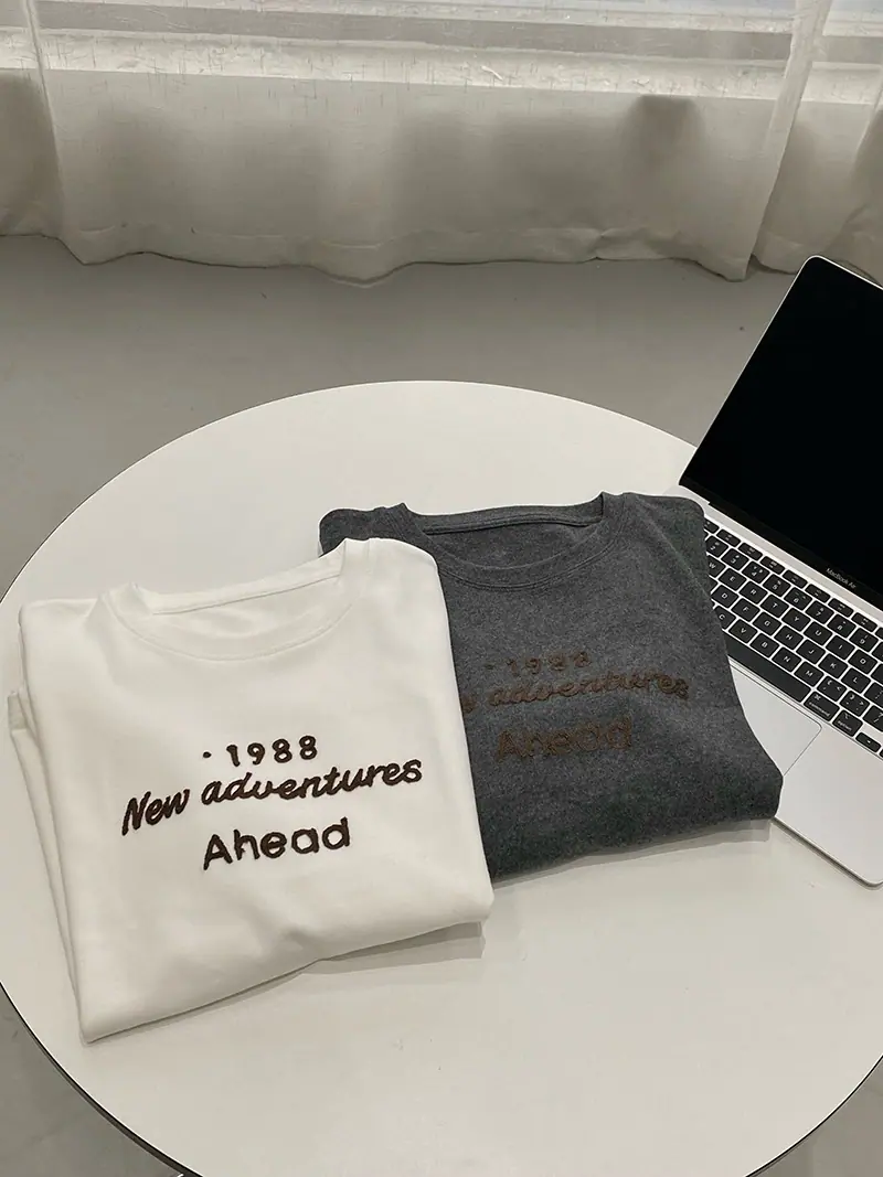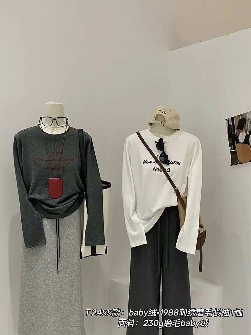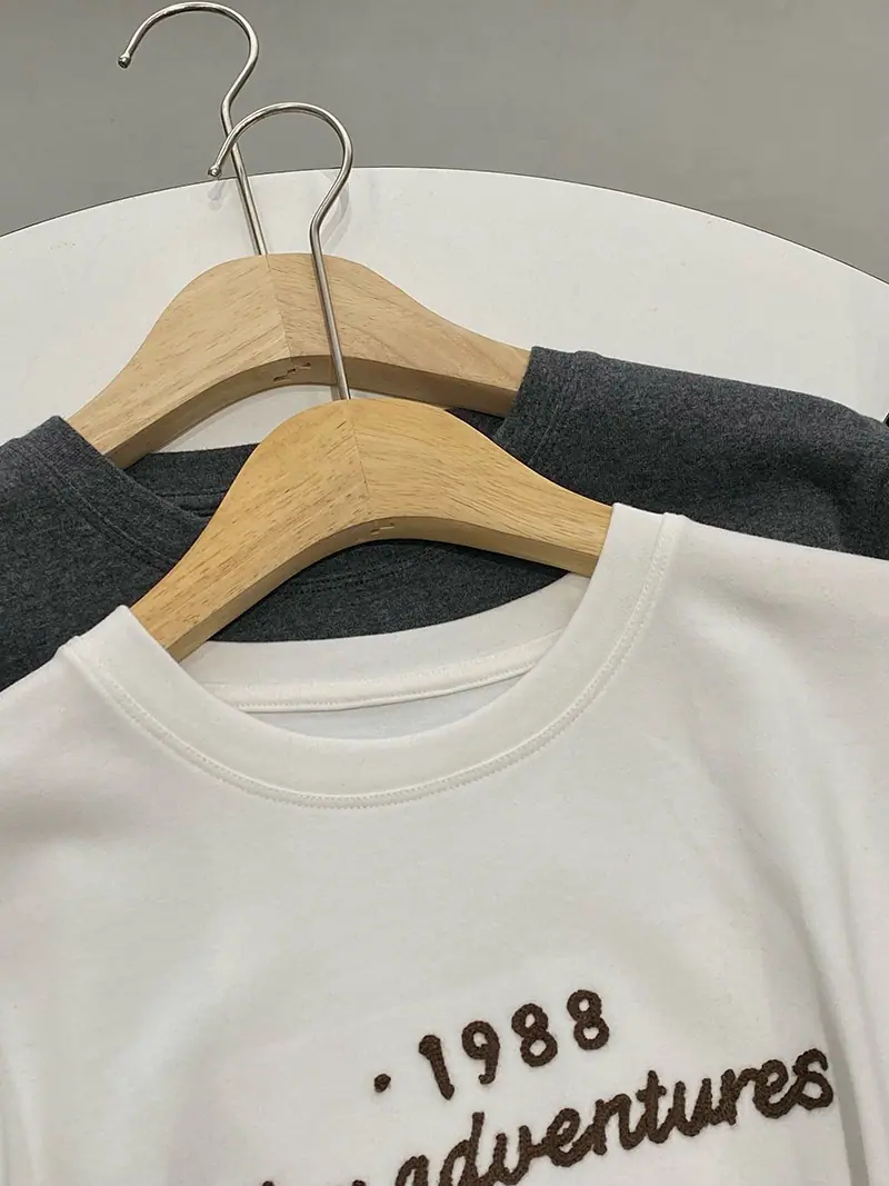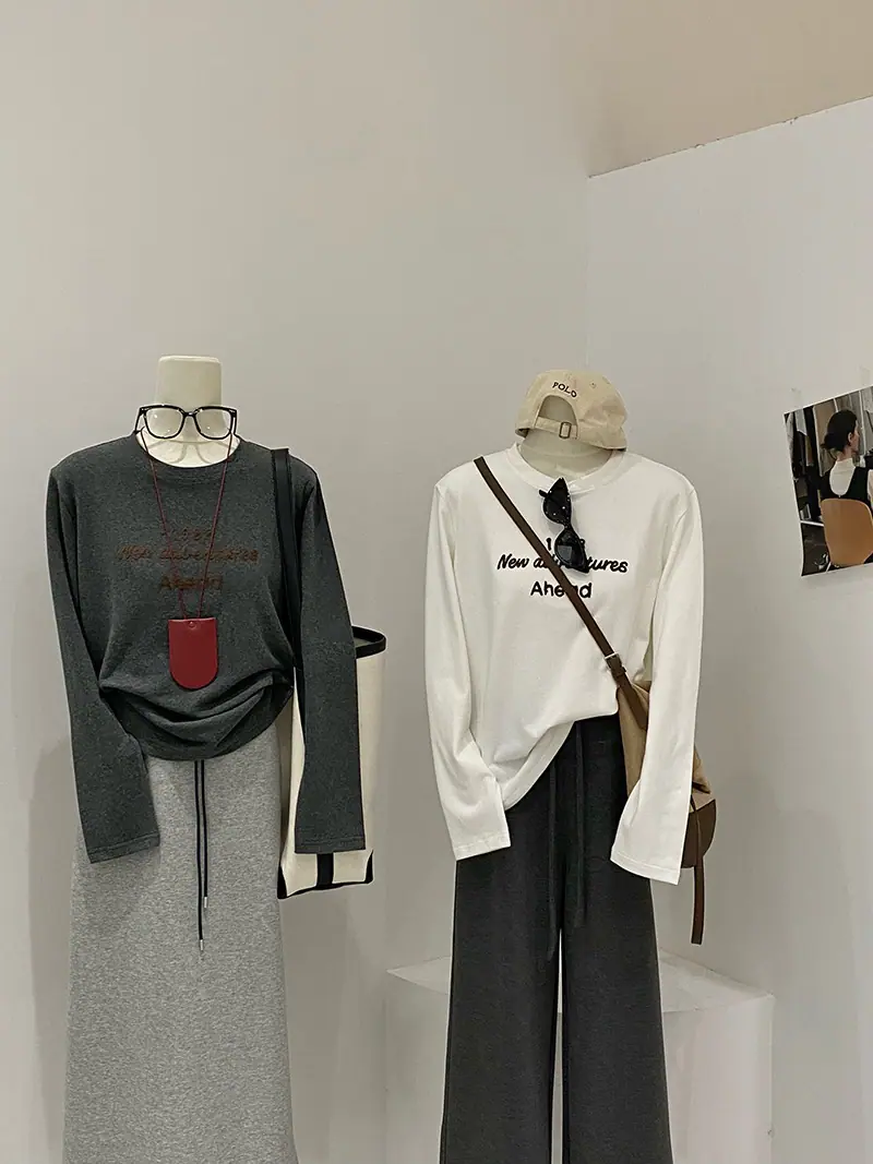 2025 Principios de Otoño Nuevo Estilo Coreano Adelgazante Versátil Cuello Redondo Bordado de Letras Manga Larga Camiseta Capa Base Top Mujer