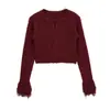 Cárdigan de punto con decoración en capas de moda callejera europea y americana transfronteriza para mujer, Otoño 2025 Nuevo w103 90218