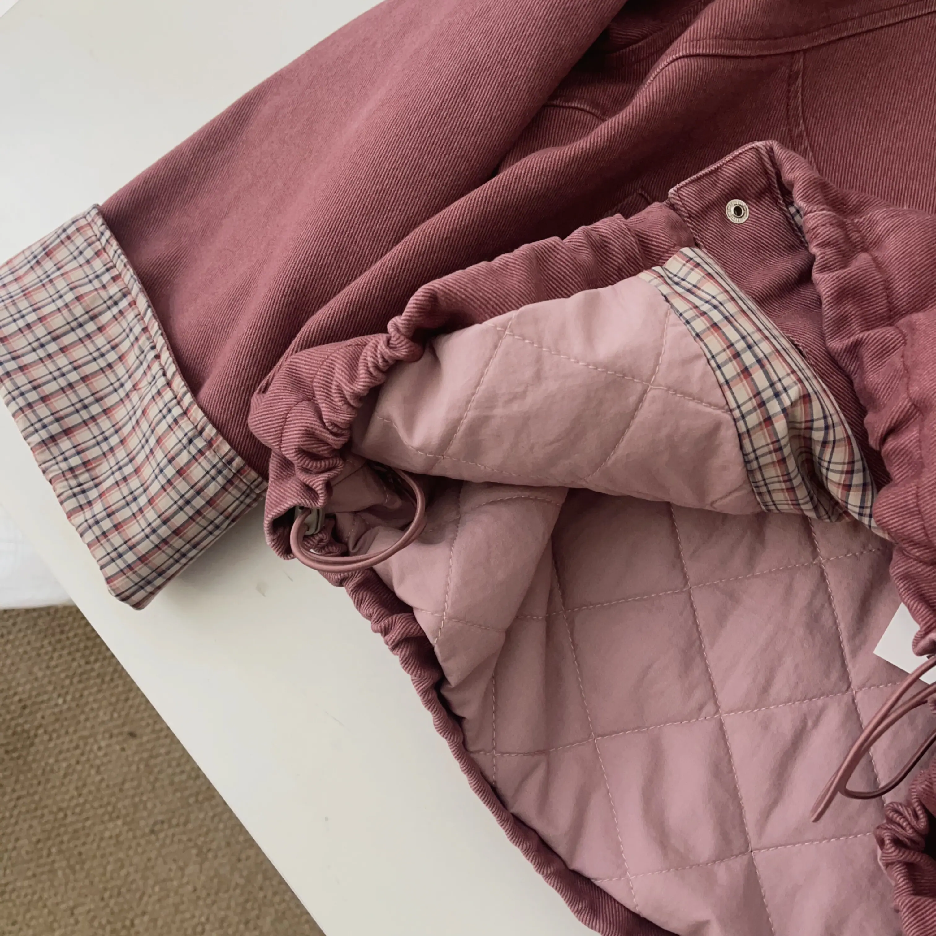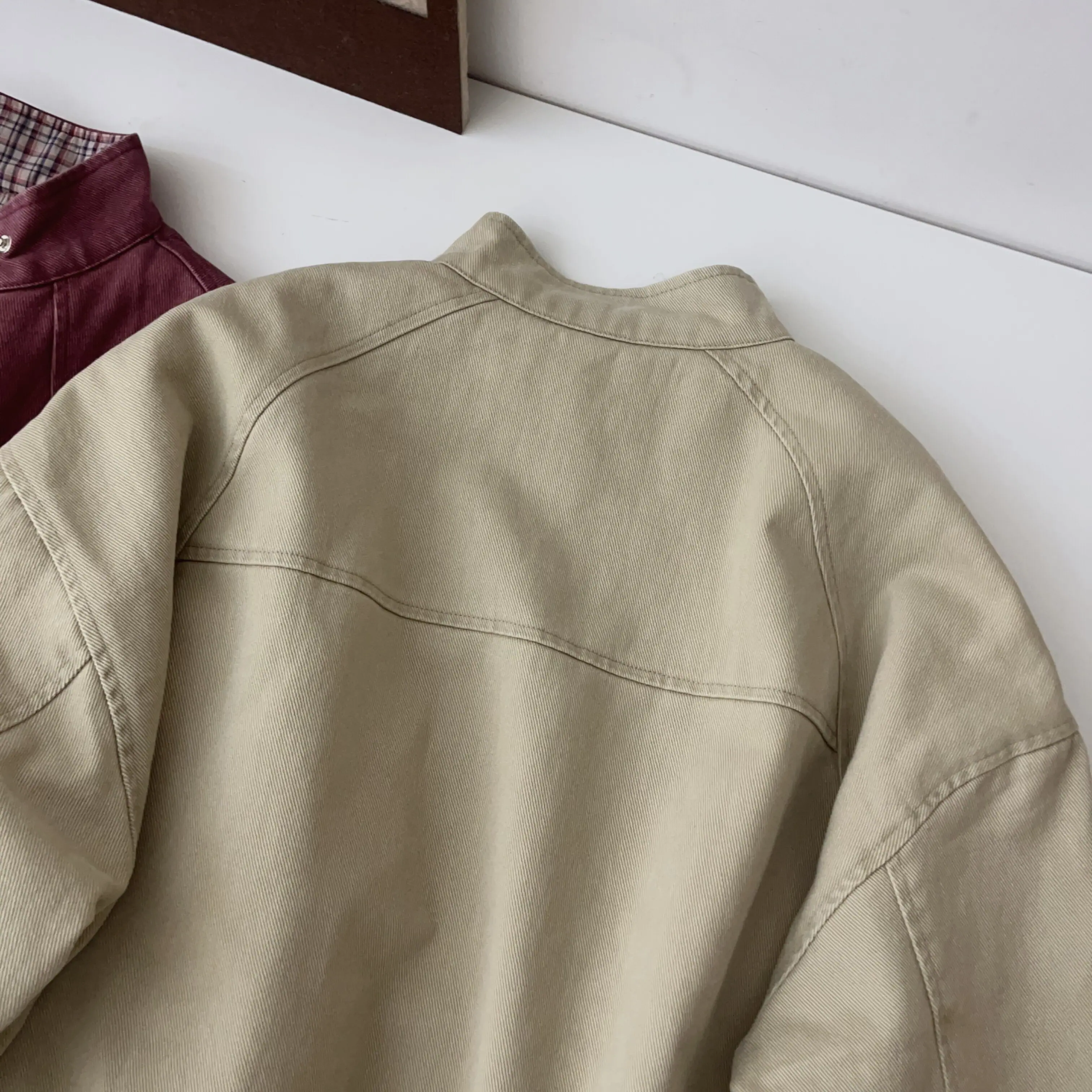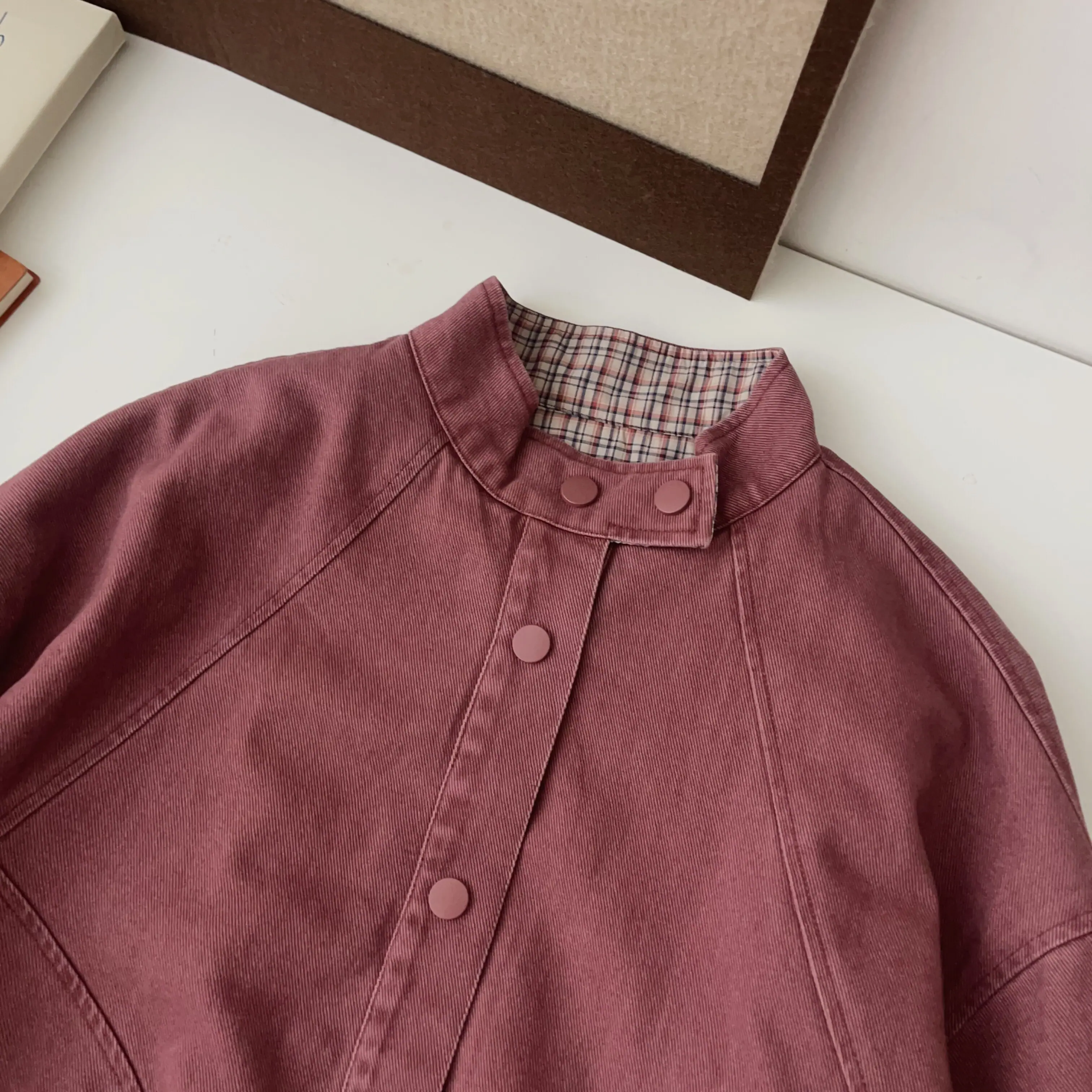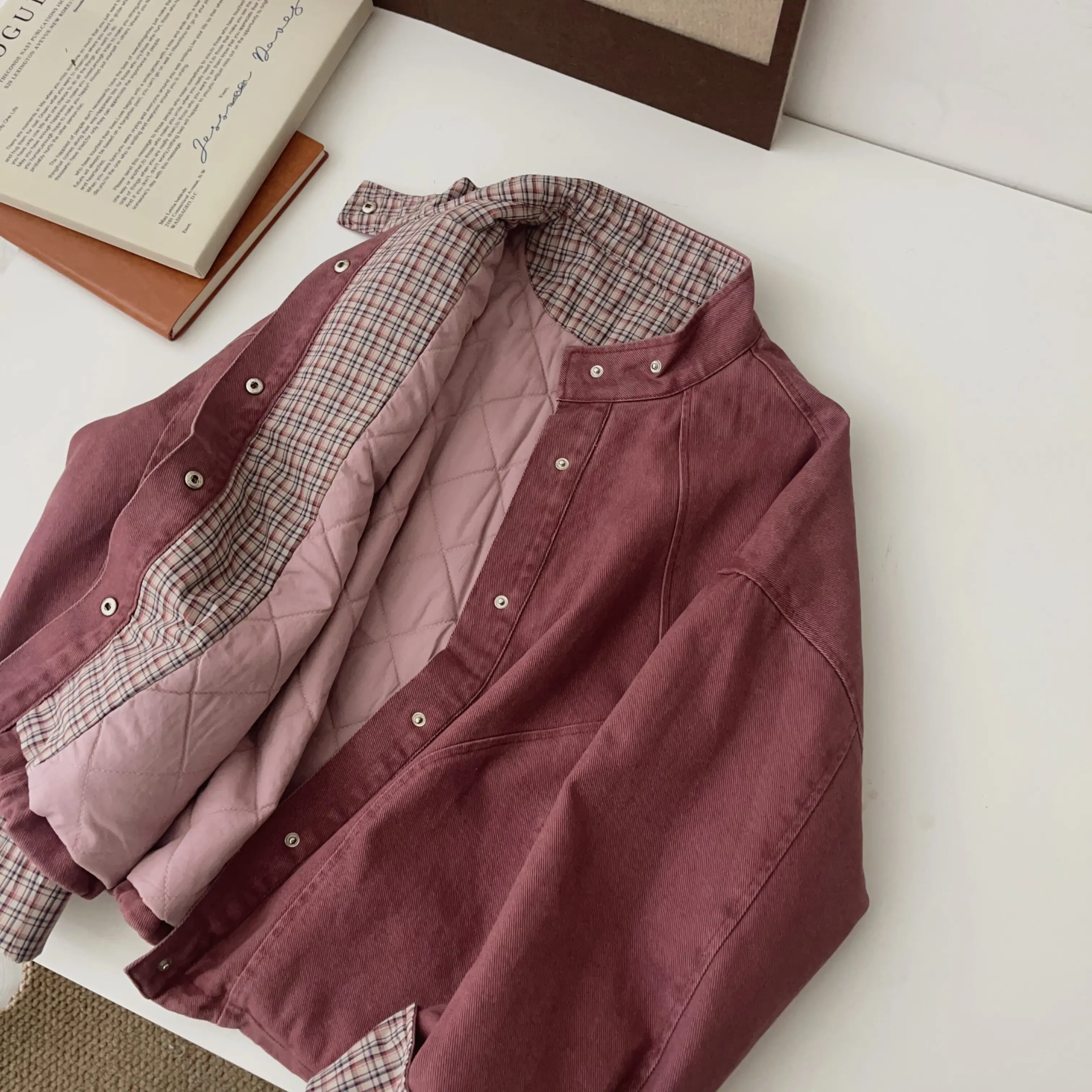 Chaqueta casual sencilla versátil estilo coreano con cuello alto y patchwork de cuadros para mujer, top holgado casual versátil para mujer