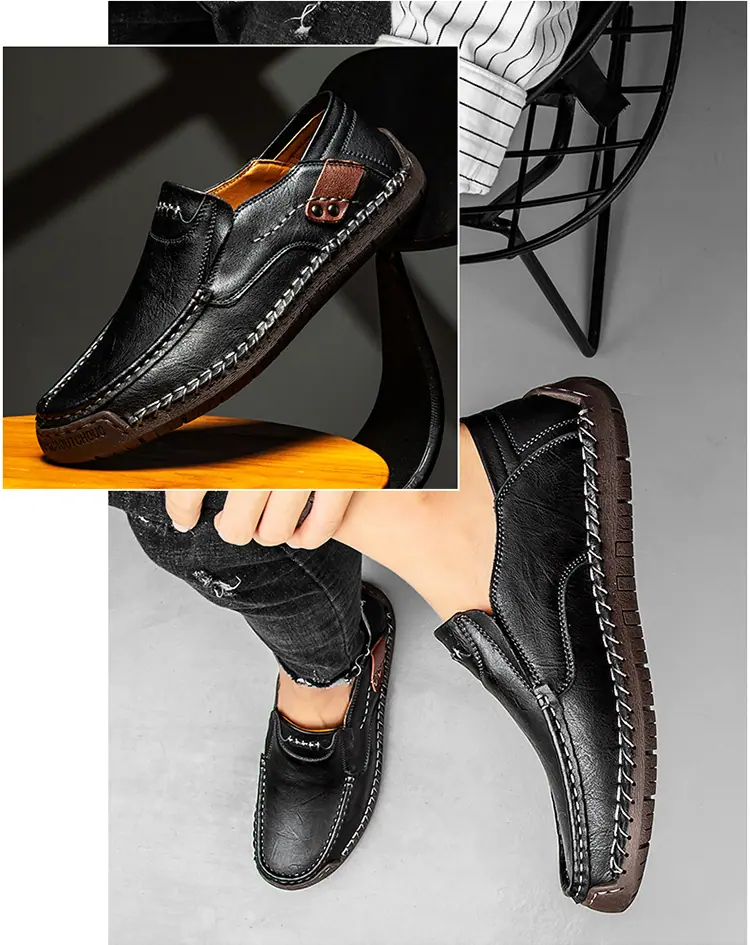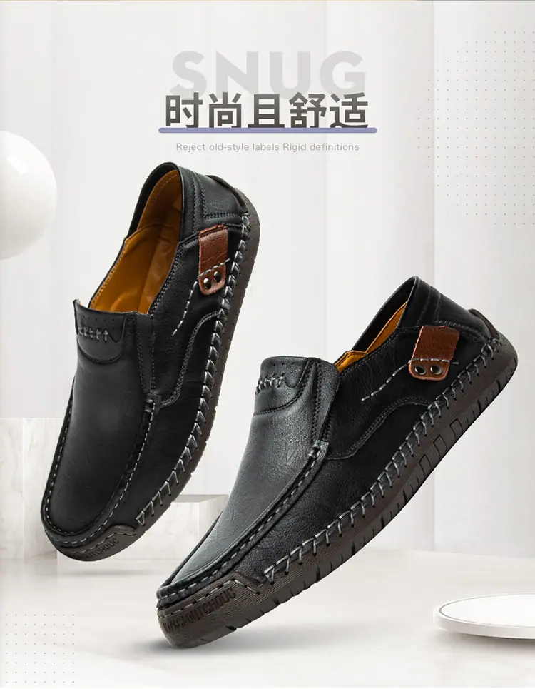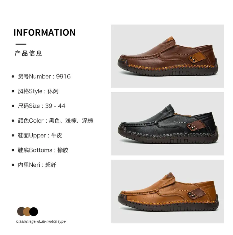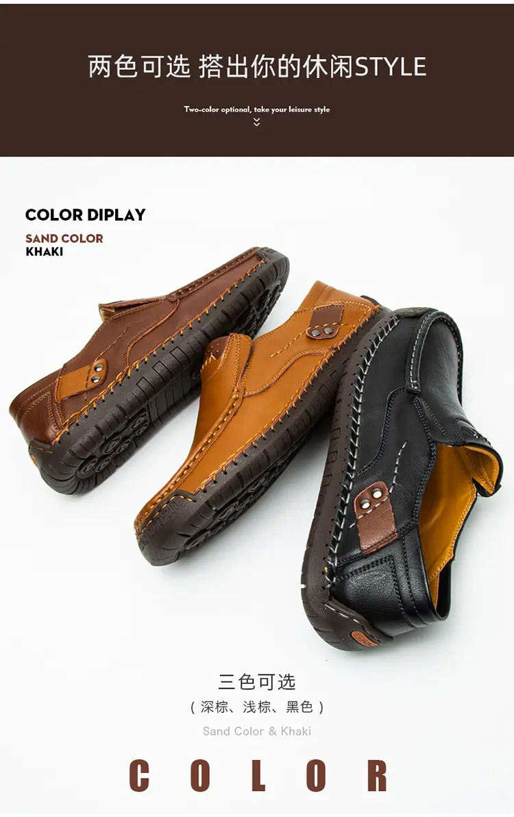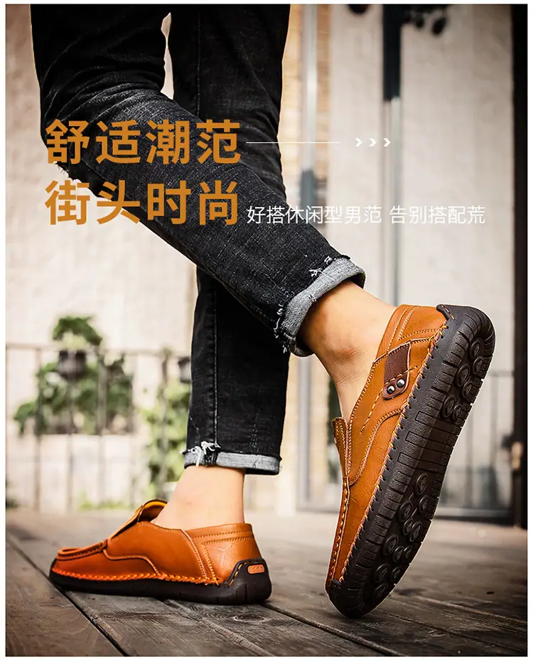 Amazon transfronterizo de gran venta Zapatos de hombre cosidos a mano Zapatos de cuero sin cordones Mocasines de talla grande Mocasines casuales para exteriores