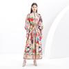 Vestido largo ondulado retro estampado estilo moda retro 2025 cuello alto manga farol