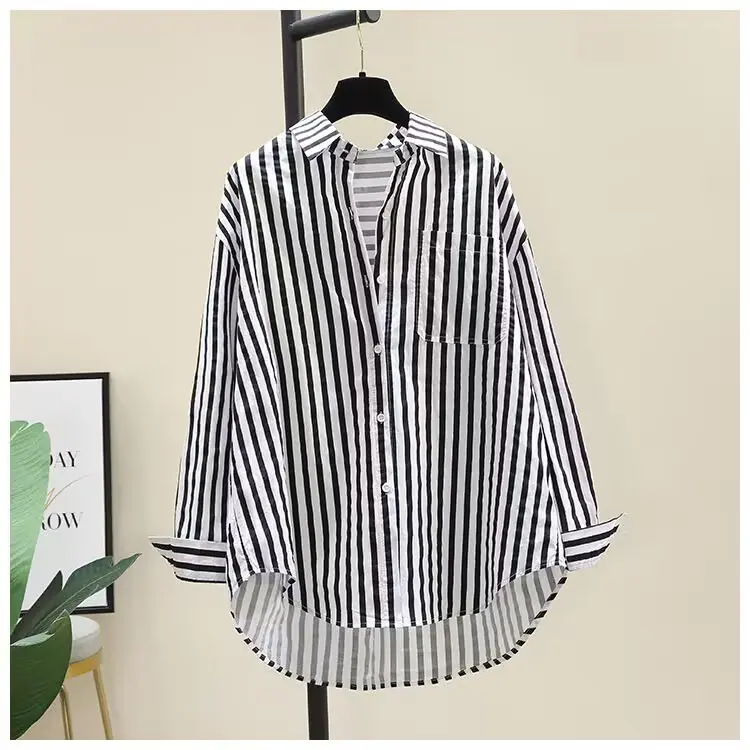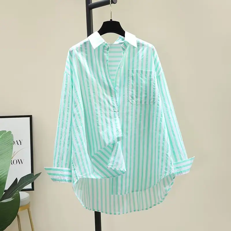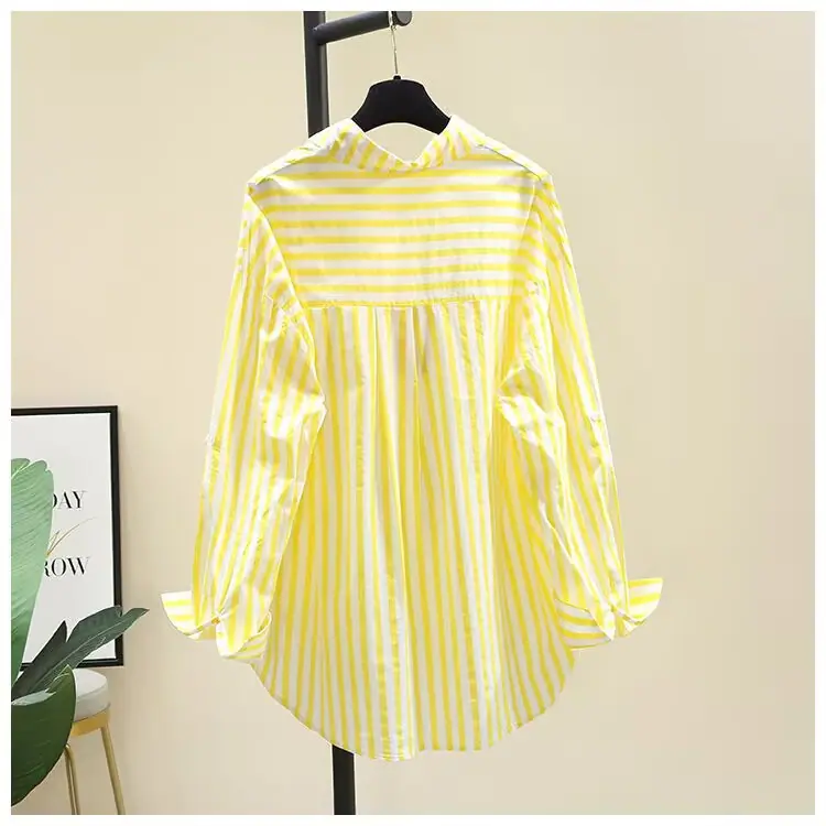 Camisa de Color Sólido Estampada a Rayas para Mujer Primavera 2025 Nueva Llegada Moda Suelta Combinable Manga Larga Camisa Cárdigan para Mujer Camisa Interior para Mujer