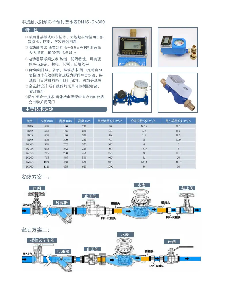 ![]() Medidor de agua inteligente de tarjeta IC prepago Impermeable, a prueba de heladas y a prueba de polvo Medidor de agua de radiofrecuencia de deslizamiento de tarjeta a prueba de tres factores Medidor de agua de recarga de tarjeta de inserción de tarjeta IC