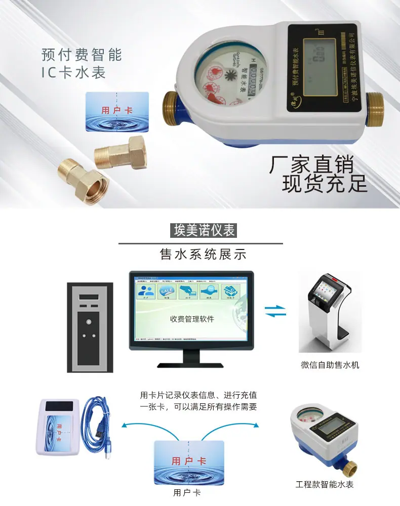 ![]() Medidor de Agua Inteligente Recargable Emaike Inserción de Tarjeta IC Medidor de Agua Prepago Tarjeta IC Radiofrecuencia Agua y Electricidad Tarjeta Todo en Uno Medidor de Agua