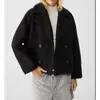 2025 Nuevo Estilo Transfronterizo Comercio Exterior Moda Europea y Americana para Mujer Estilo de Punto Solapa Grande Lana Corto Grueso Manga Larga Chaqueta Abrigo