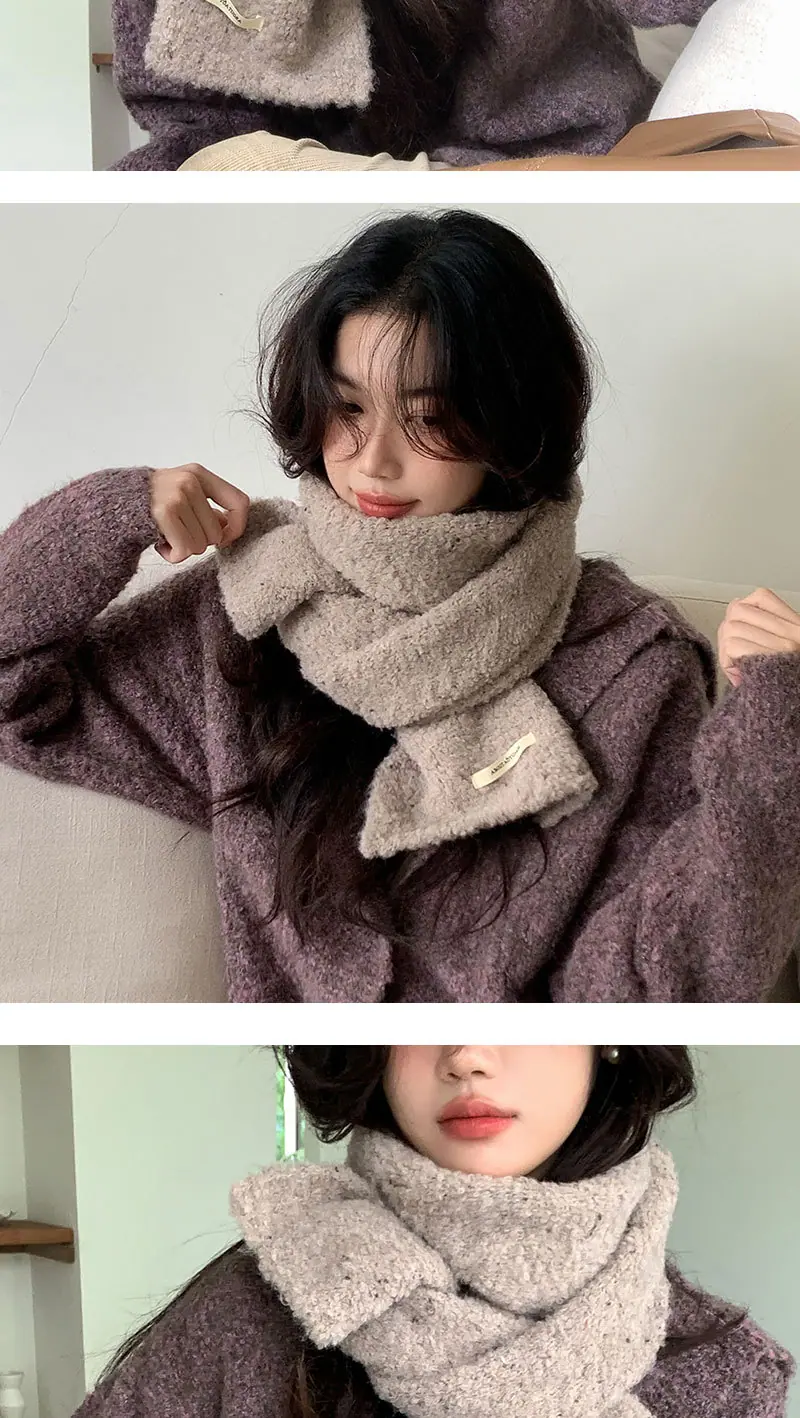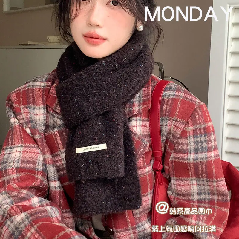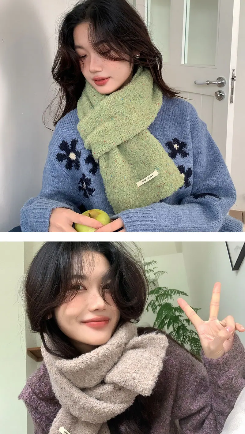 Ambiente Chao ~ bufanda de punto suave y cerosa de felpa para mujer, mezcla de lana, versión coreana de Joker, bufanda cálida para estudiantes