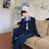 Otoño 2025 Nuevo Estilo Coreano Chaqueta Corta Casual Holgada para Mujer con Parches de Dos Piezas Falsas y Solapa Estilo Chanel