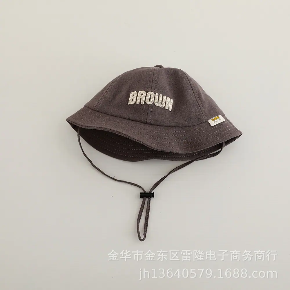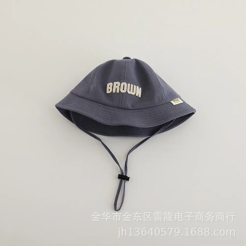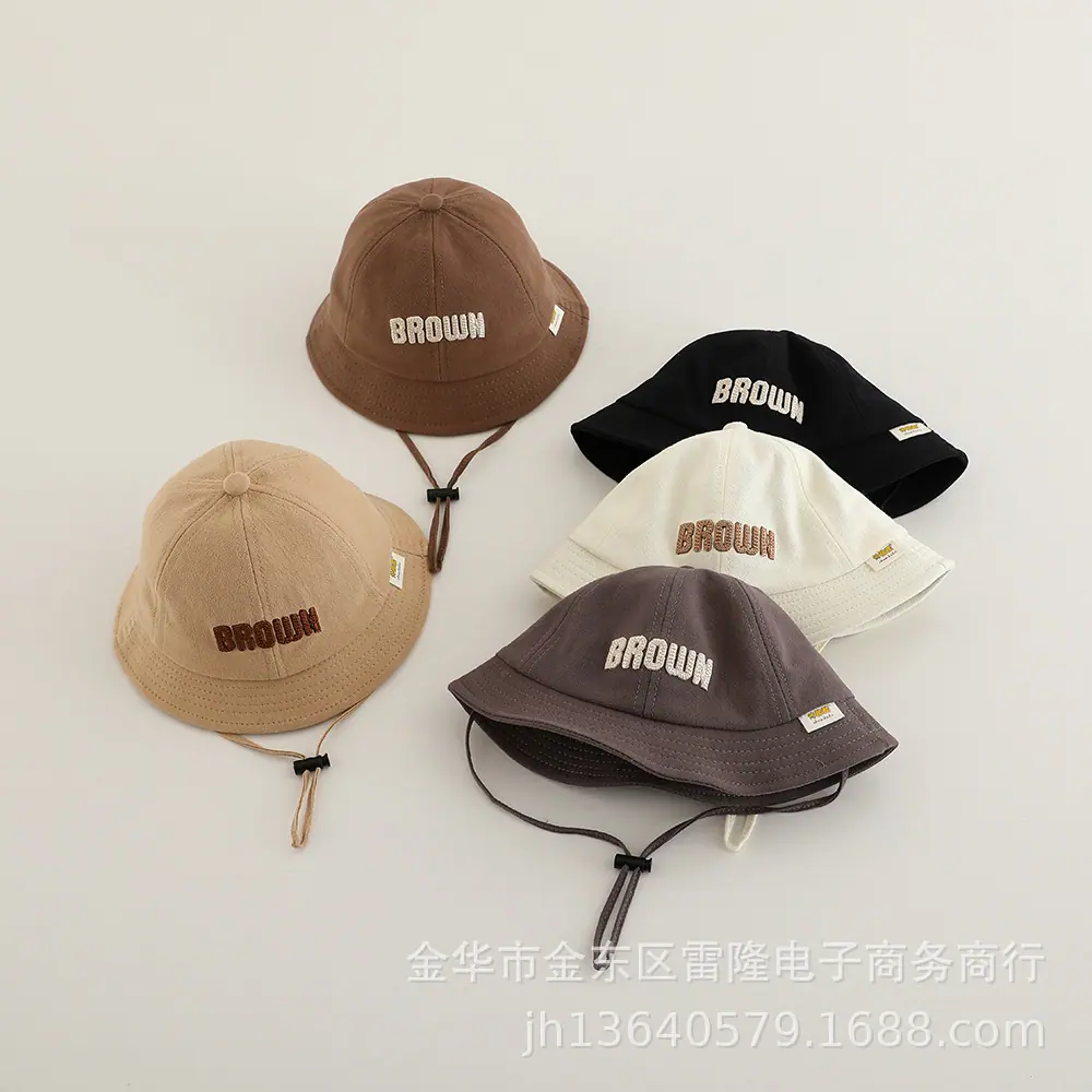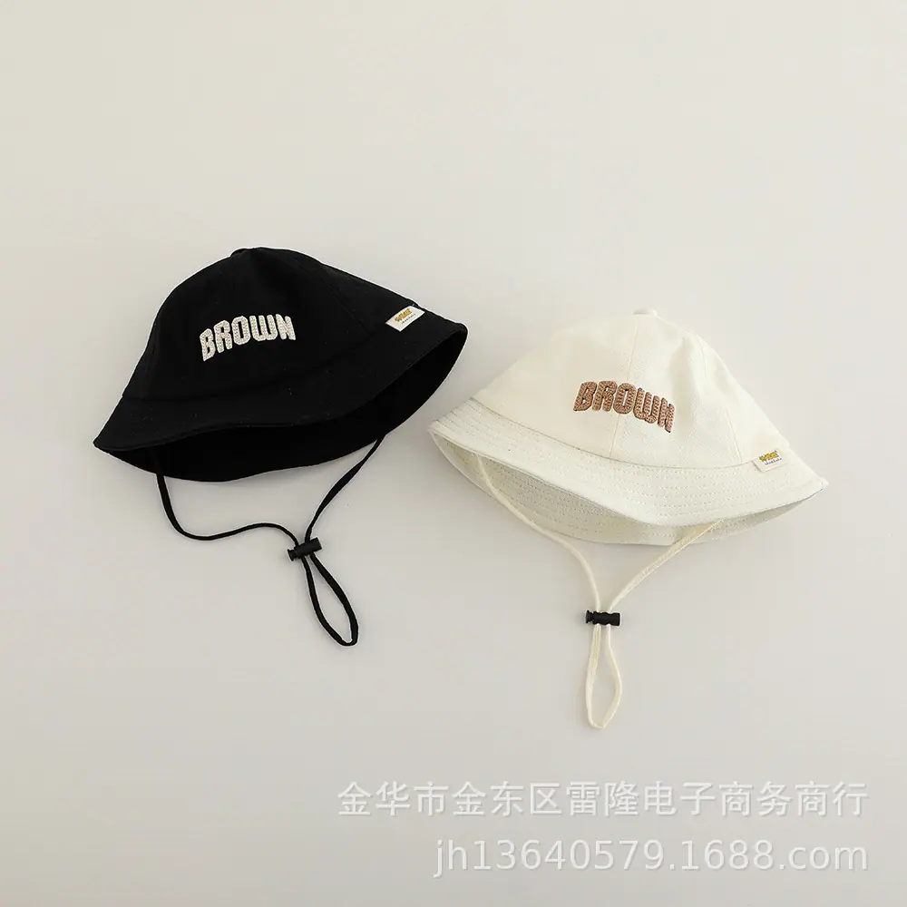 Sombrero de pescador bordado con letras para niños, nuevo para primavera y otoño, de ala ancha, para exteriores, para el sol, sencillo, combina con todo, sombrero de cubo para bebé
