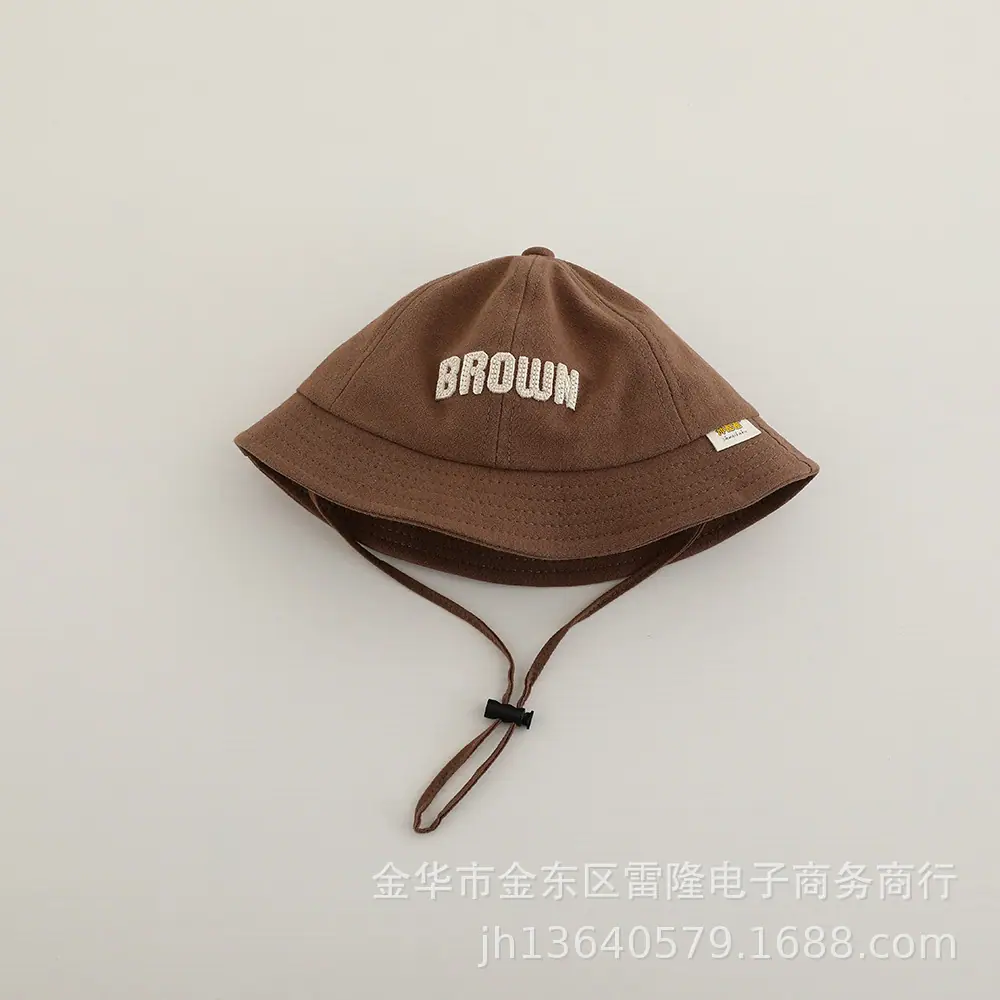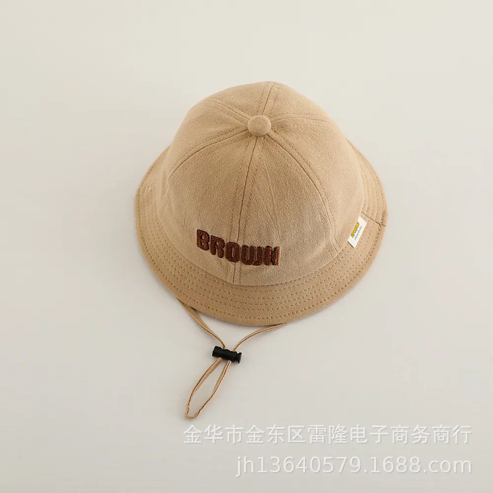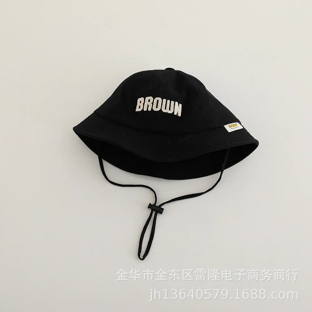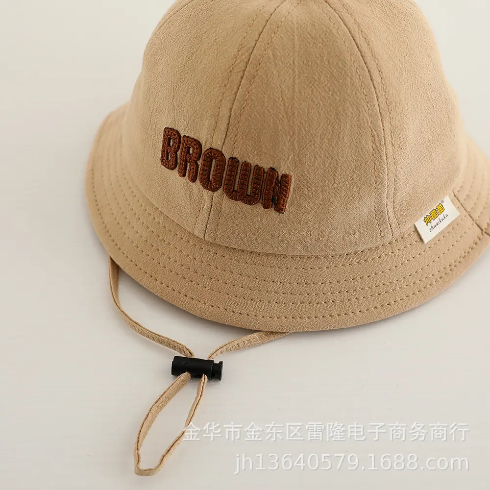 Sombrero de pescador bordado con letras para niños, nuevo para primavera y otoño, de ala ancha, para exteriores, para el sol, sencillo, combina con todo, sombrero de cubo para bebé