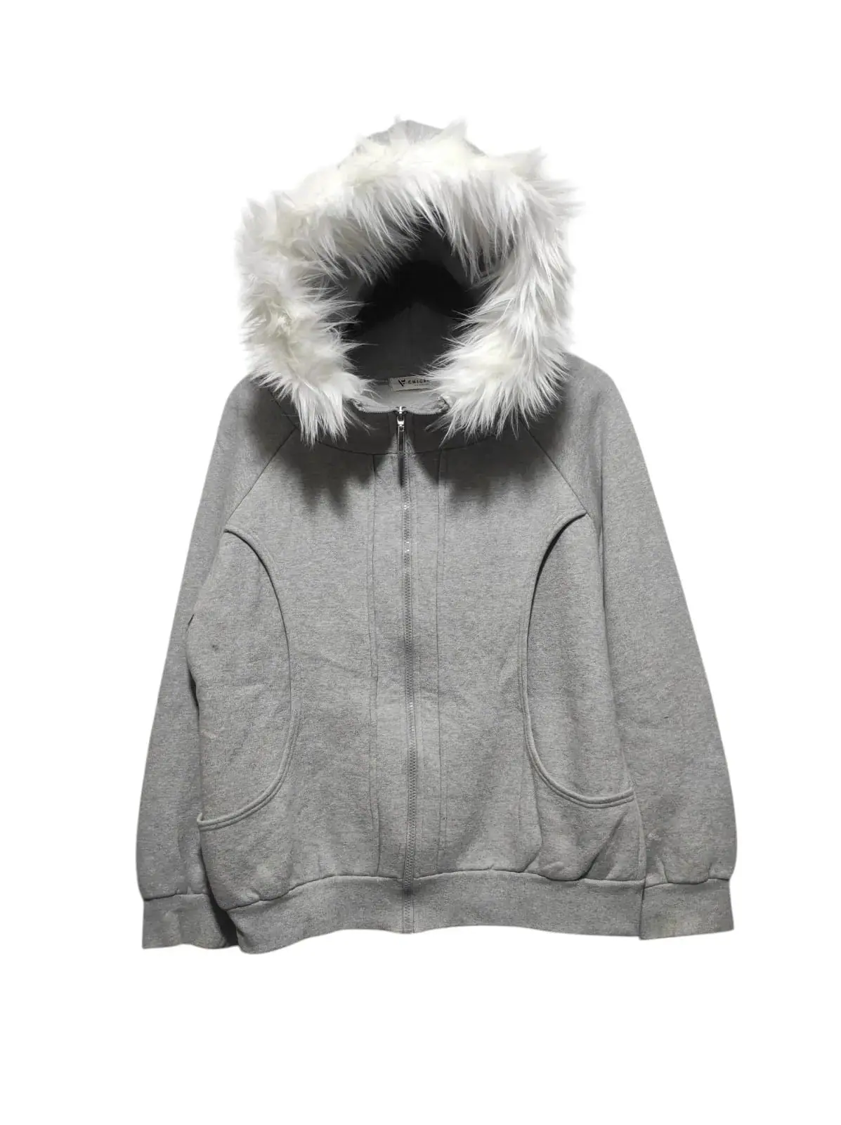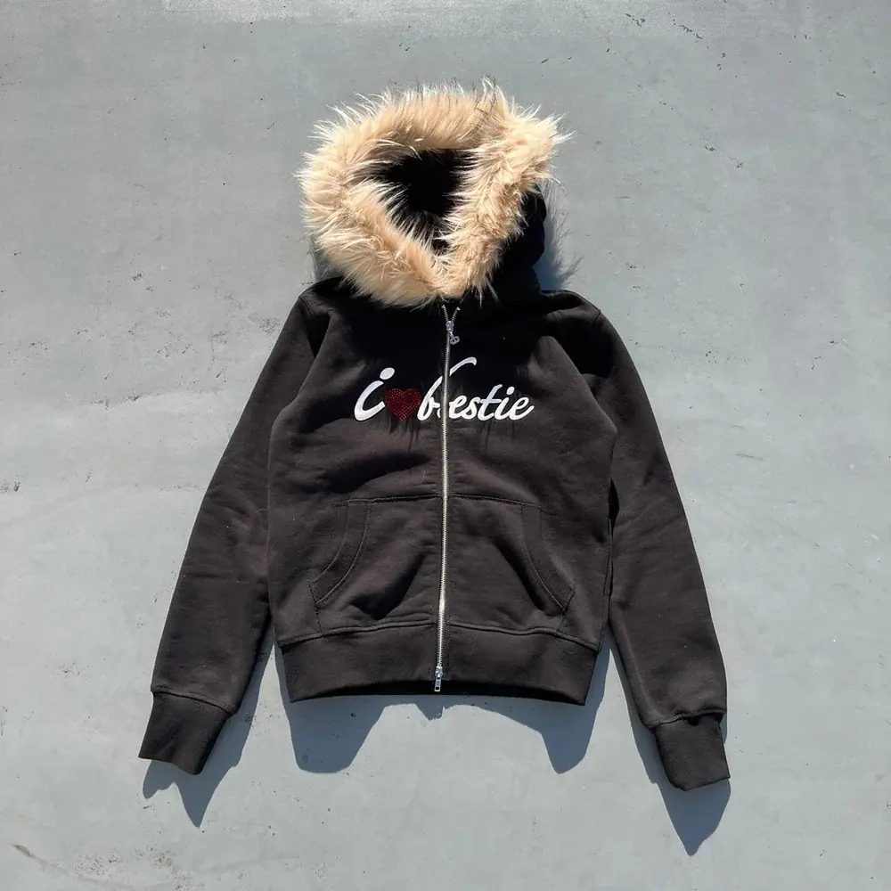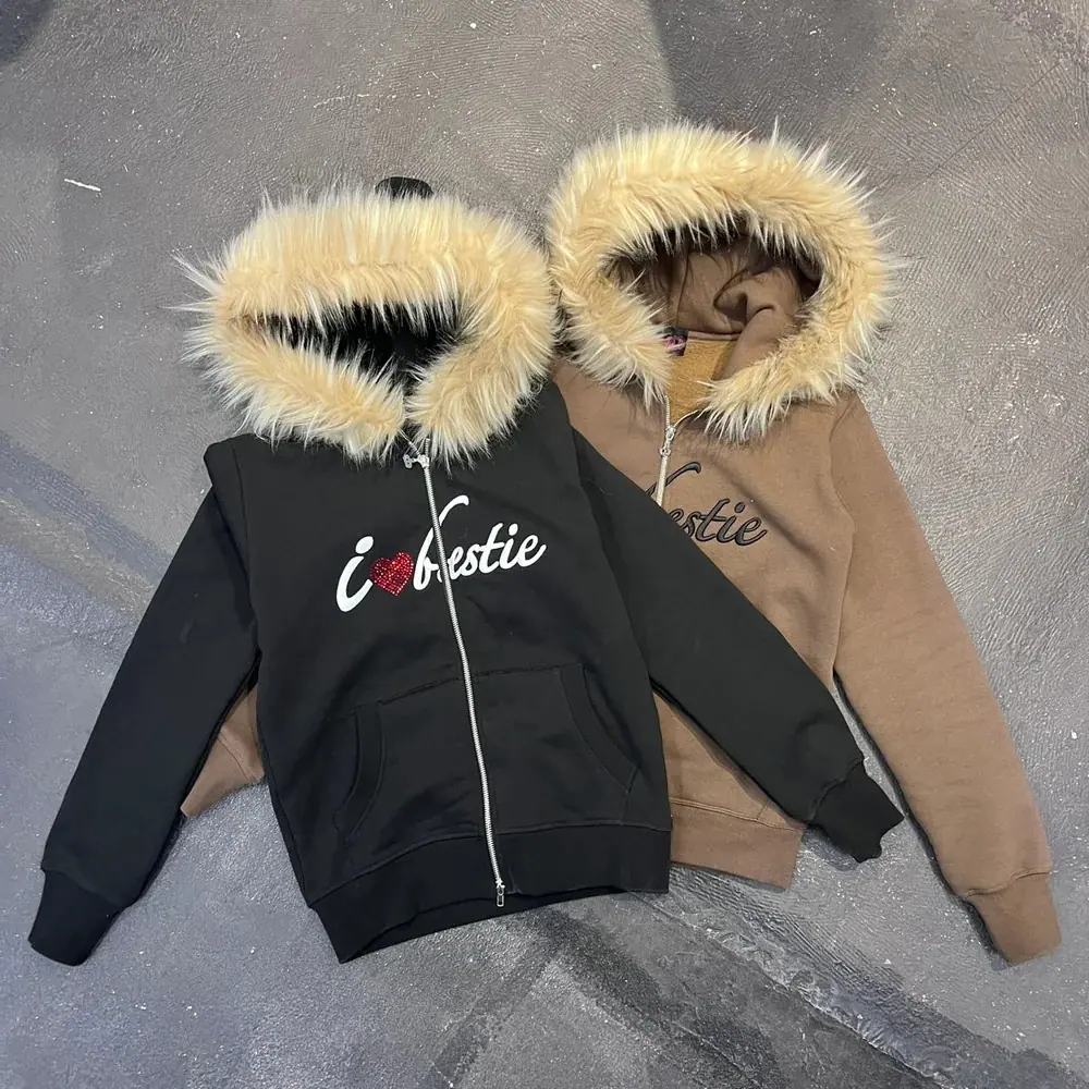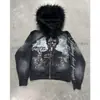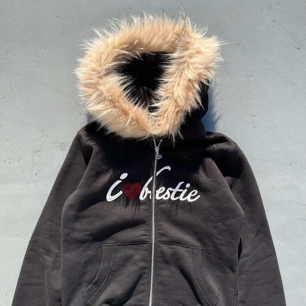 Sudadera con capucha y cremallera con estampado de cuello de piel sintética al por mayor europea y americana de manga larga transfronteriza Sudadera con capucha Chaqueta retro Tendencia callejera y2k