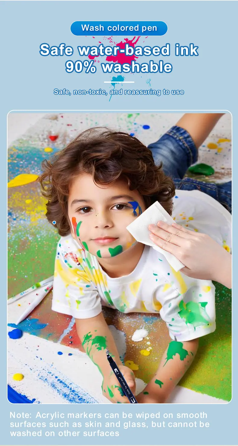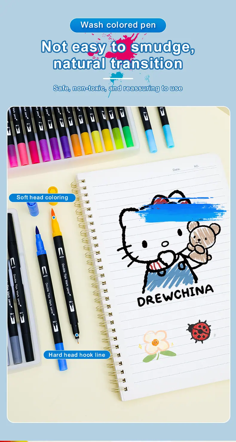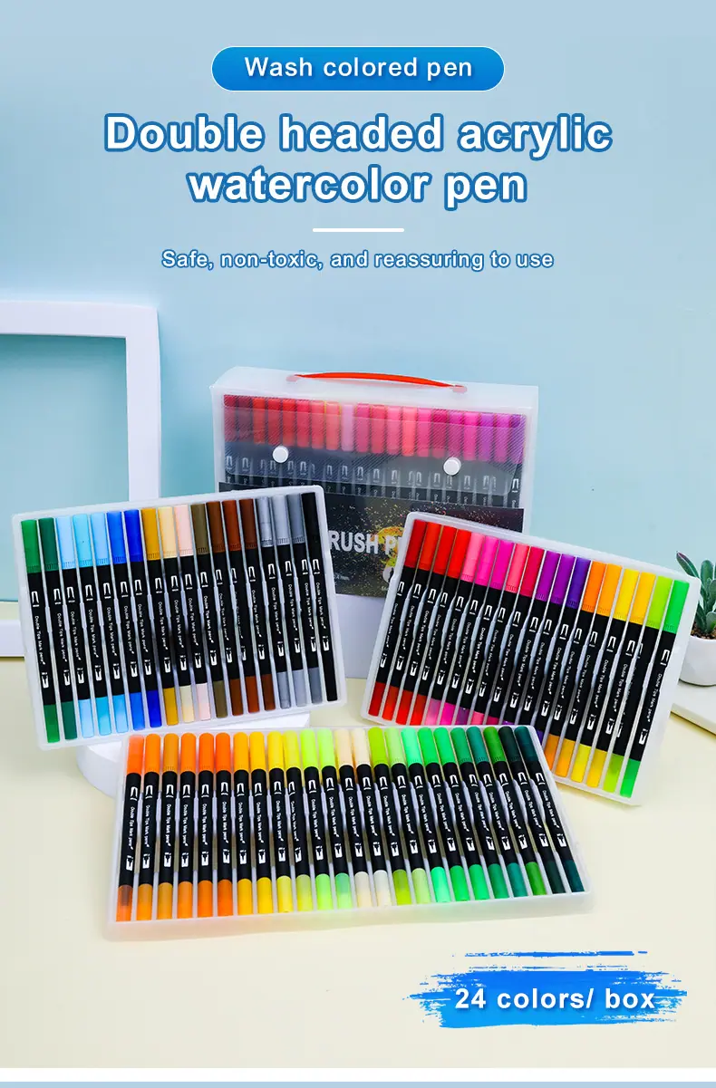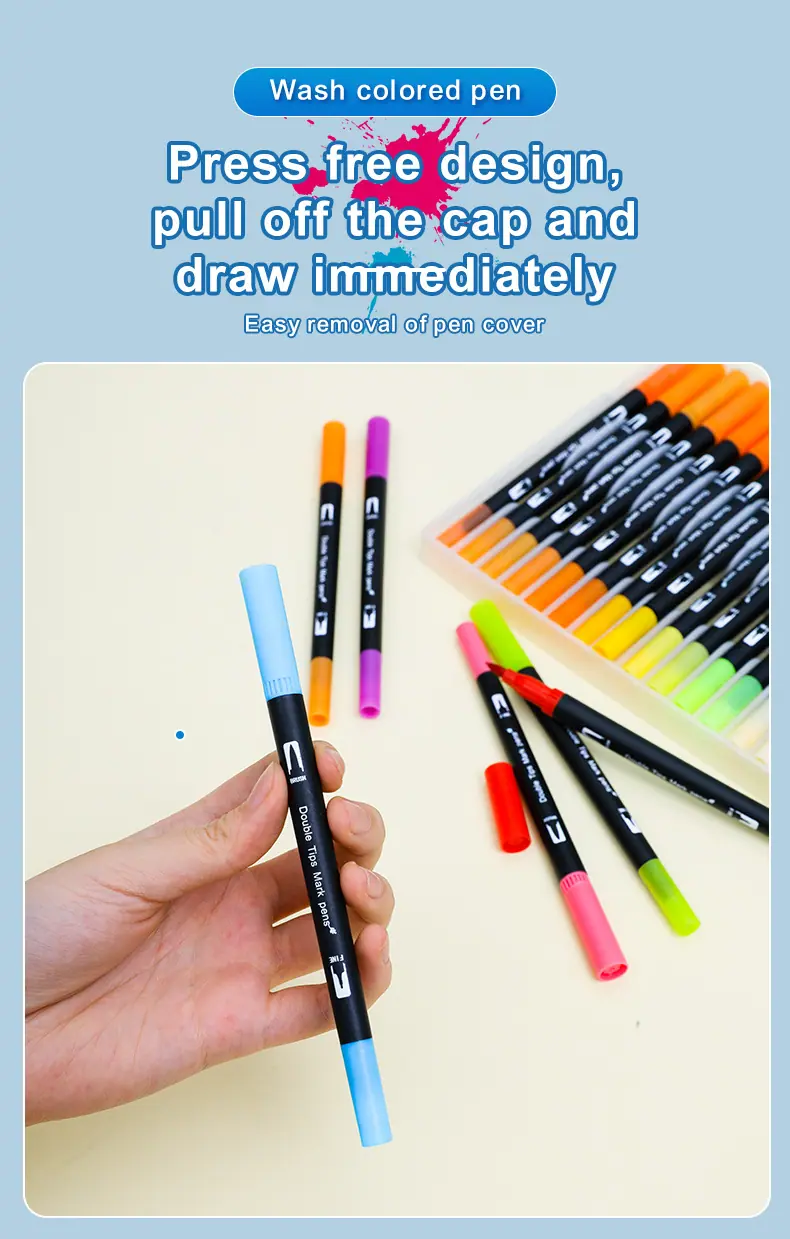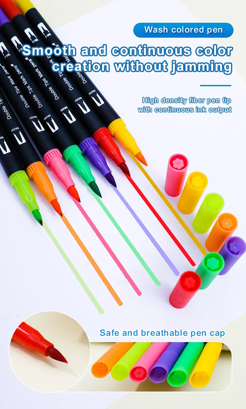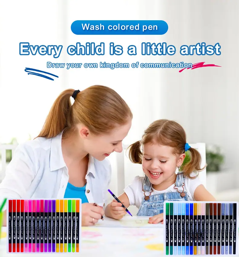 Amazon Xiyin Tm Pluma Acuarelable de Doble Punta Marcador de Punta Suave Multi-Especificación Lavable para Niños Pluma de Arte Colorida