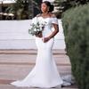 Vestidos de Noiva Brancos de Sereia para Noiva Negra Gola Transparente Contas de Pérolas Cetim Jardim Africano Noiva