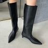 Botas Anchas de Punta Aguda Estilo Nuevo Otoño e Invierno, Botas de Caballero de Tacón de Gato Hasta la Rodilla, Botas de Moda, Botas de Mujer de Color Sólido
