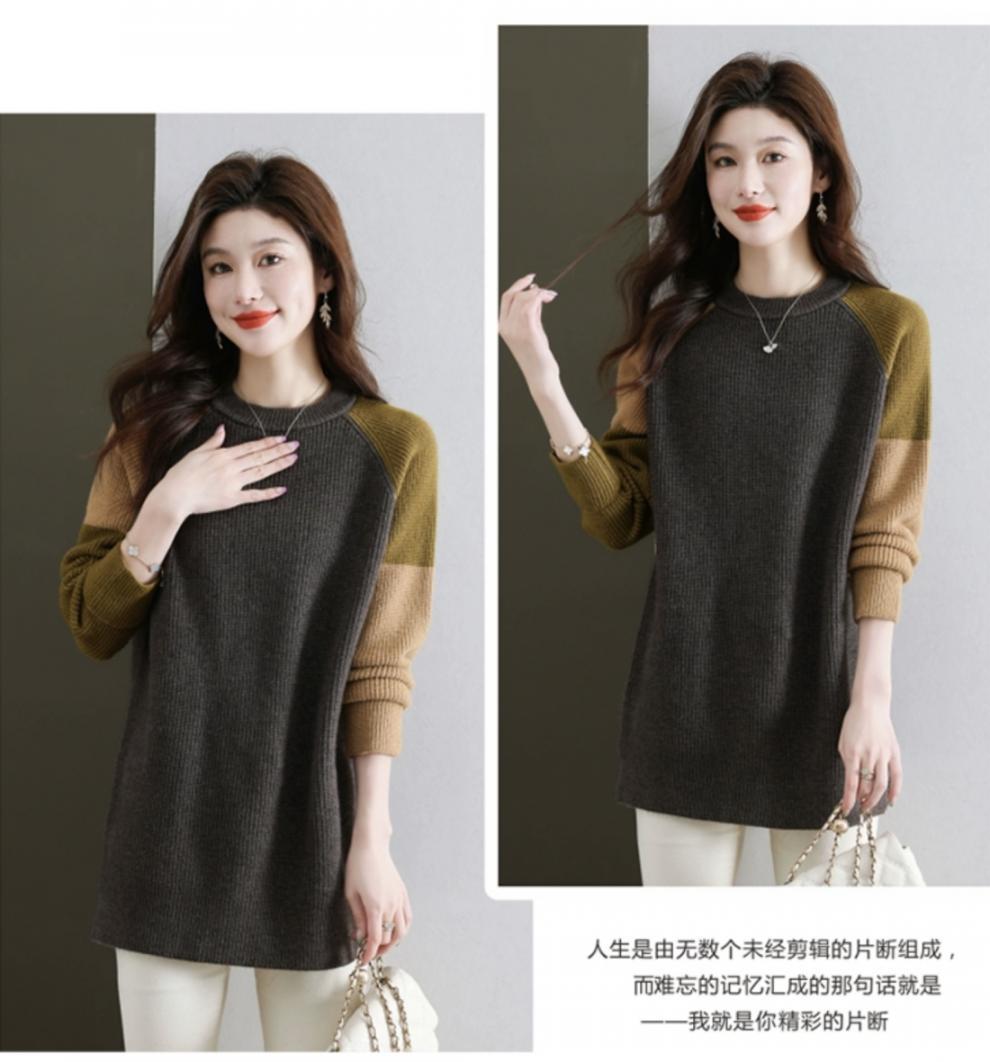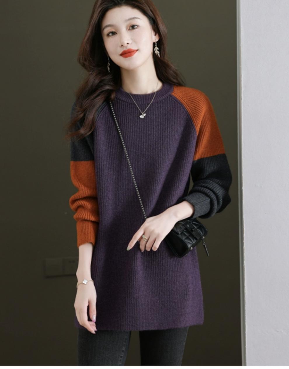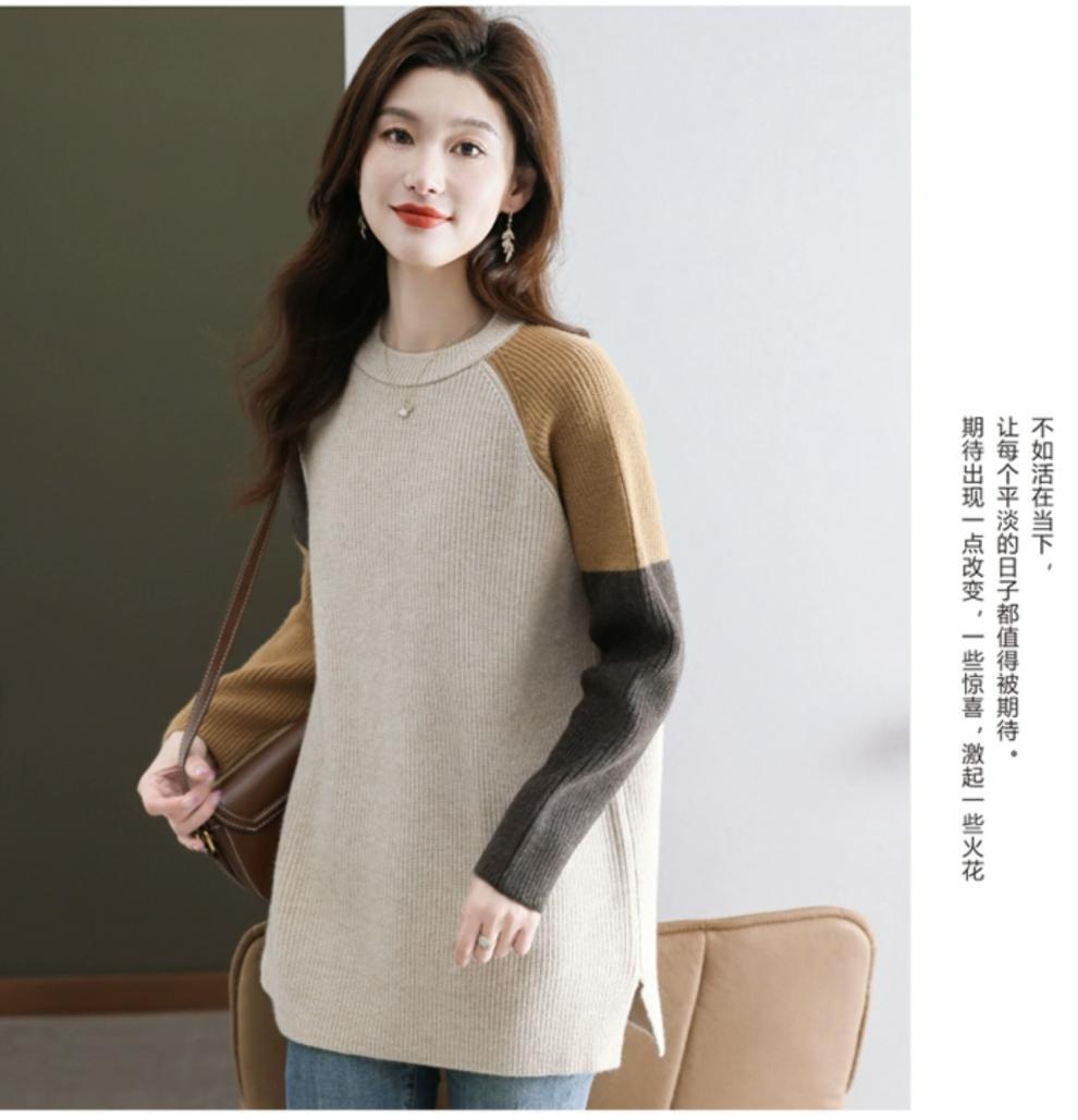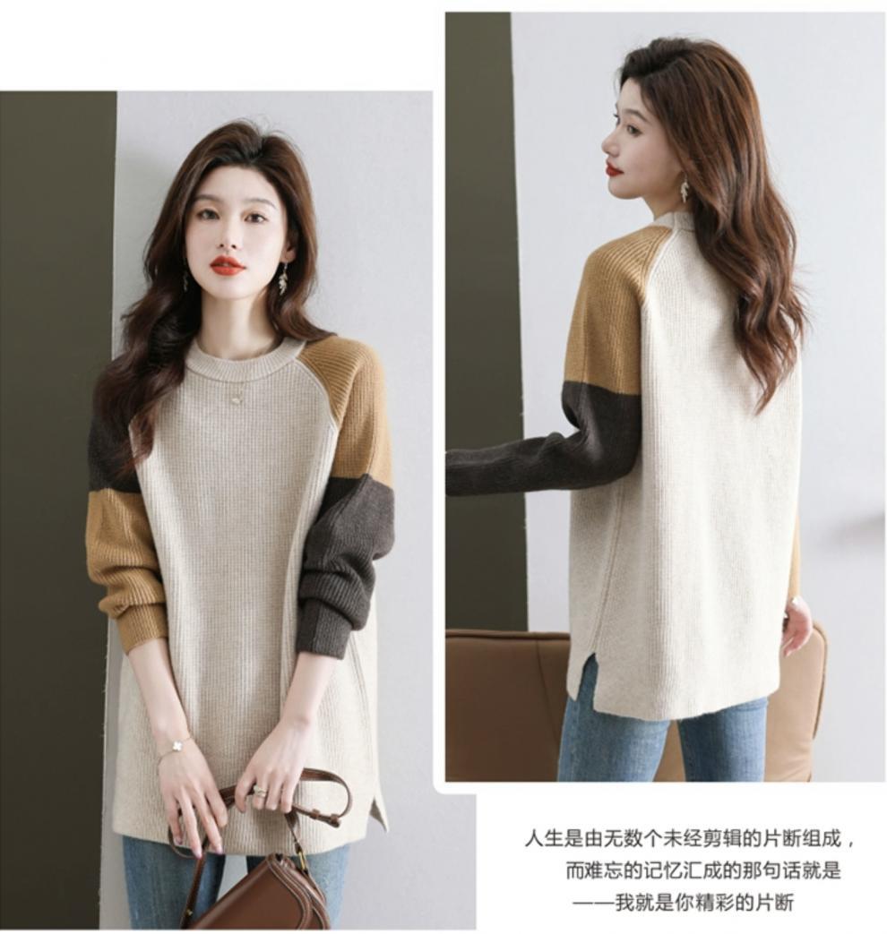 Compra Suéteres Nuevos de Otoño e Invierno 2025 para Mujer, Suéteres de Largo Medio con Bloques de Color a la Moda, Suéteres Holgados para Capas Interiores, Tops de Suéter, Modernos al por mayor en Joom.pro