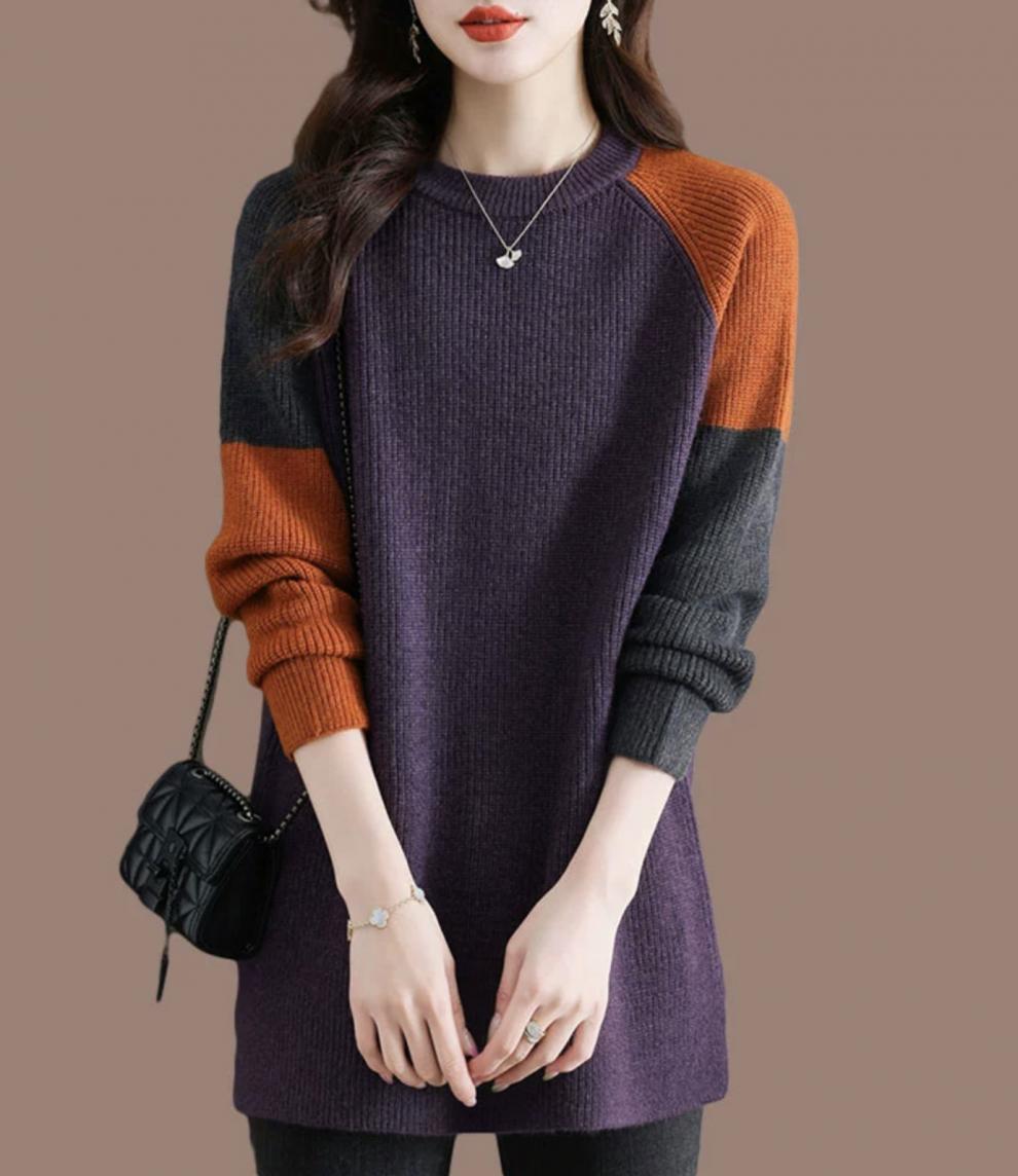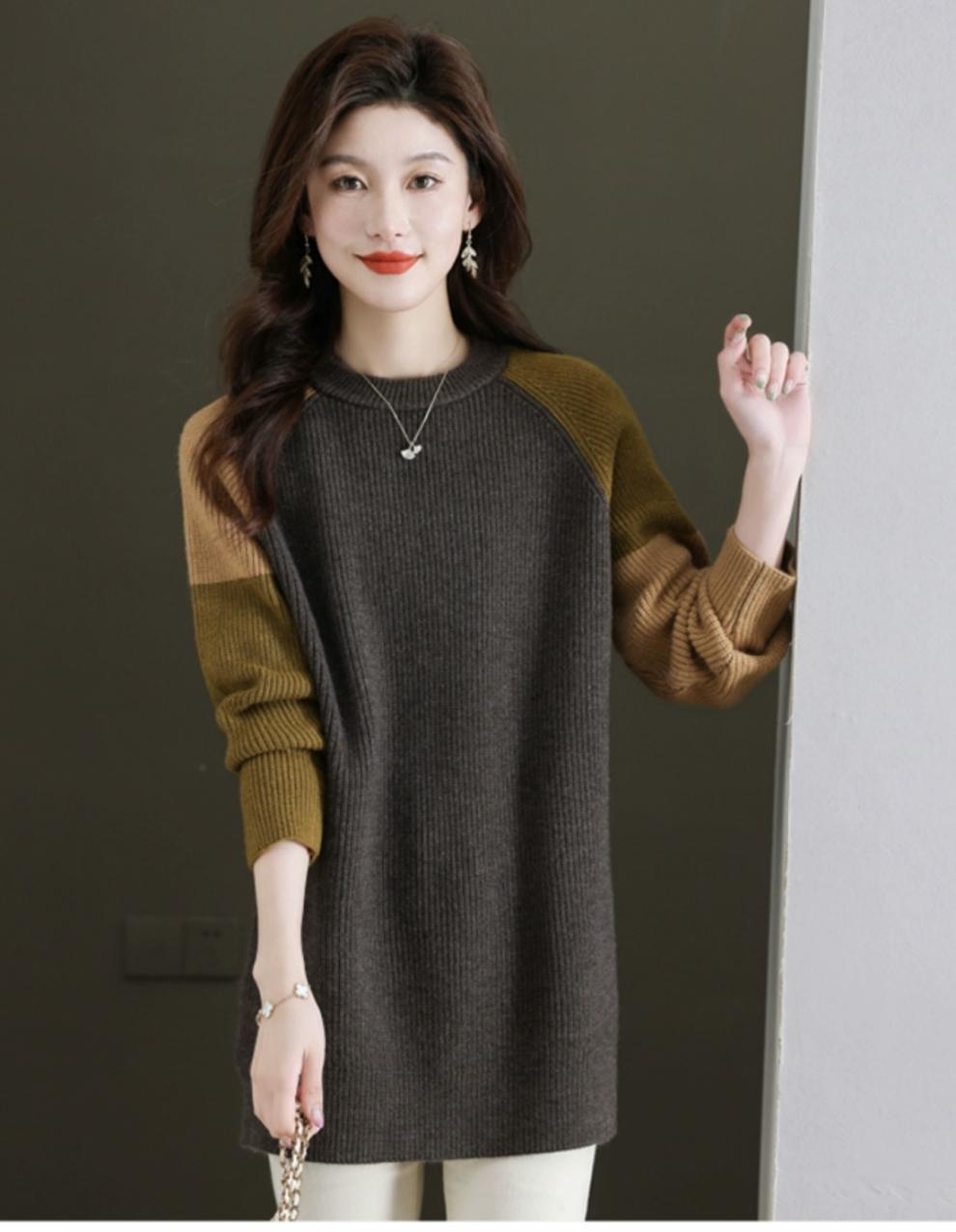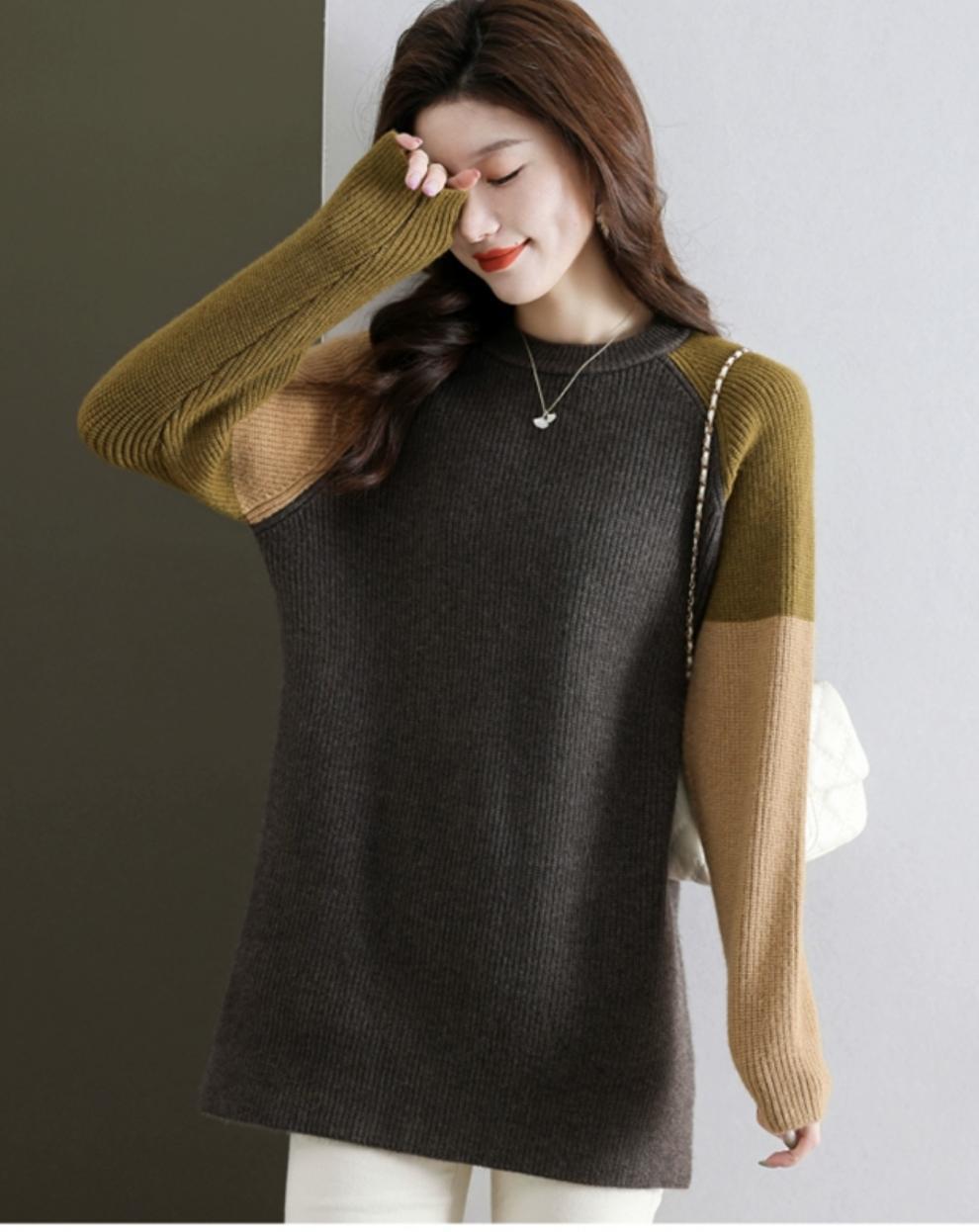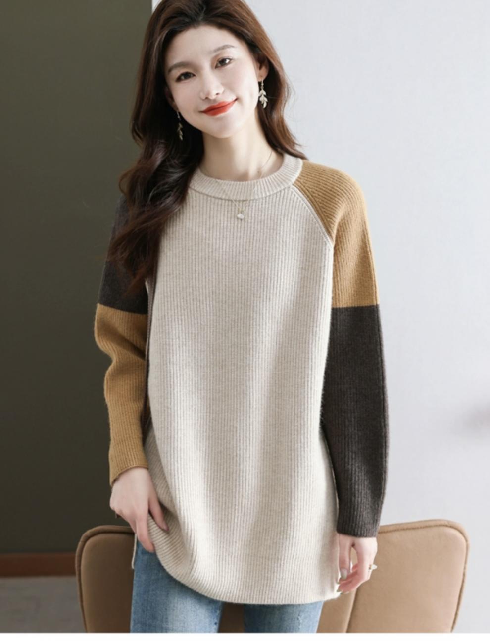 Compra Suéteres Nuevos de Otoño e Invierno 2025 para Mujer, Suéteres de Largo Medio con Bloques de Color a la Moda, Suéteres Holgados para Capas Interiores, Tops de Suéter, Modernos al por mayor en Joom.pro
