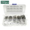 200 piezas en caja de acero inoxidable 304 circlip tipo e anillo de retención abierto 1.5mm-10mm anillo de fijación para eje de montaje