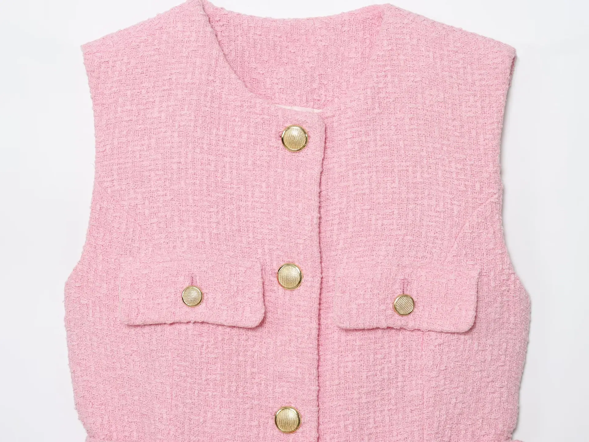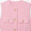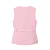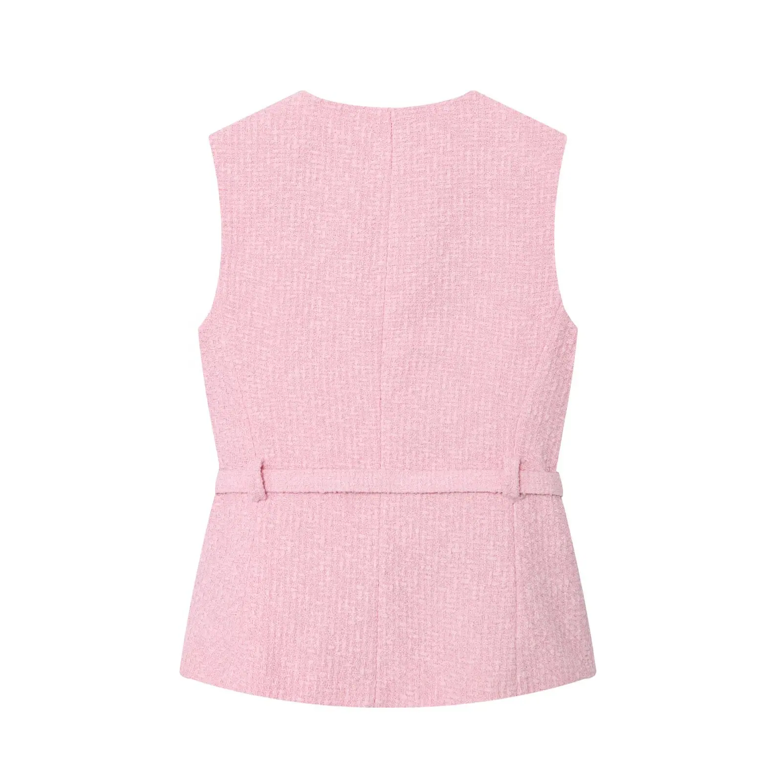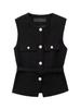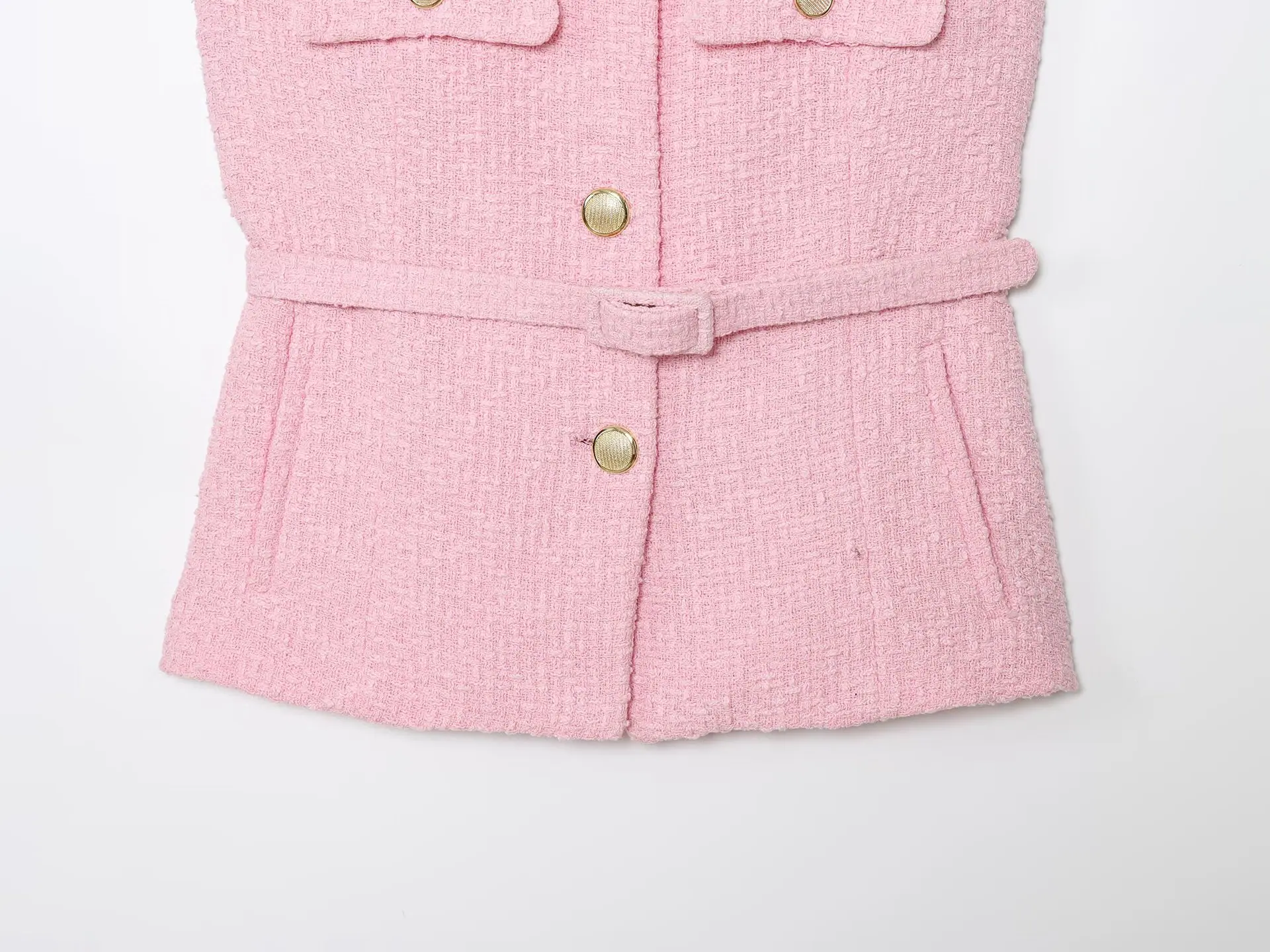 Nuevo Otoño 2025 Europeo y Americano Transfronterizo para Mujer Chaleco con Bolsillos Exterior sin Mangas con Cinturón Ajustado a la Cintura Tejido Grueso