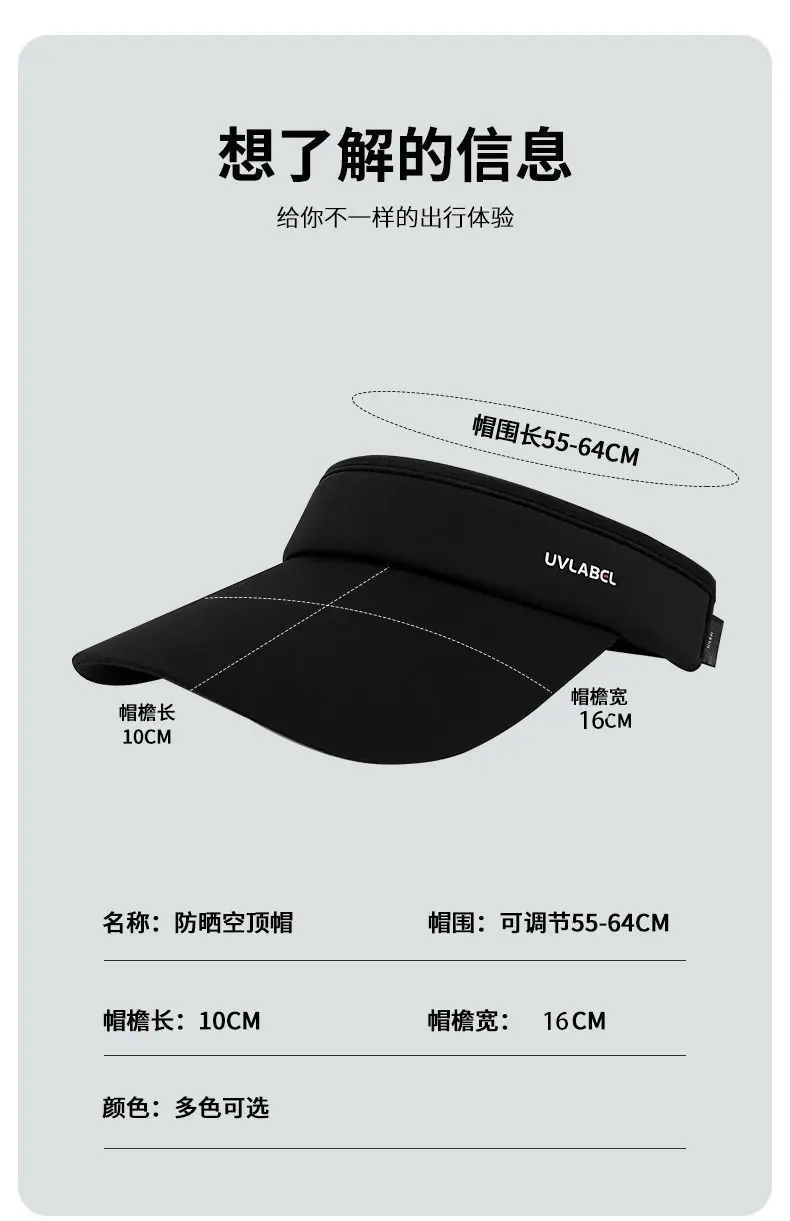 Sombrero de Sol Protección UV Bloqueador Solar Exterior Correr Transpirable Sombrero de Verano Gorra de Verano Sombrero de Copa Vacío Unisex