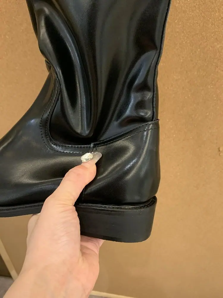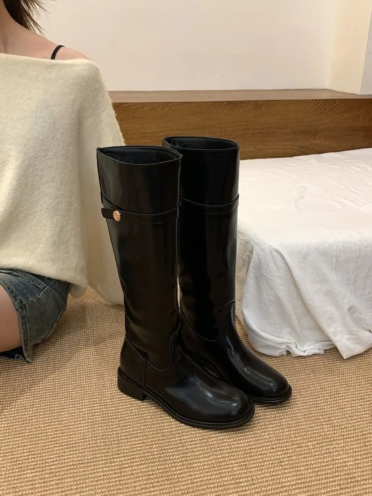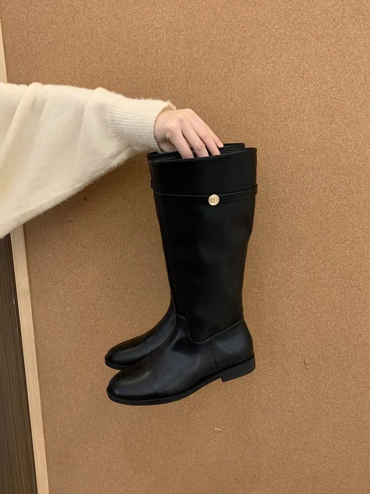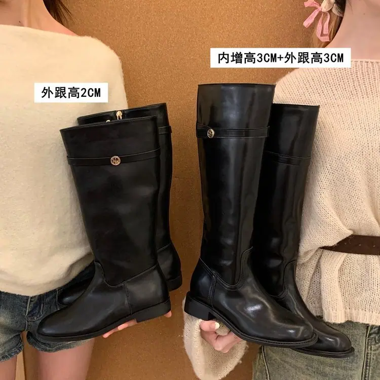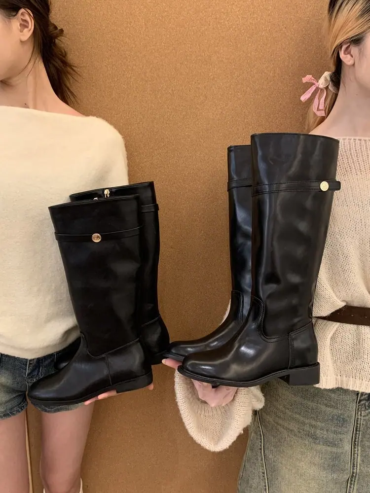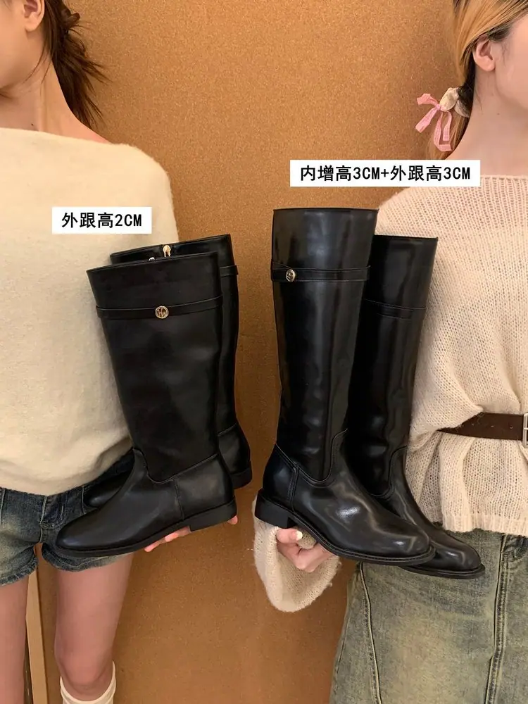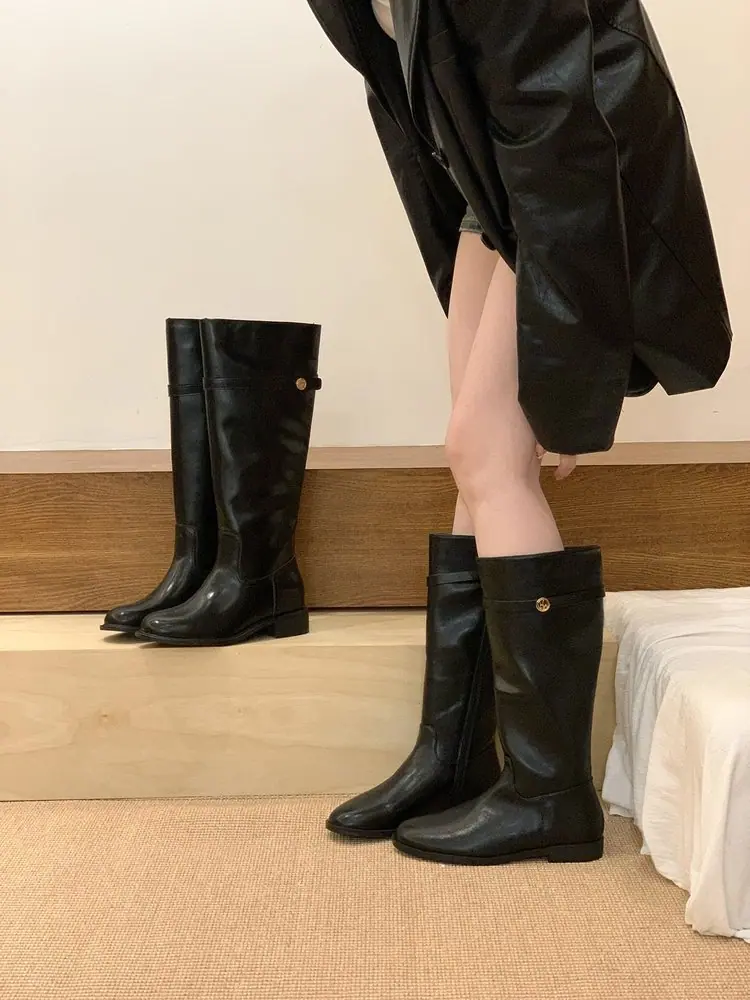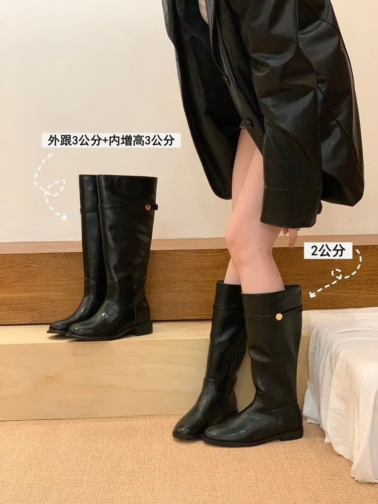 Rincón París~! Botas de Caballero de Media Caña con Tacón Grueso y Suela Gruesa con Moneda Dorada para Mujer Otoño Invierno Botas Altas Botas Largas