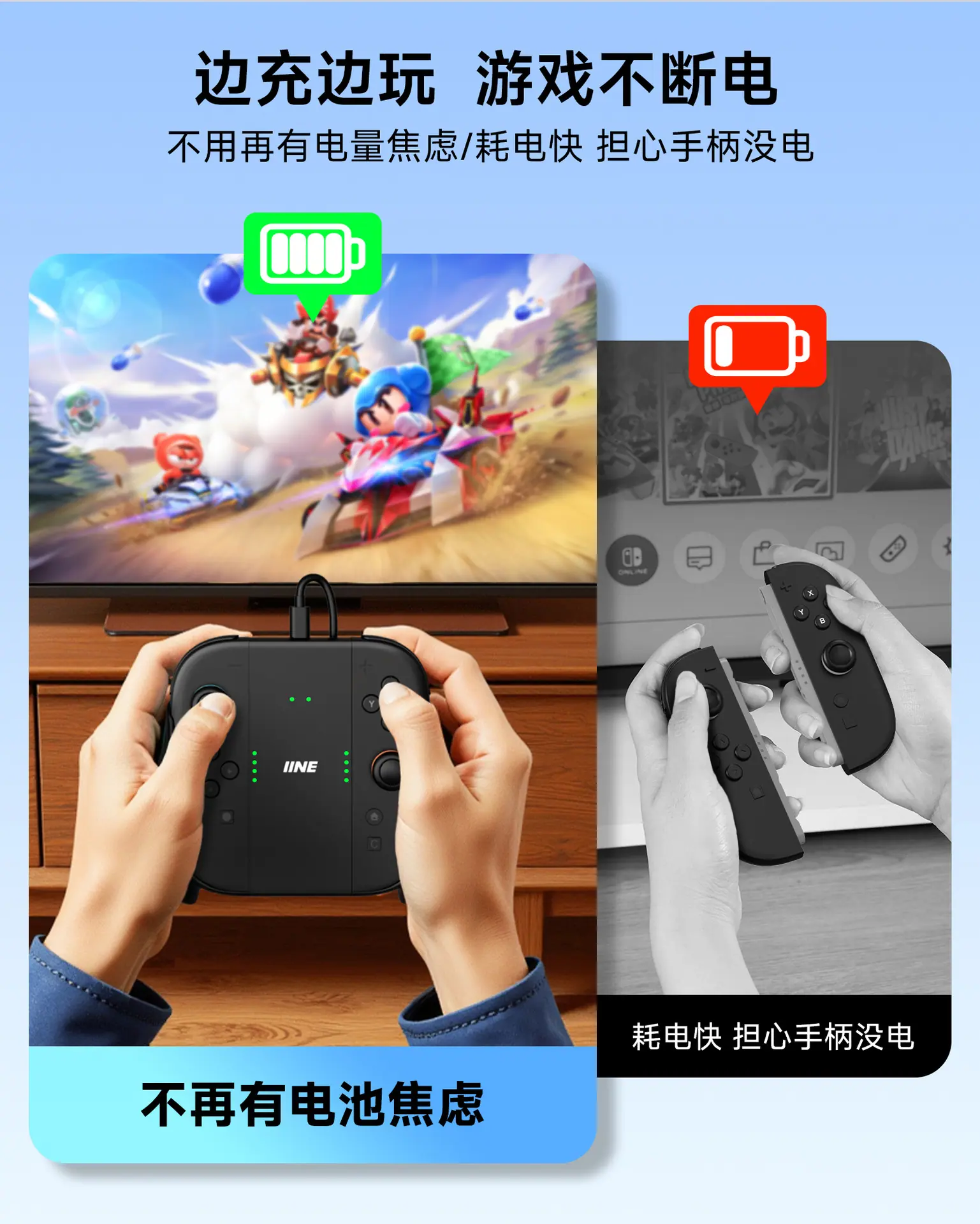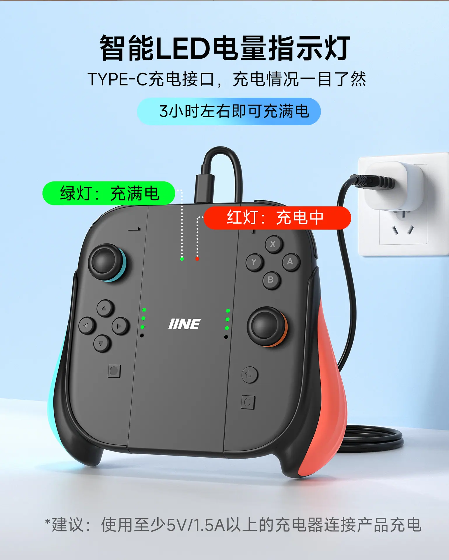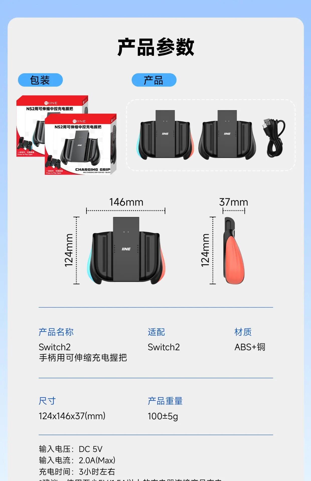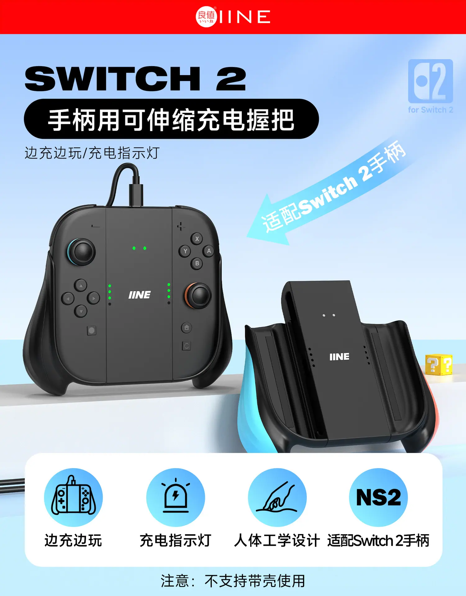 IINE Suitable for Nintendo Switch 2 Controller Charging Grip Extendable Handle Split Joy-Con Charger Left and Right Brackets