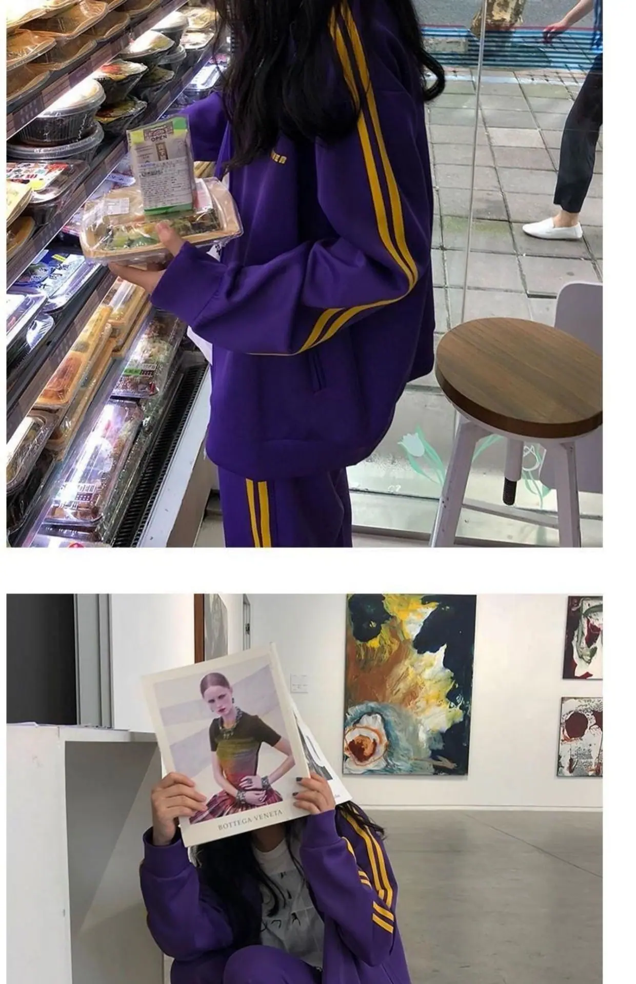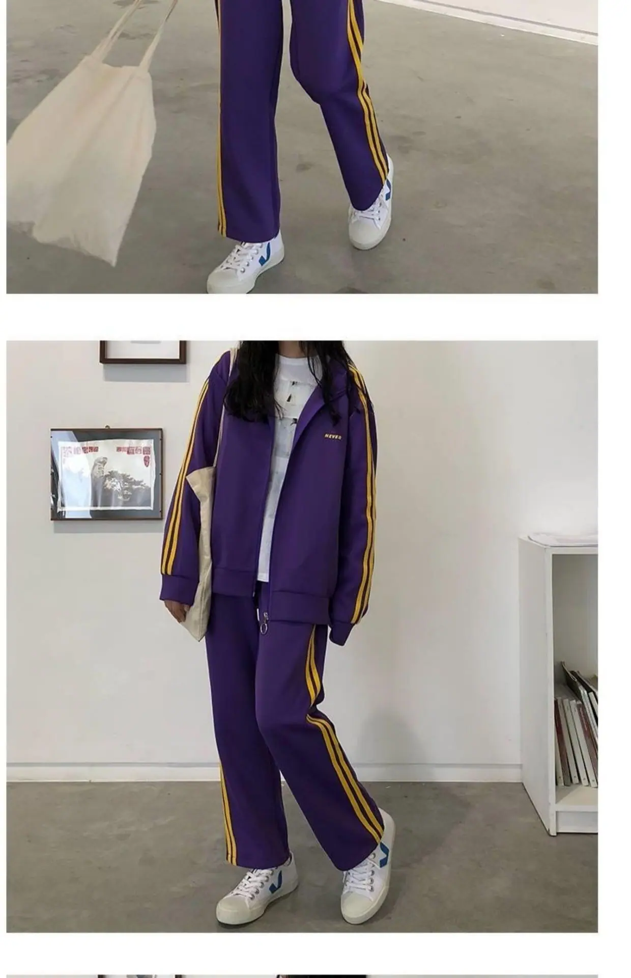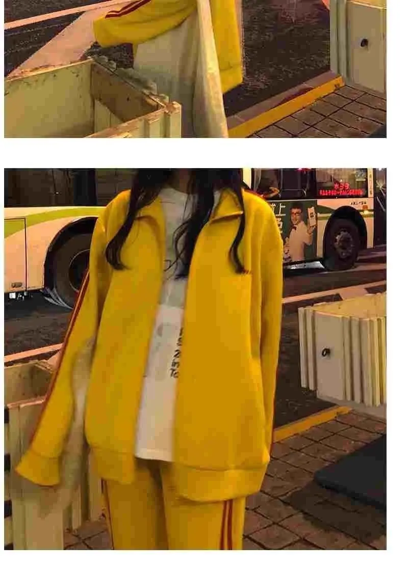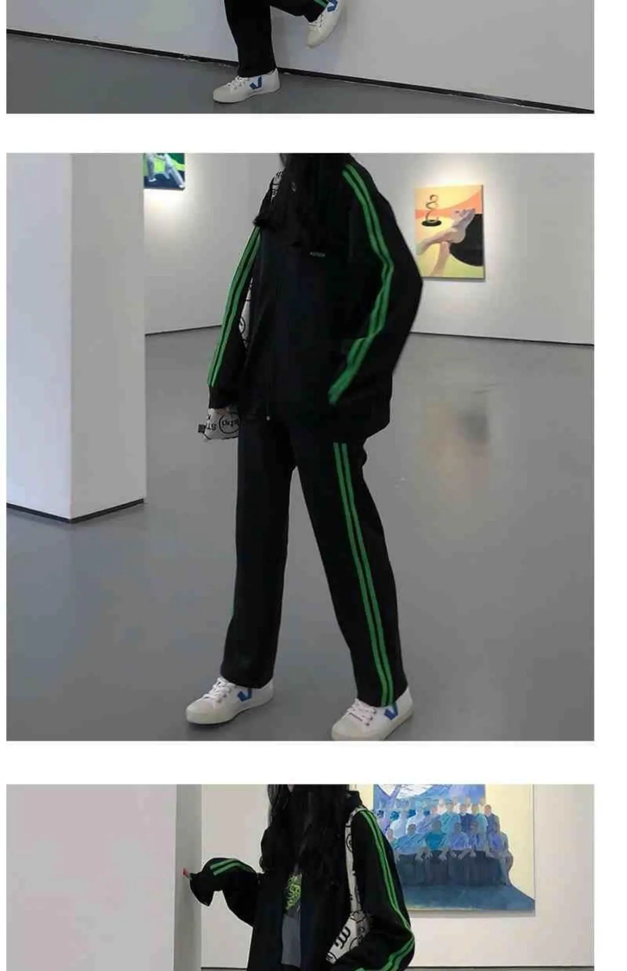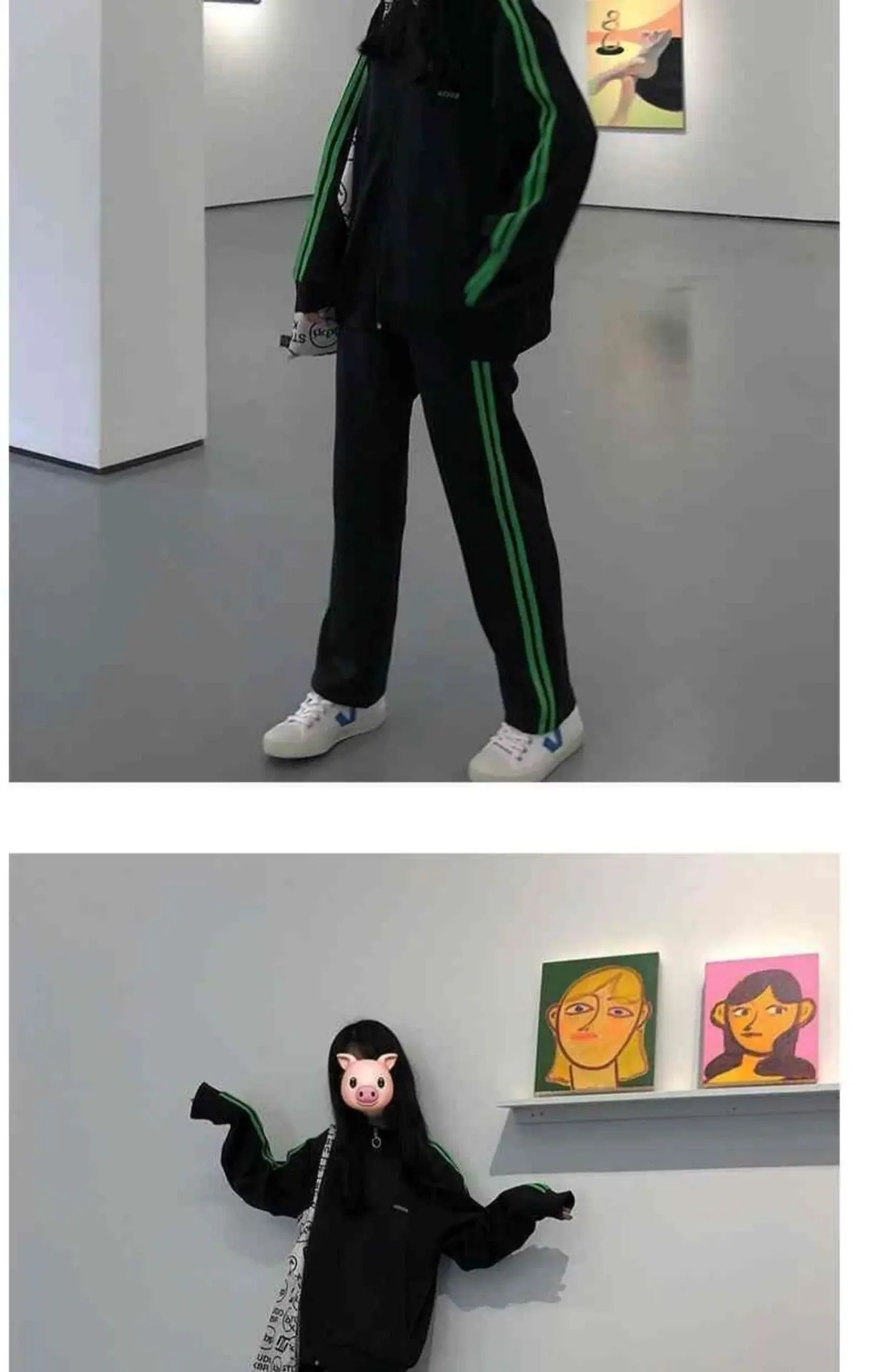 Conjunto de Ropa Deportiva de Moda para Mujer Primavera y Otoño Estación Europea Transfronterizo Nuevo Estudiante Chaqueta Holgada + Pantalones Largos Casuales Conjunto de Dos Piezas