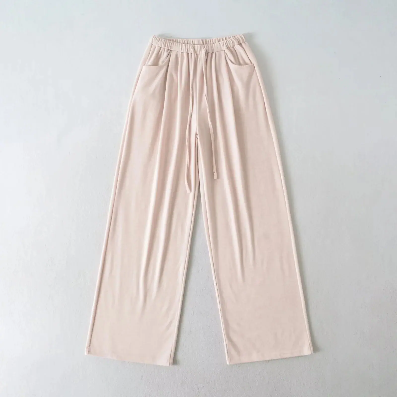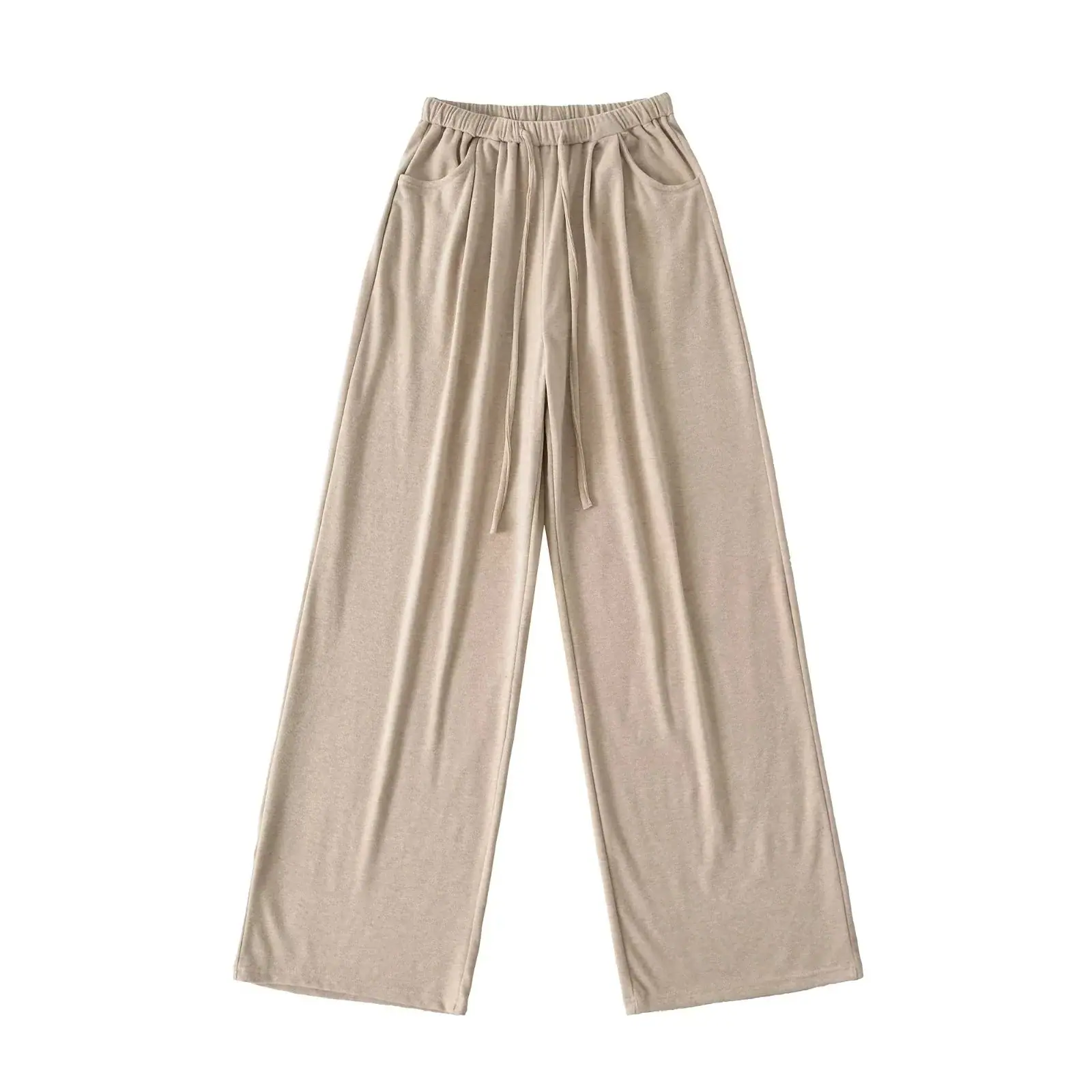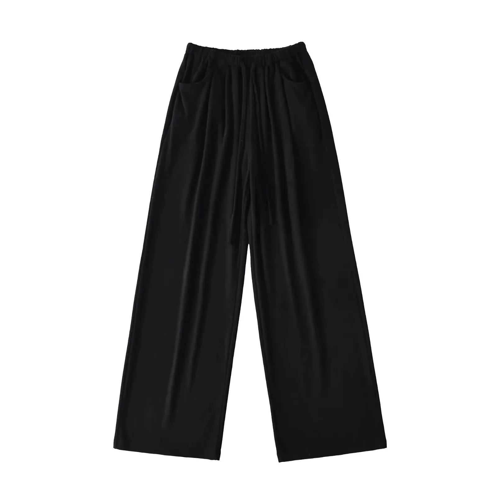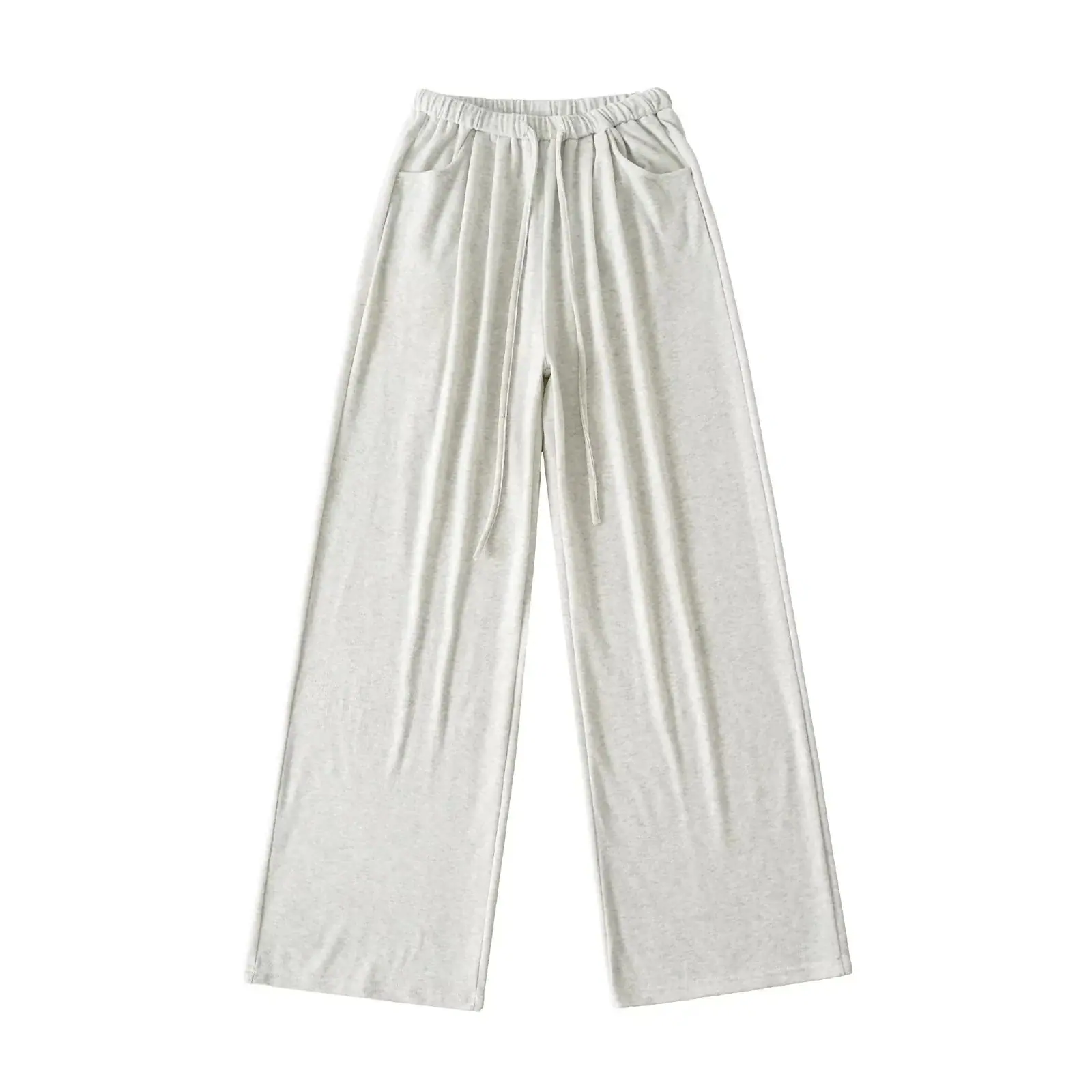 Pantalones Casuales Americanos de Cintura Alta Mujer 2025 Primavera y Otoño Nuevo Suelto Adelgazante Gris Pantalones de Pierna Ancha Pantalones Casuales Rectos Hasta el Piso
