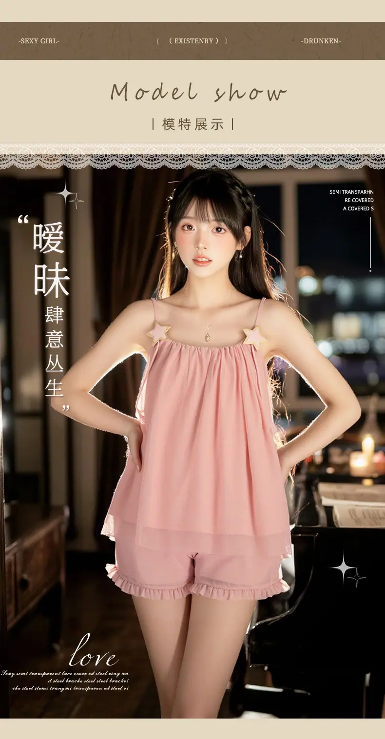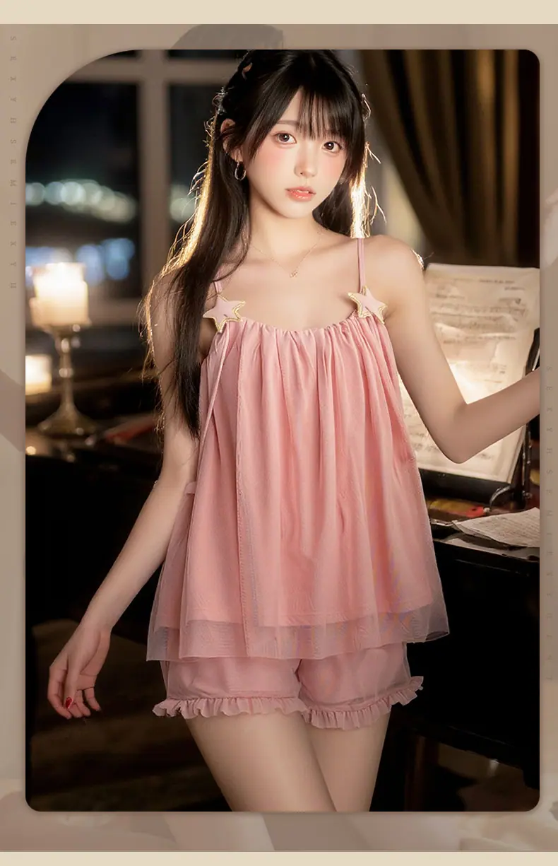 Ropa de Muñeca Amor Dulce Súper Hada Malla Camisola Shorts Pijama Mujer Verano Estilo Deseo Puro Tian Camisón Midi para Casa