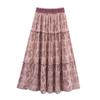 Amazon Ropa de Mujer Venta al por Mayor Verano Nuevo Retro Cintura Elástica Falda con Volantes Estampada Largo Medio