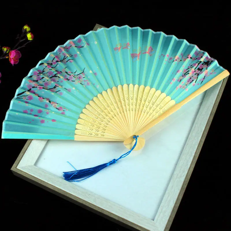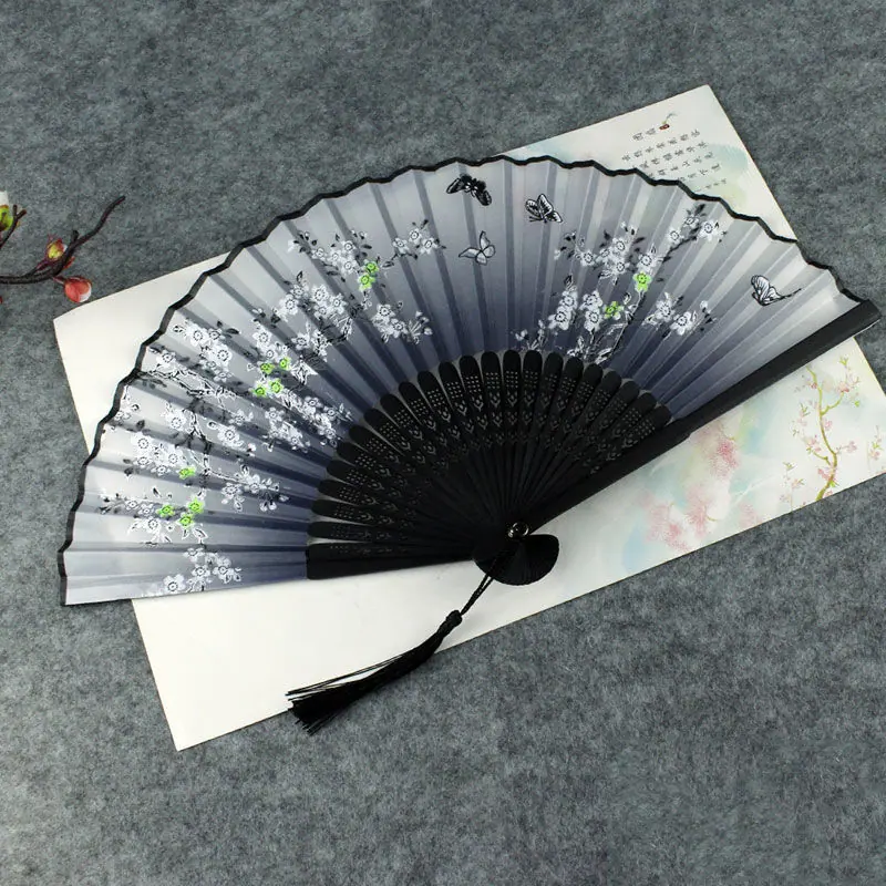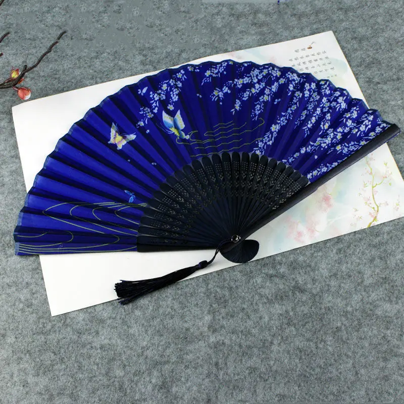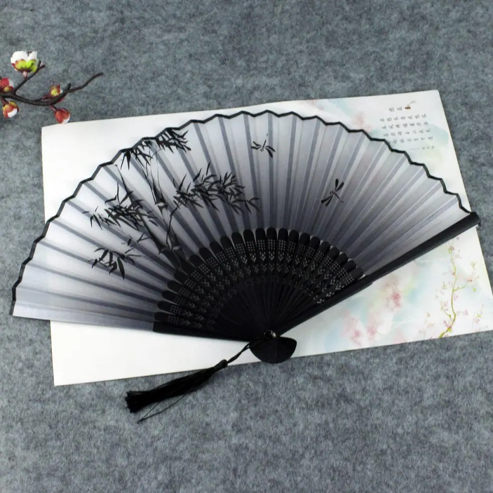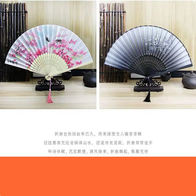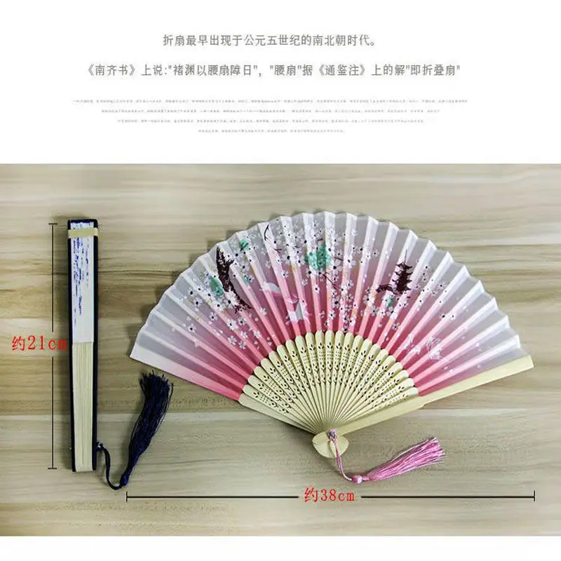 Abanico de danza Hanfu para estudiante de mujer de estilo chino, abanico plegable de verano para mujer, traje antiguo, pequeño abanico plegable retro de tela de estilo antiguo