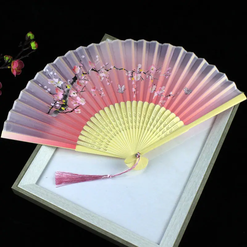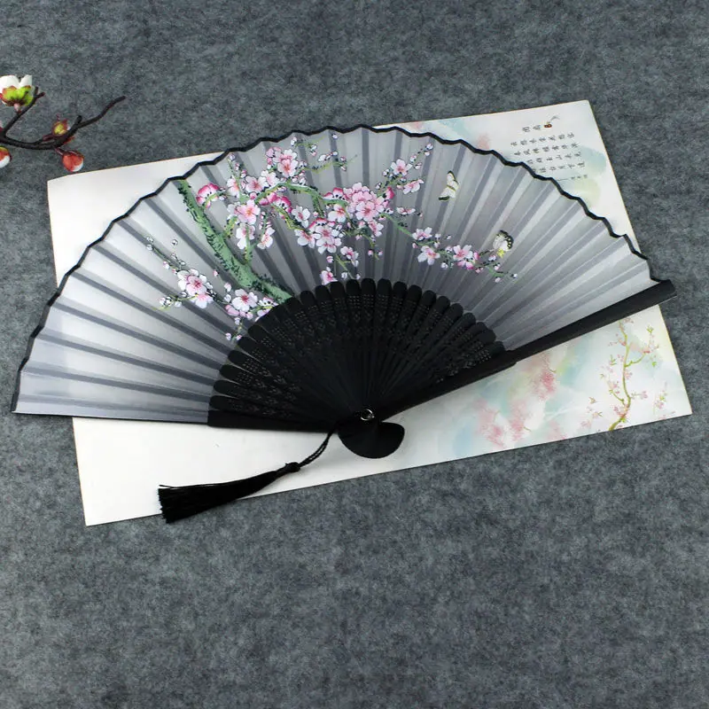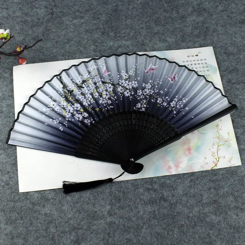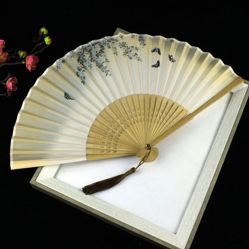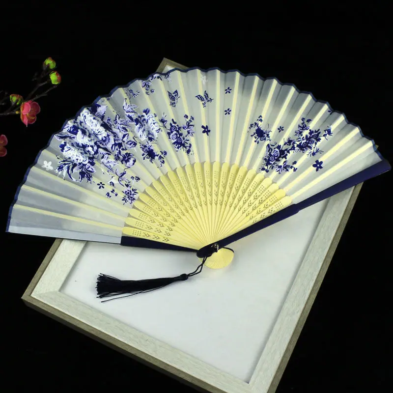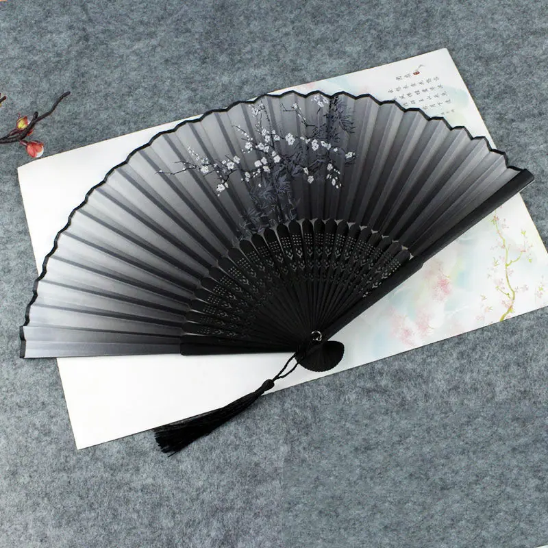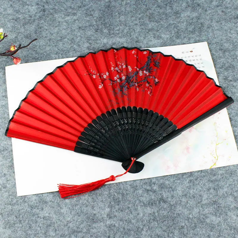 Abanico de danza Hanfu para estudiante de mujer de estilo chino, abanico plegable de verano para mujer, traje antiguo, pequeño abanico plegable retro de tela de estilo antiguo