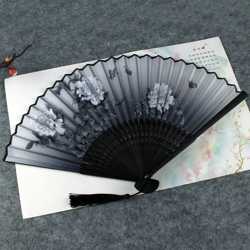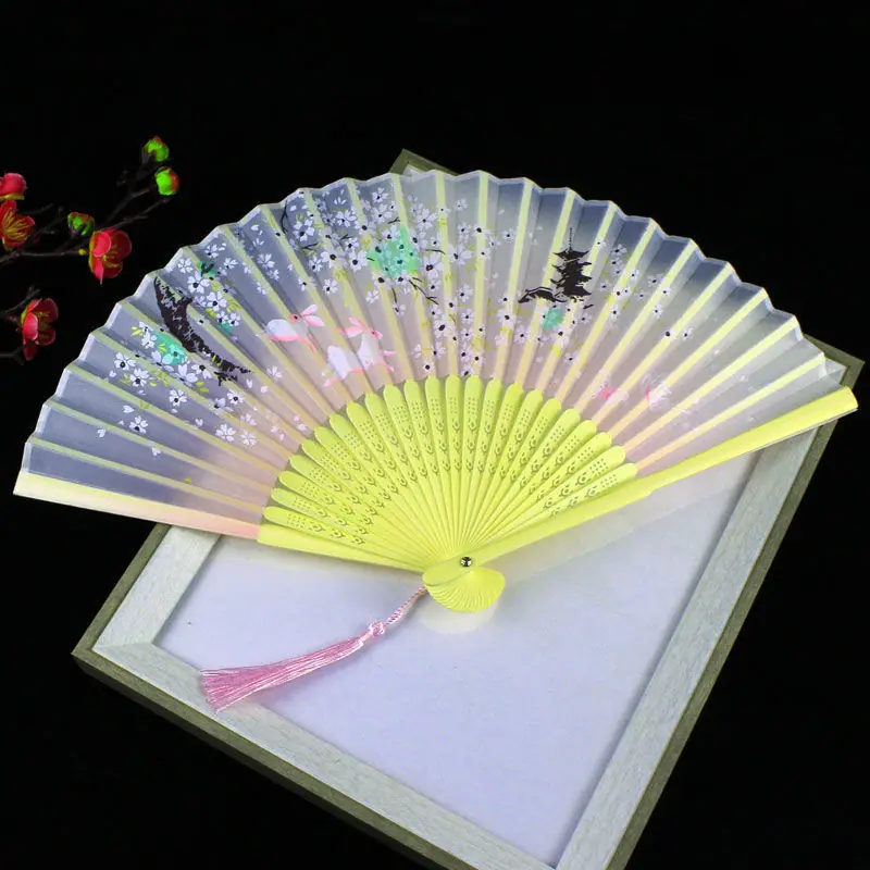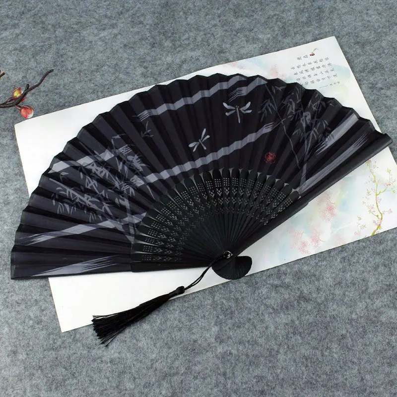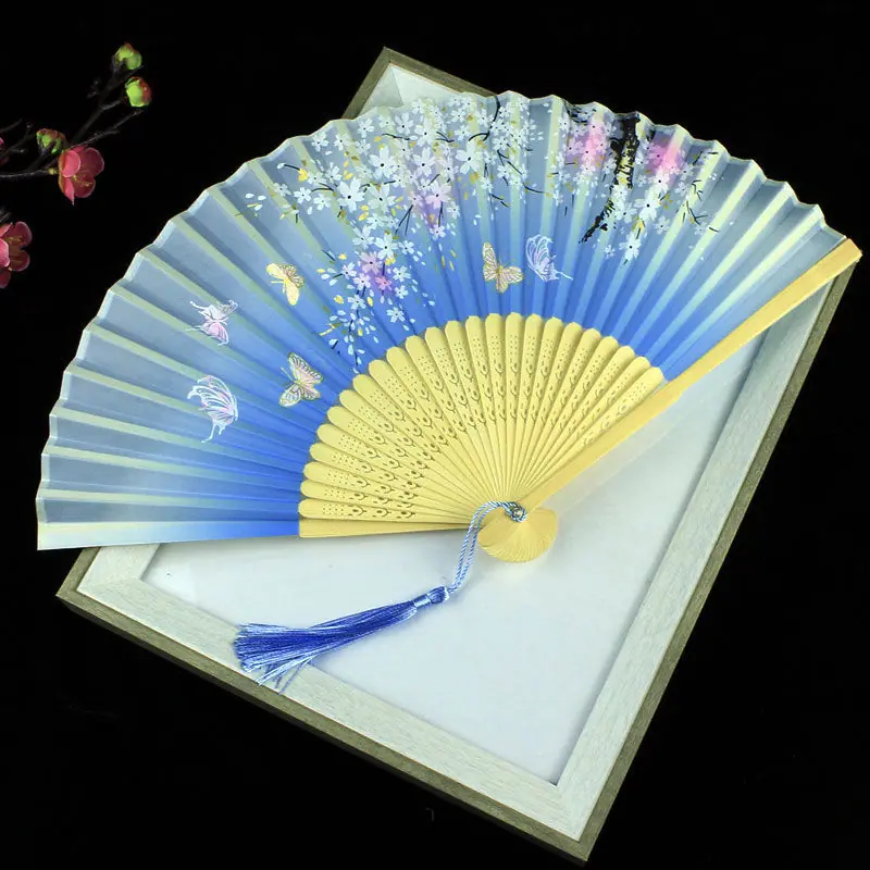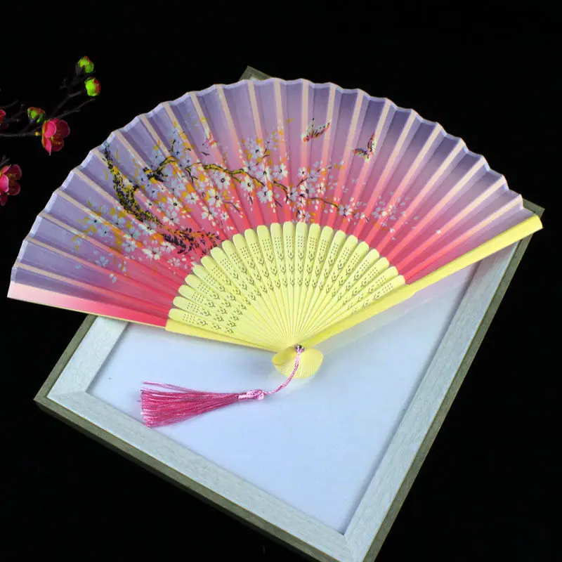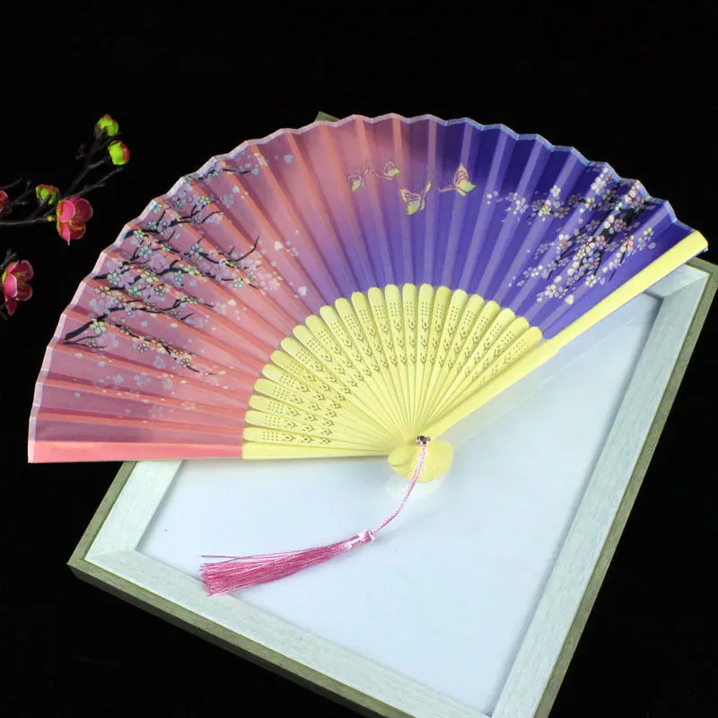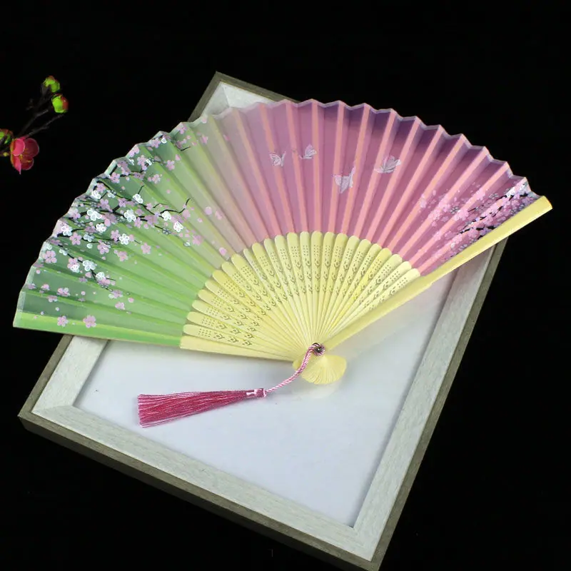 Abanico de danza Hanfu para estudiante de mujer de estilo chino, abanico plegable de verano para mujer, traje antiguo, pequeño abanico plegable retro de tela de estilo antiguo
