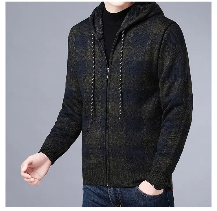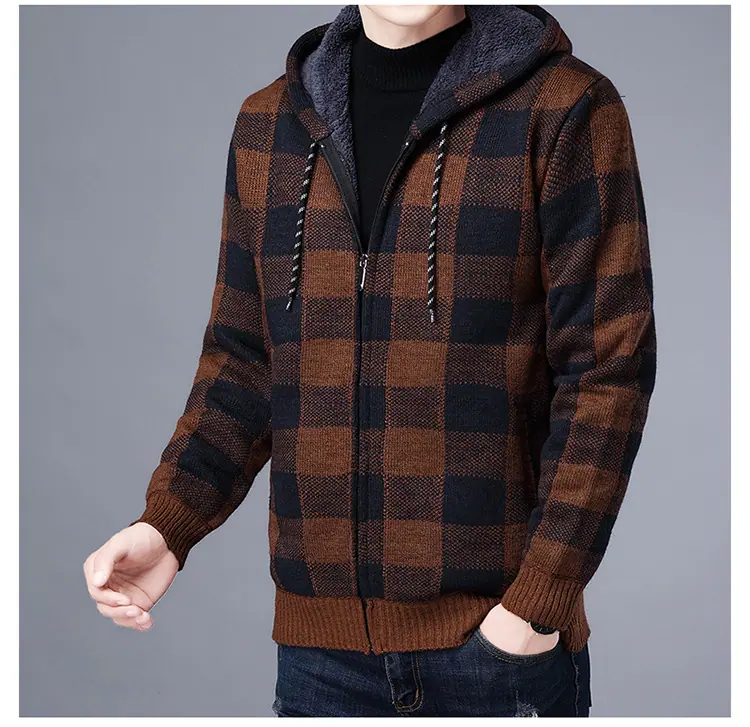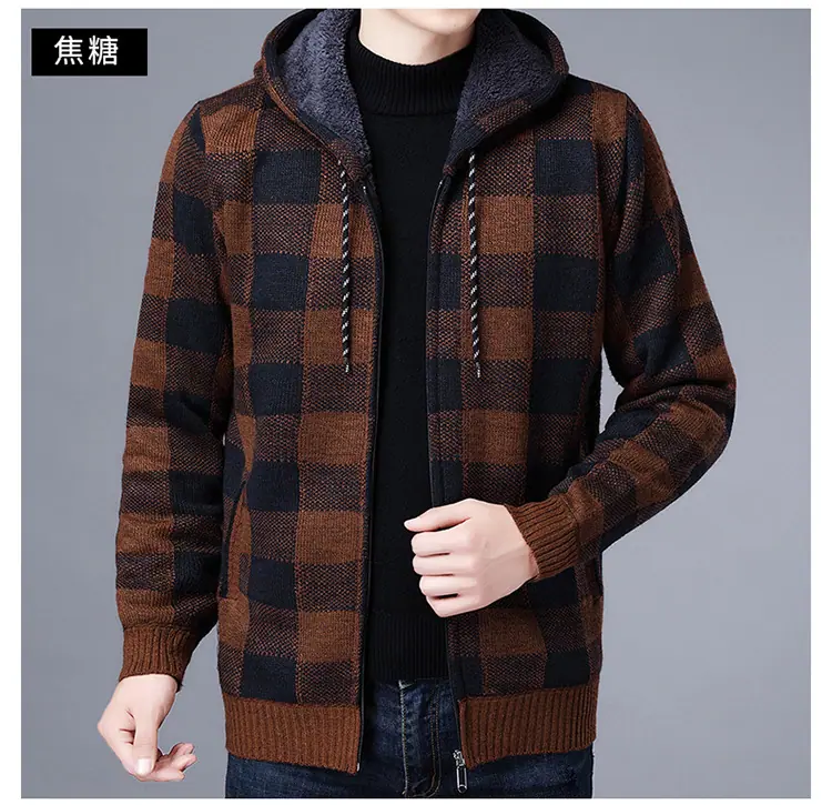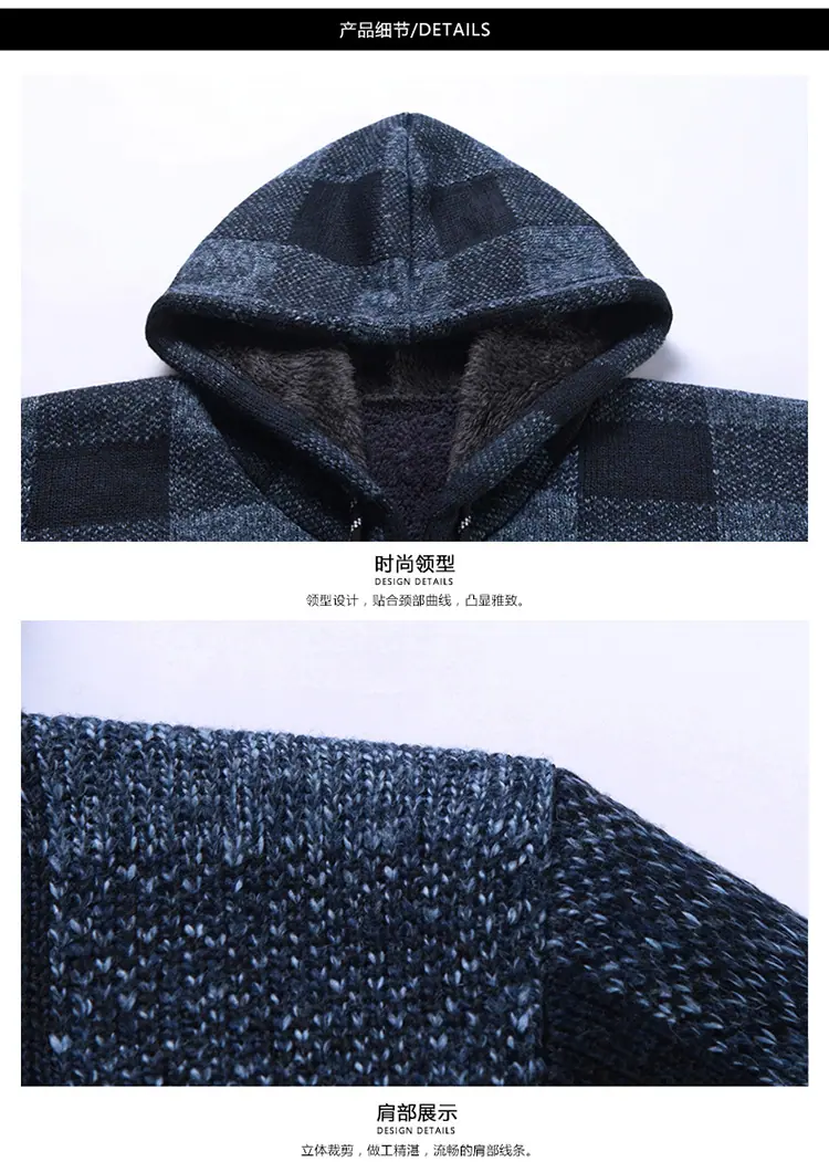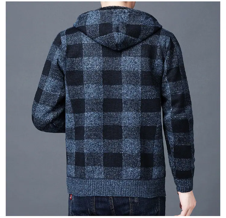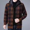 Suéter con capucha para hombre, jersey, papá, a cuadros, otoño e invierno, casual, talla grande, suéter juvenil para hombre, listo para la venta