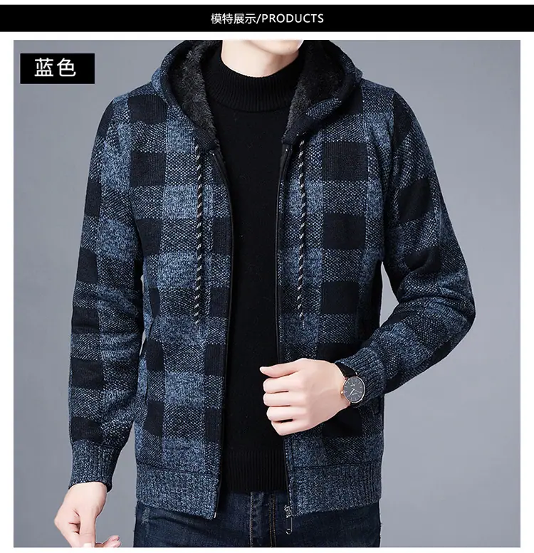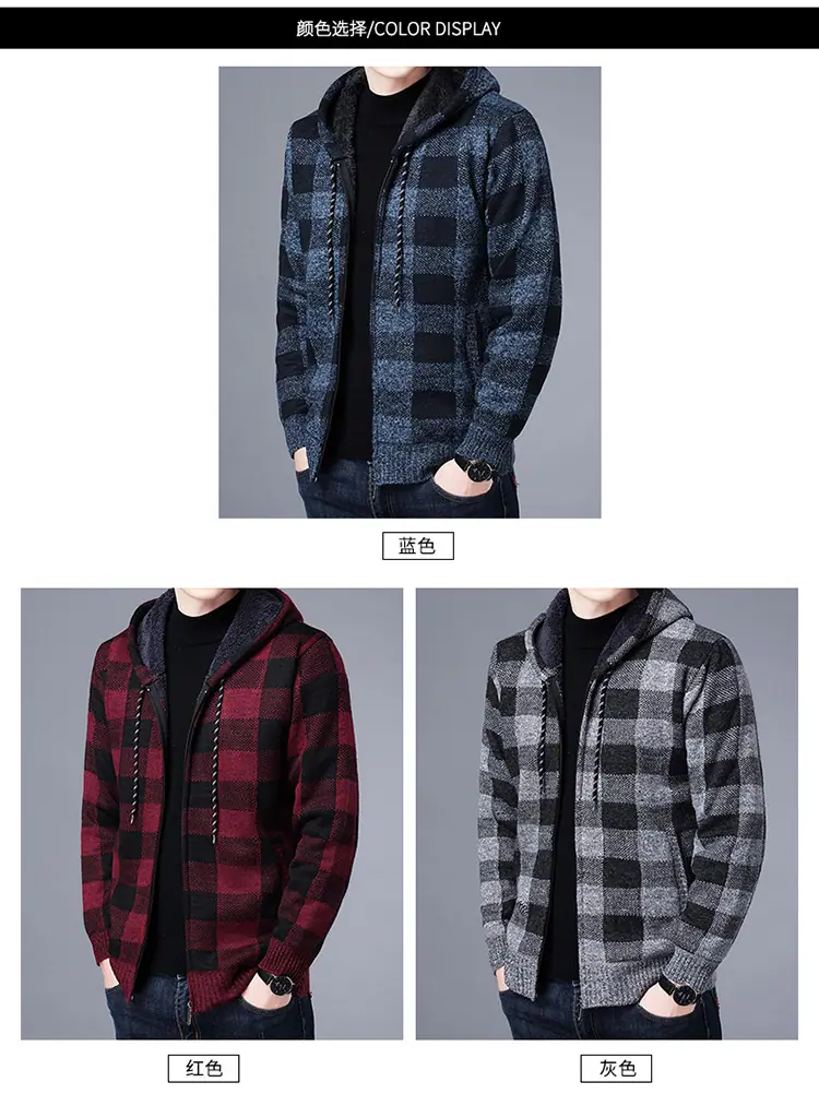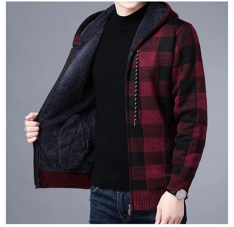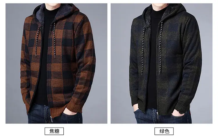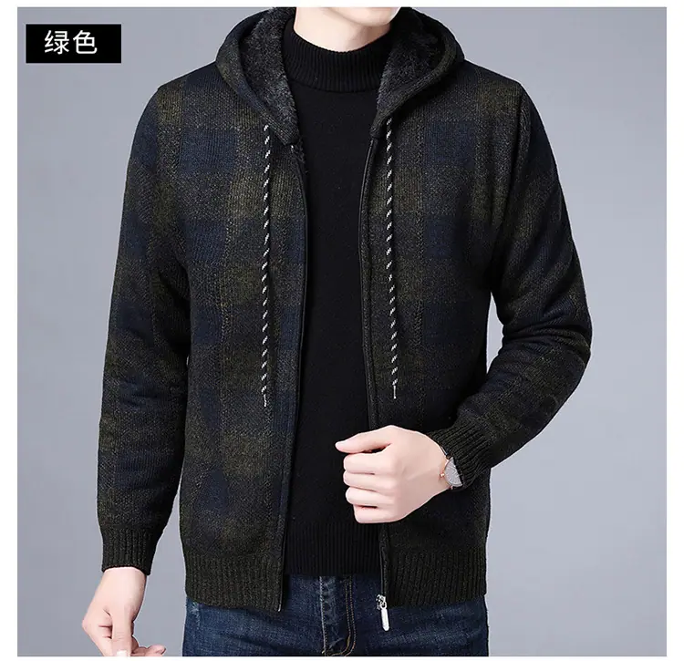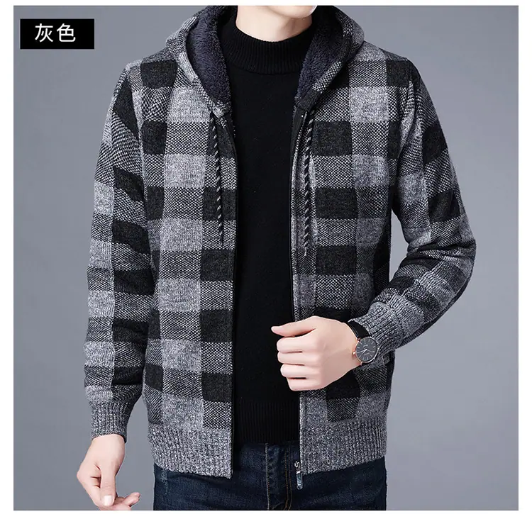 Suéter con capucha para hombre, jersey, papá, a cuadros, otoño e invierno, casual, talla grande, suéter juvenil para hombre, listo para la venta
