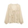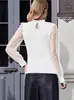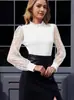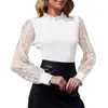Jersey informal de cuello medio alto con mangas de encaje para mujer, camisa de gasa con encaje, estilo transfronterizo europeo y americano, 2025