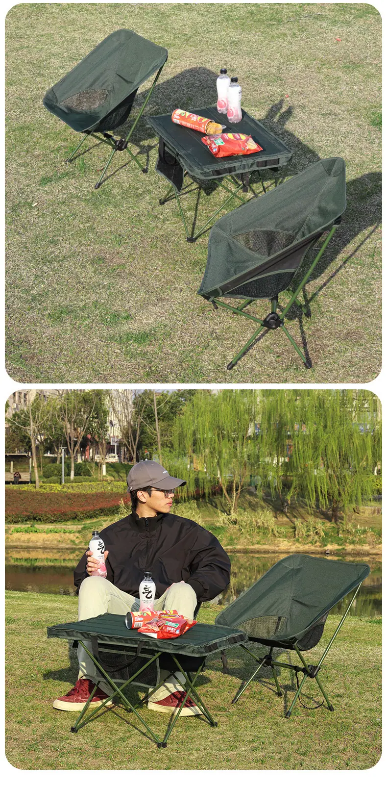 Mesa Plegable para Exterior Juego de Mesa y Sillas Portátil para Camping Ultraligera Enrollable Equipo para Picnic al Aire Libre Mesa y Sillas Pequeñas