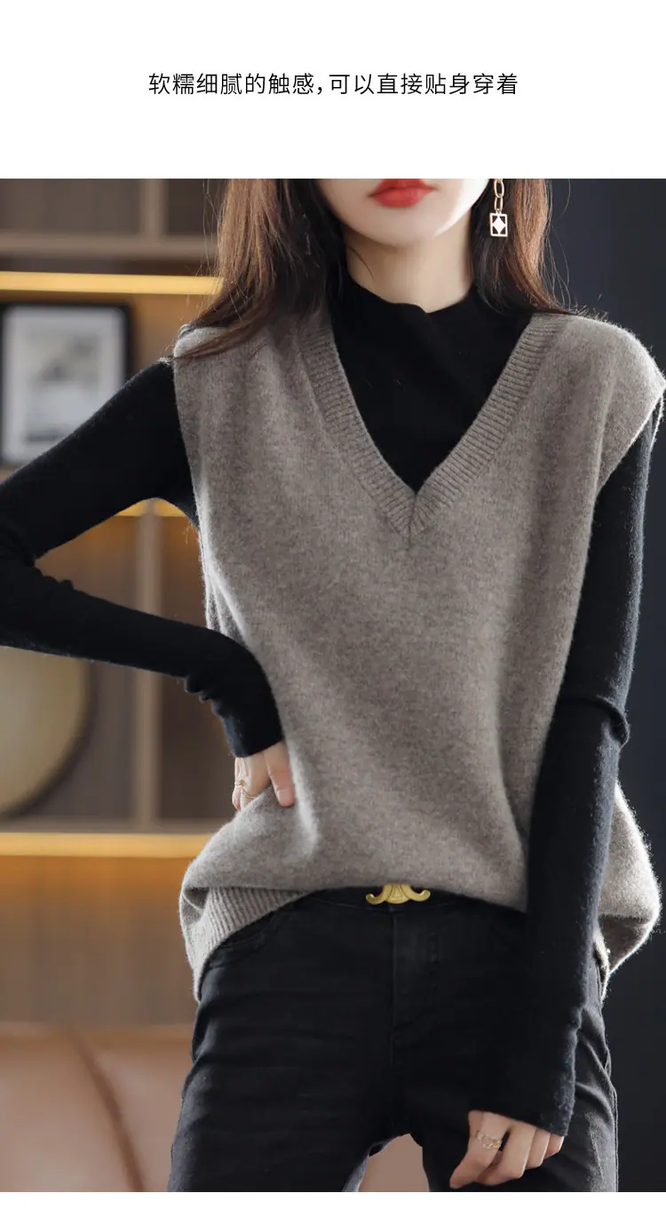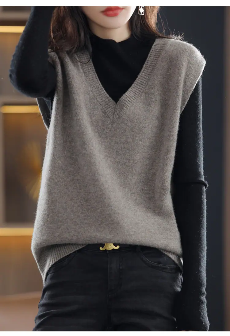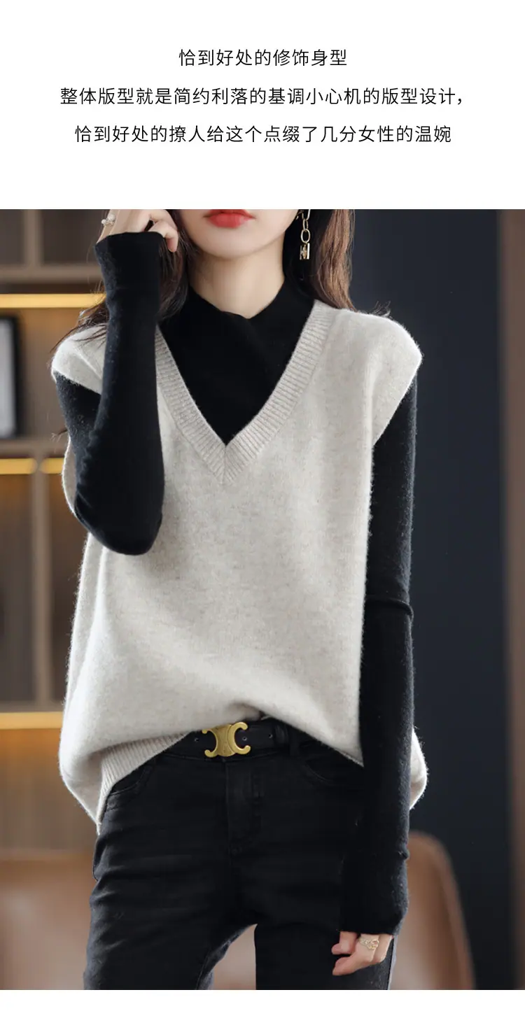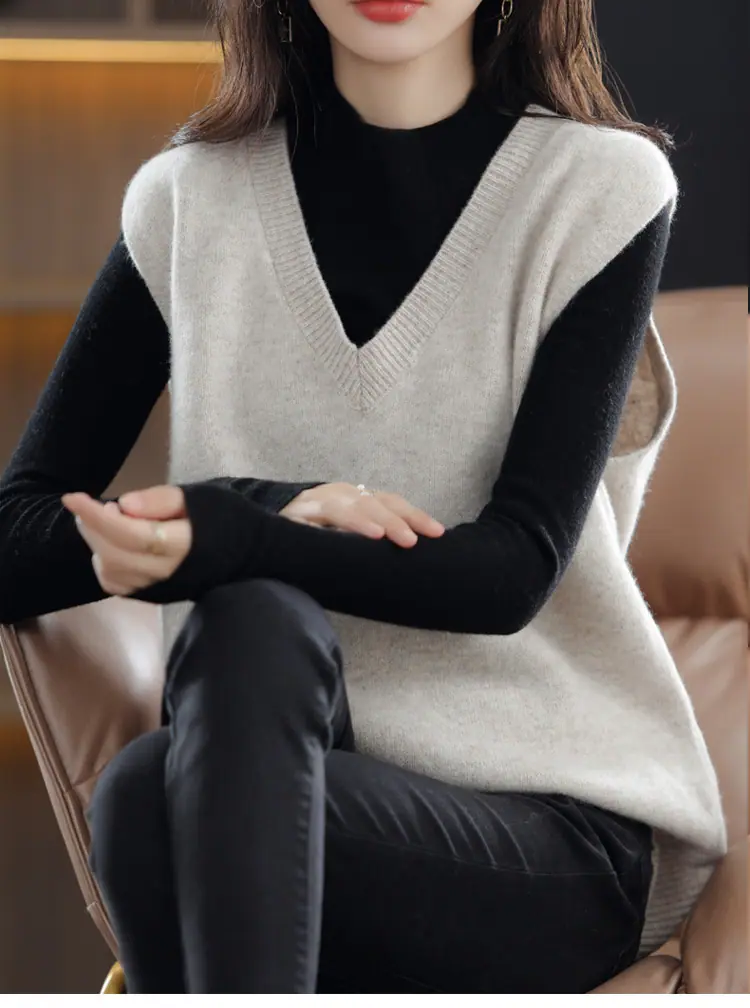 Suéter Chaleco de Mujer Primavera y Otoño 2025 Nuevo Chaleco de Otoño Ropa Exterior Cuello Chaleco Tejido Ropa Exterior Cárdigan sin Mangas