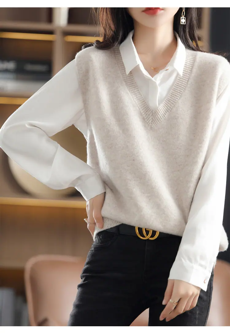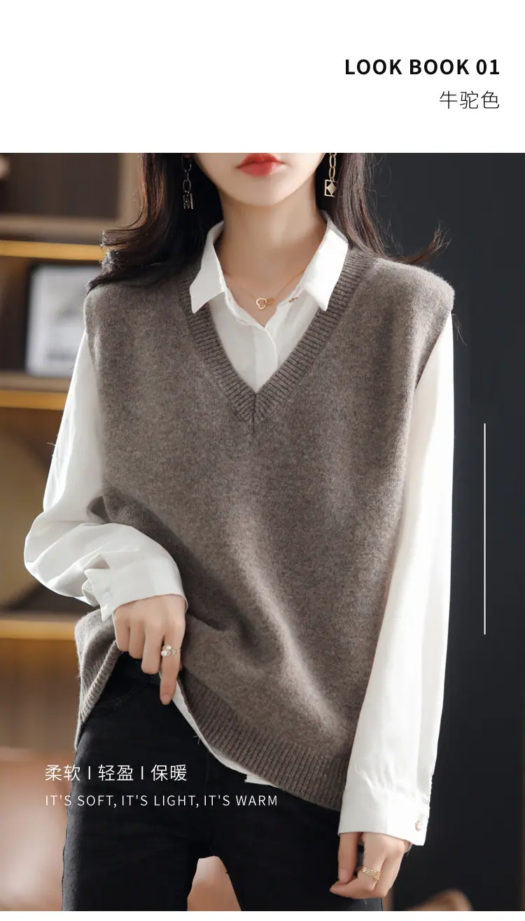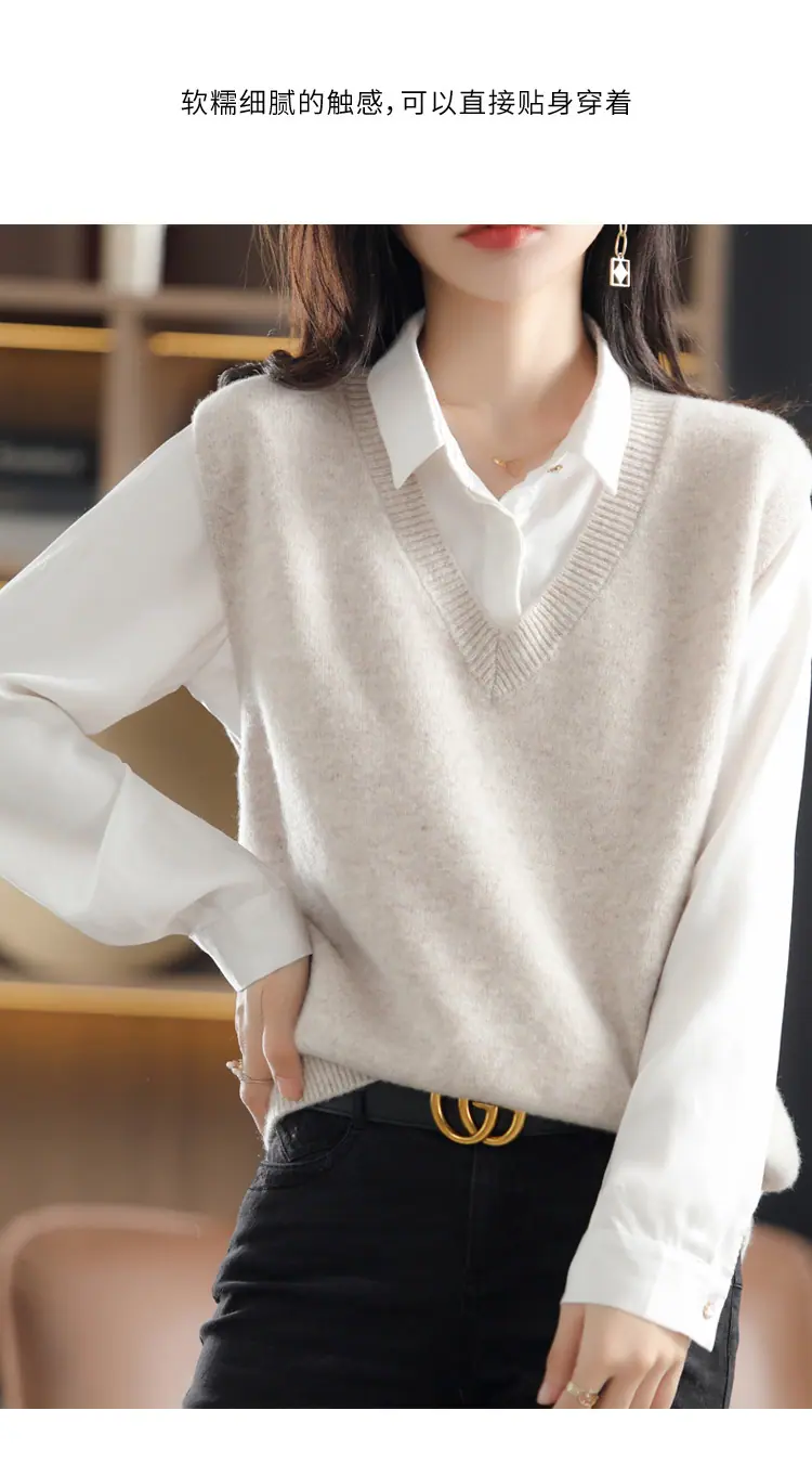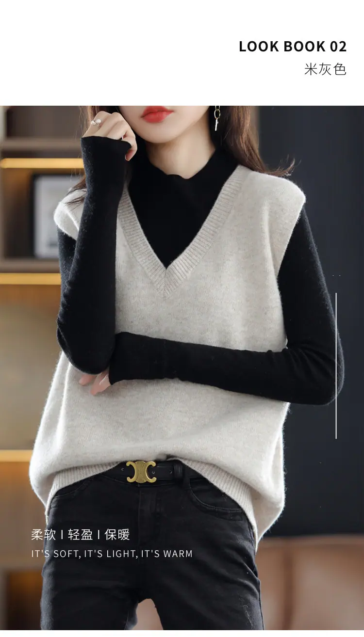 Suéter Chaleco de Mujer Primavera y Otoño 2025 Nuevo Chaleco de Otoño Ropa Exterior Cuello Chaleco Tejido Ropa Exterior Cárdigan sin Mangas