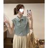 Camisa de manga corta estilo Hong Kong chaleco corto 2025 chaqueta de mezclilla mujer diseño de verano pequeño